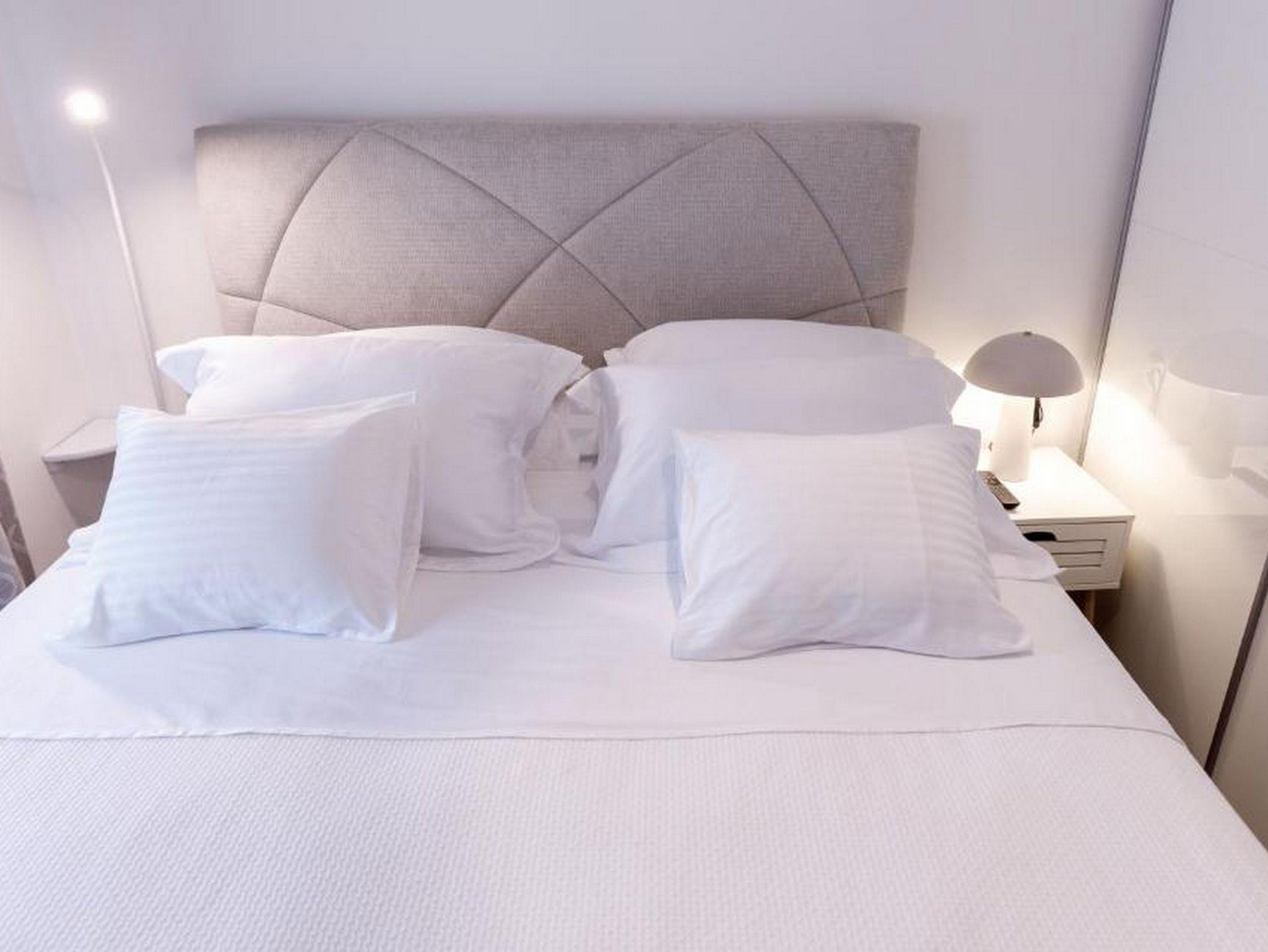 Ferienwohnung bietet Platz für 4 Gäste. Die Betten sind in Schlafzimmern, die es 2 gibt, innerhalb einer Gesamtfläche von 47m2, angeordnet. Die Gäste haben einen eigenen Balkon zur Verfügung, auf der sie in warmen Sommernächten genießen können. Das Apartment bietet Meerblick. IM PREIS INBEGRIFFEN: Kurtaxe, Endreinigung, Klimatisierung, Parkplatz, Garage, Internet, Bügeleisen, Bügelbrett, Föhn. VERBINDLICHE ZUSÄTZLICHE KOSTEN: Aufzahlung für Kurzaufenthalte (prozentualer Zuschlag pro Nächtigungsanzahl: 30% - 1, 20% - 2, 10% - 3). Die Verfügbarkeit zusätzlicher Dienstleistungen in Ihrem reservierten Termin und die Preise derselben (falls nicht aufgeführt) müssen im Voraus überprüft werden. Zusätzliche Dienstleistungen die in der Zahlungsaufforderung nicht aufgeführt sind werden direkt beim Vermieter bezahlt, angenommen der Gast nutzt auch diese.