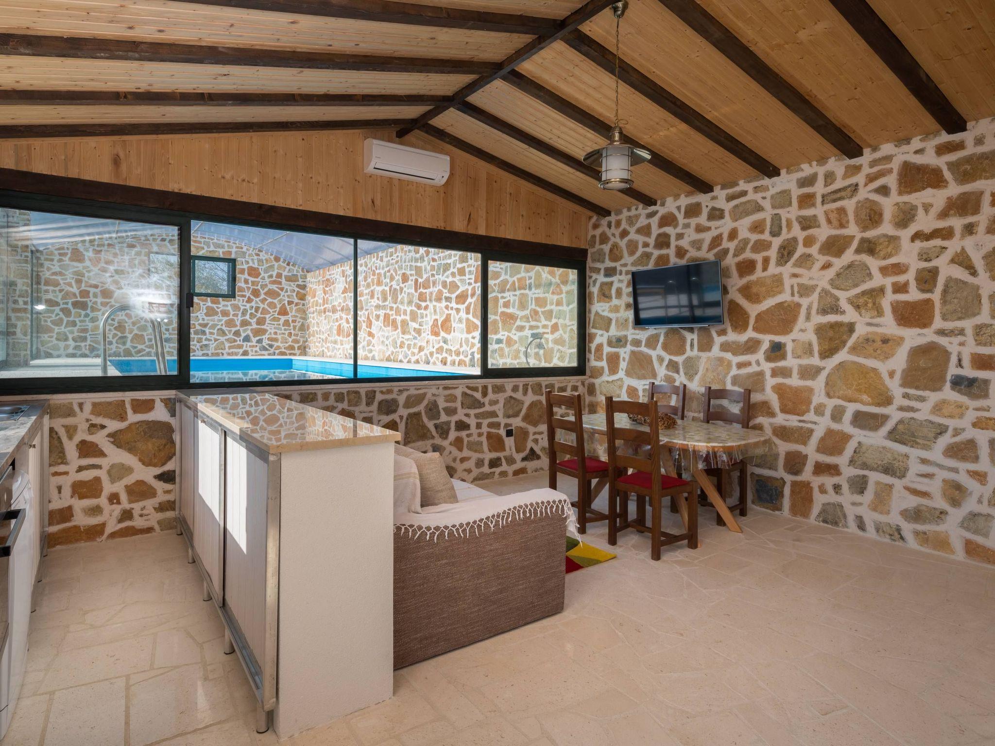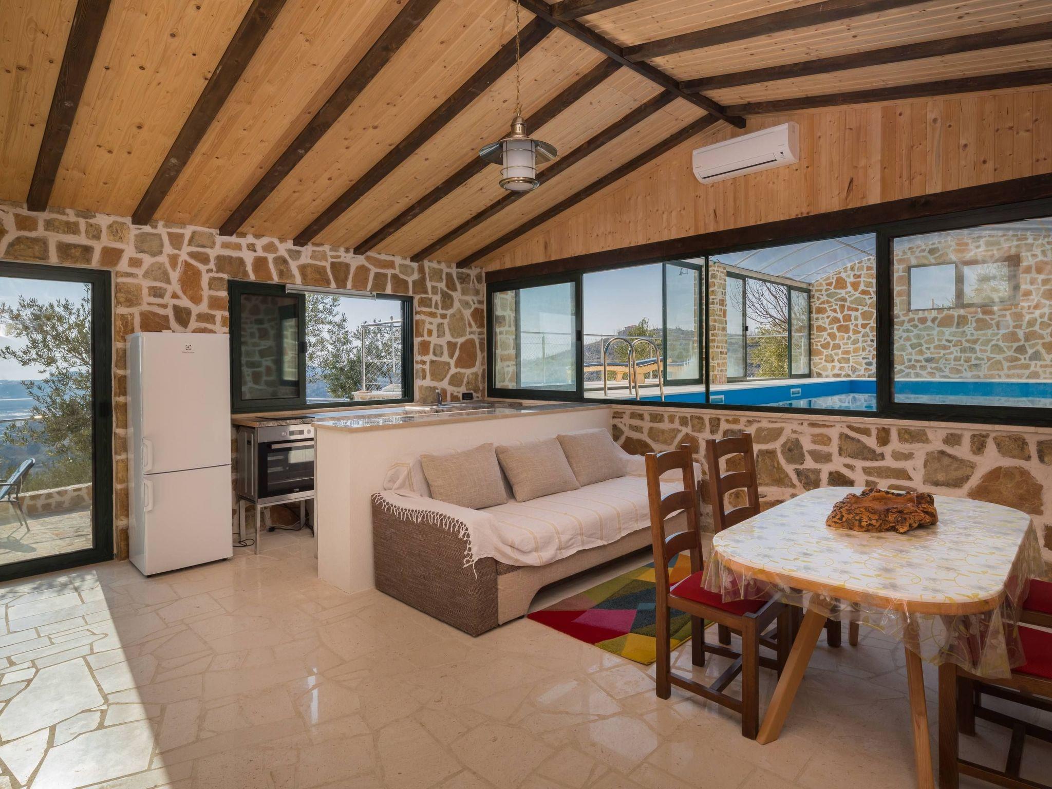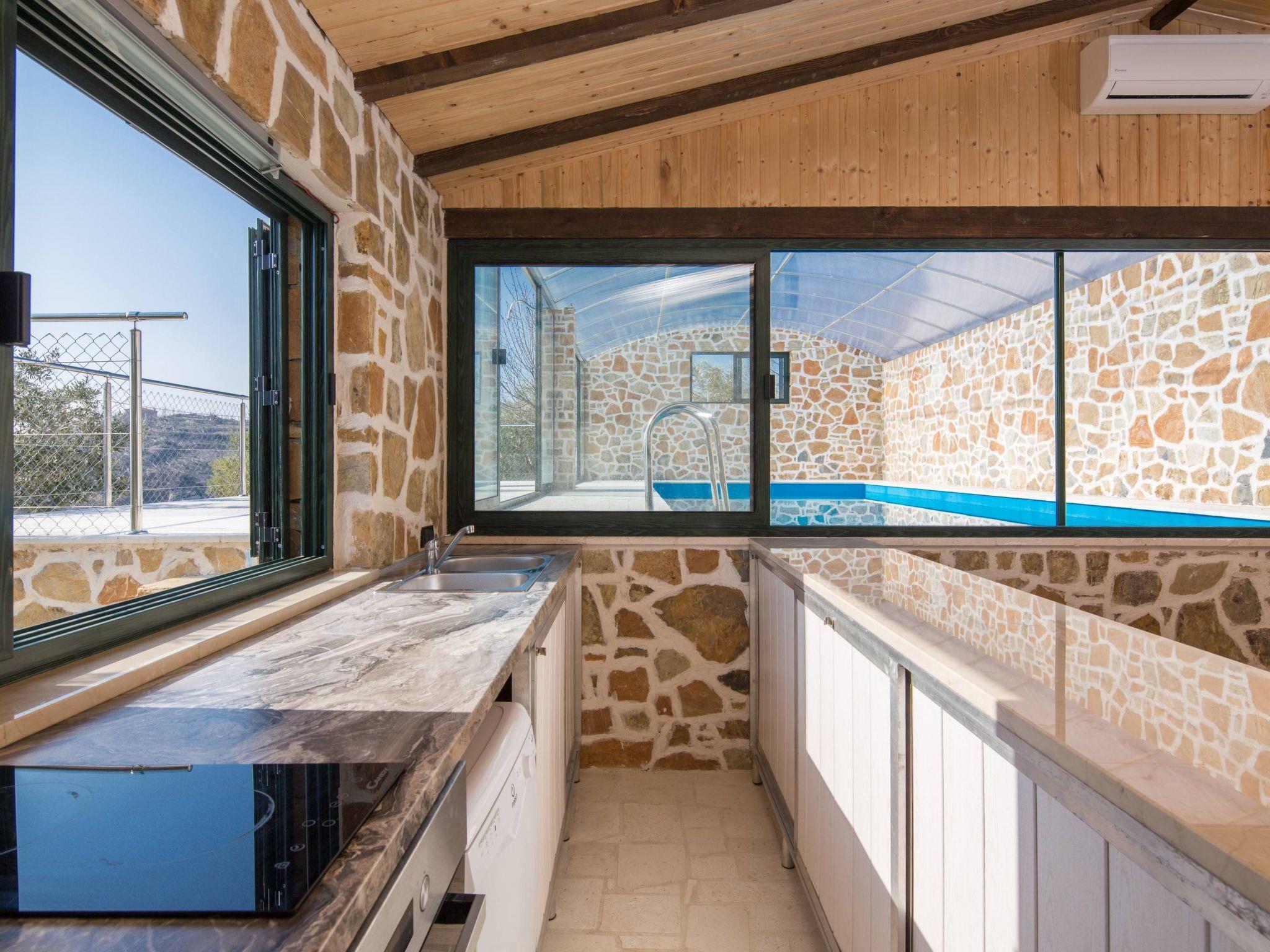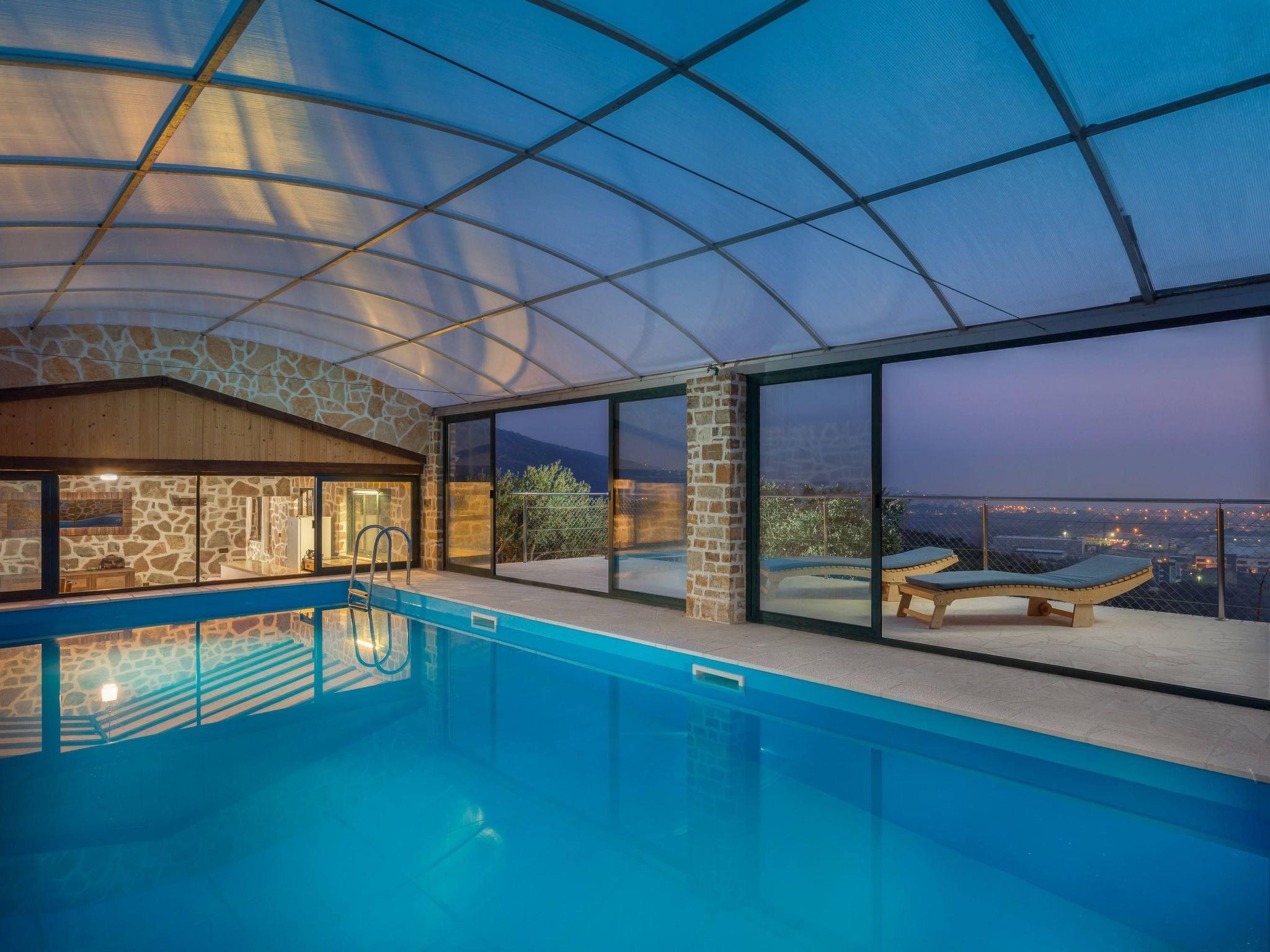 The living room provides access to your private indoor pool measuring 4 x 10 metres, with a metal ladder to facilitate entry. After a few rounds of swimming, you can relax on the sun loungers on the terrace (which is equipped with garden furniture with four chairs and a wooden table) and enjoy an extensive panoramic view over the mountainous landscape as far as the sea. If you arrive by car than you can use the secure parking spaces right in front of the house.