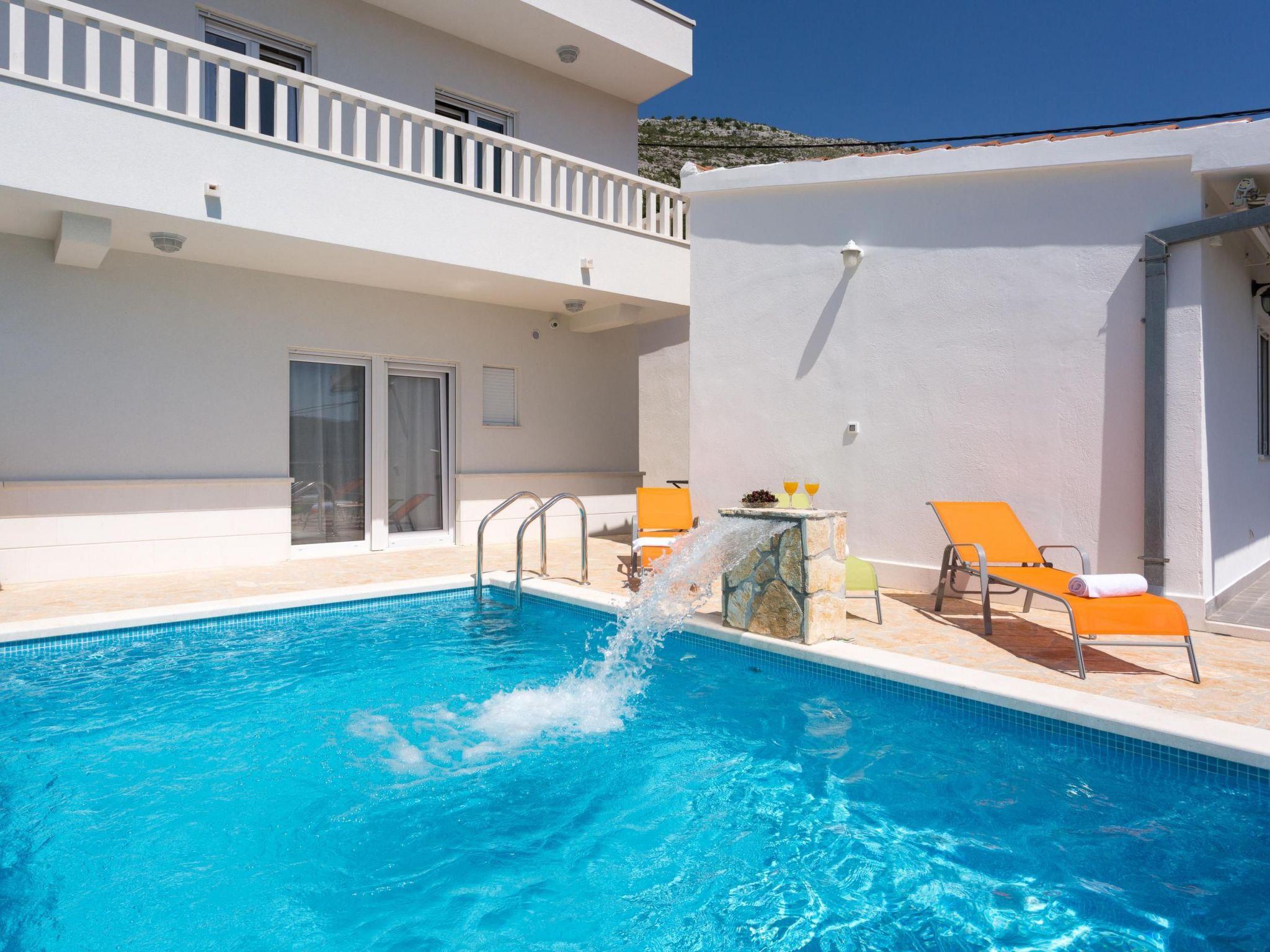 This modern and luxuriously furnished holiday villa is nestled into a green natural landscape at the foot of the mountain Mosor, just outside Srinjine along the sunny south coast of Croatia. It is an ideal place to leave hectic hustle and bustle far behind and to relax without a care in the world.