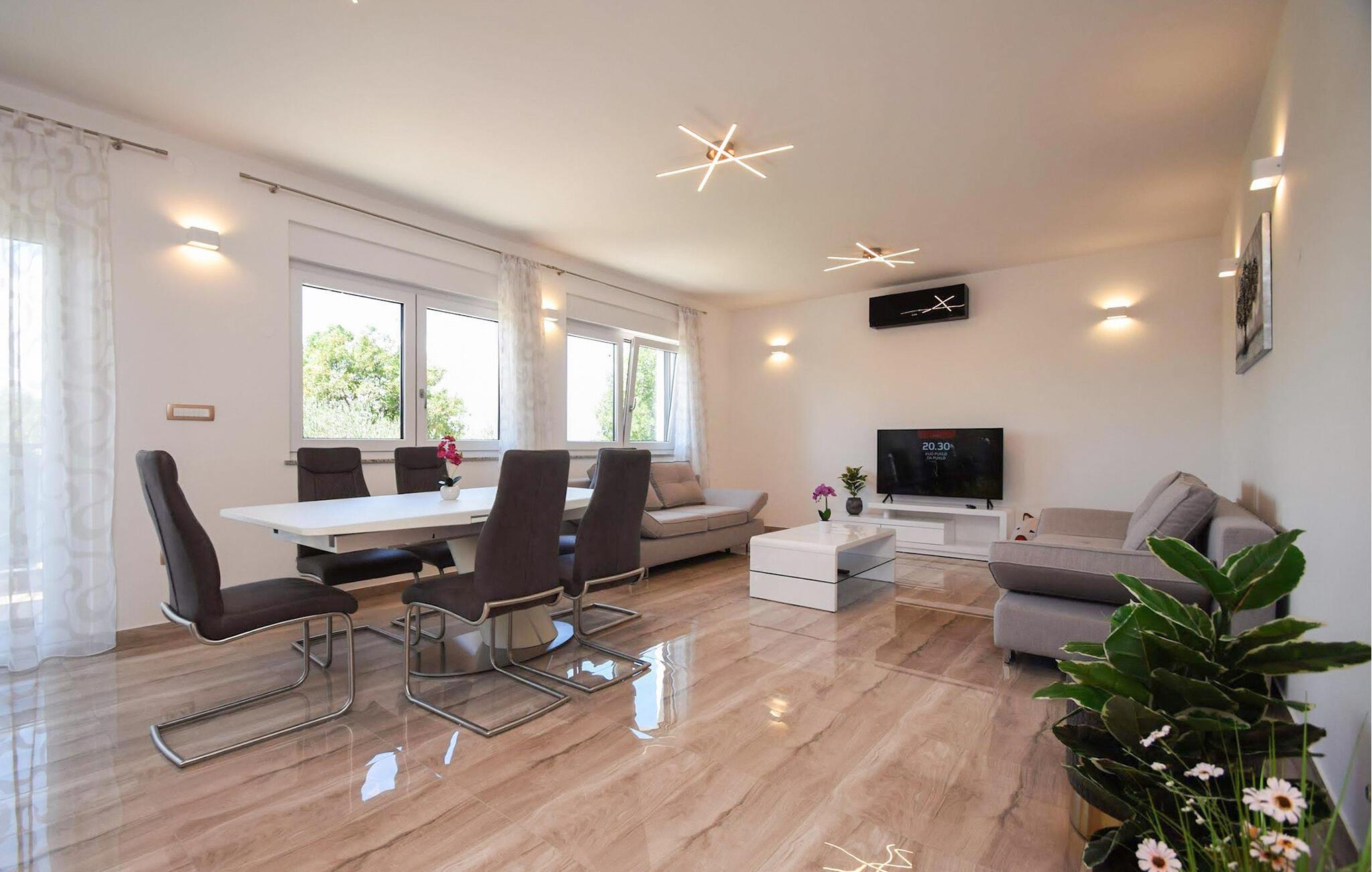 Føl jer hjemme i dette lyse og smagfulde feriehus. Glæd jer til at lave mad i det åbne køkken af ??høj kvalitet og hyggelige måltider ved det stilfulde spisebord. Find jer godt til rette i de hyggelige sofaer, stream jeres yndlingsserie eller afhold en spilleaften.