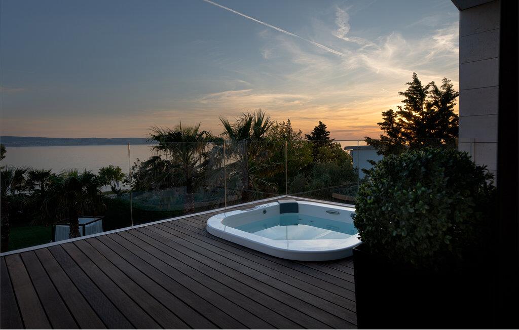 Forkæl jer selv med luksuriøs afslapning i denne moderne villa med betagende havudsigt. Kun få meter fra det glitrende hav inviterer den moderne luksus Villa Anastazia i Starigrad jer til en uforglemmelig ferieoplevelse. Nyd panoramaudsigt over Velebit-kanalen direkte fra de fritstående badekar i to af soveværelserne. Nyd det høje komfortniveau og det stilfulde design, der er kendetegnet ved vægmalerier og møbler af høj kvalitet. Det stilfuldt møblerede, fuldt udstyrede køkken og den rummelige stue med pejs, smart-tv og PlayStation skaber en hyggelig atmosfære. En smuk pool omgivet af palmer og liggestole venter jer på terrassen og i haven. Wellness-området med bio-sauna og spabad på balkonen fuldender det luksuriøse tilbud. Starigrad glæder jer med en række udendørsaktiviteter. Tag på vandreture i den nærliggende Paklenica Nationalpark eller prøv rafting på Zrmanja-floden. Klatrere og naturelskere vil også finde noget for pengene her. Fans af filmen Winnetou, en indisk helt fra det vilde vesten, kan besøge det nærliggende museum med samme navn. Kulturelskere vil sætte pris på en tur til Zadar, som ligger kun en kort køretur væk, hvor romerske fora, middelalderkirker og det berømte Havorgel venter. Fordyb jer i regionens historie og nyd den perfekte blanding af afslapning, eventyr og kultur. Bemærk venligst: Ejendommen accepterer ikke ungdomsgrupper under 30 år eller polterabender. Bookinger fra sådanne grupper vil blive afvist, selv ved ankomst eller under opholdet, uden refusion.