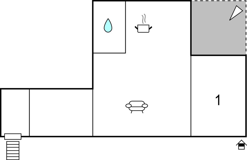 Opholdsstue/køkken 13m2 - 1 Soveplads. (Sofa, madras eller lignende).