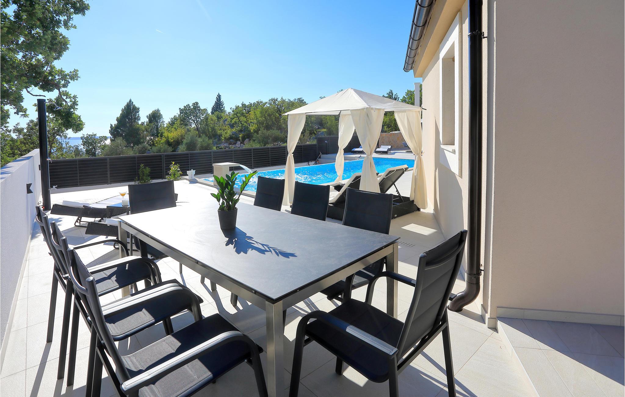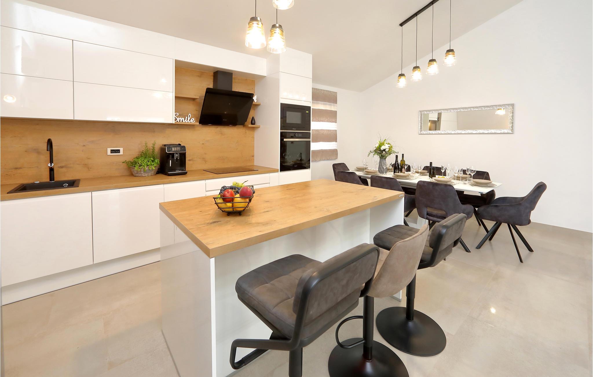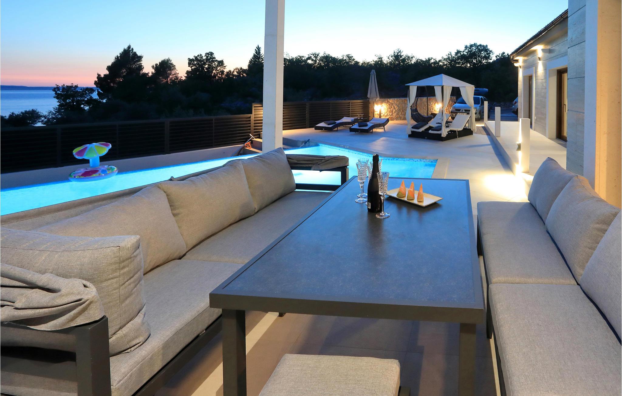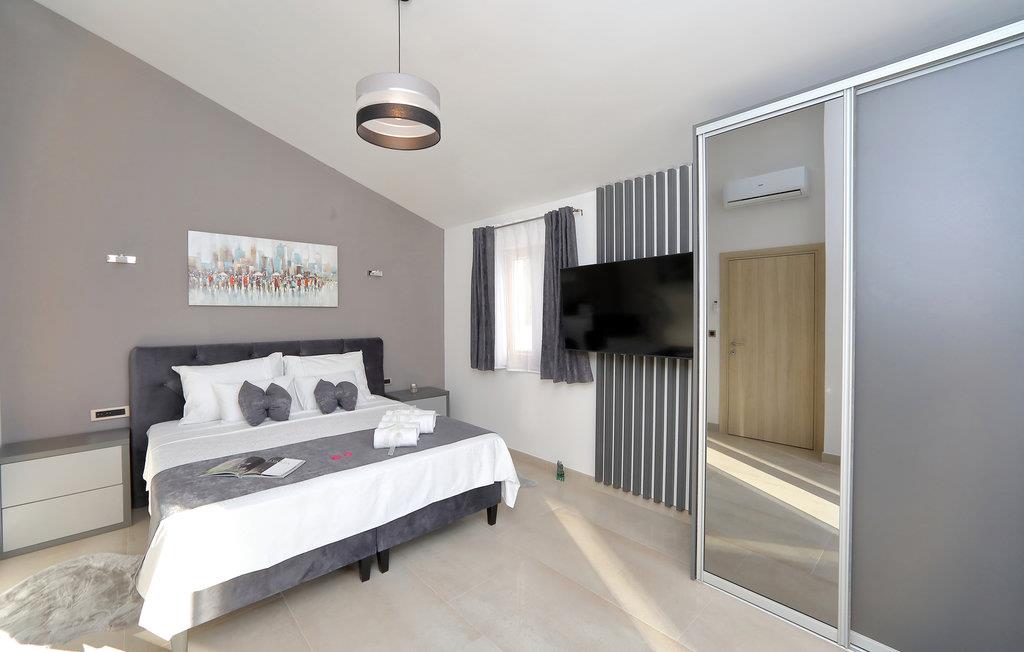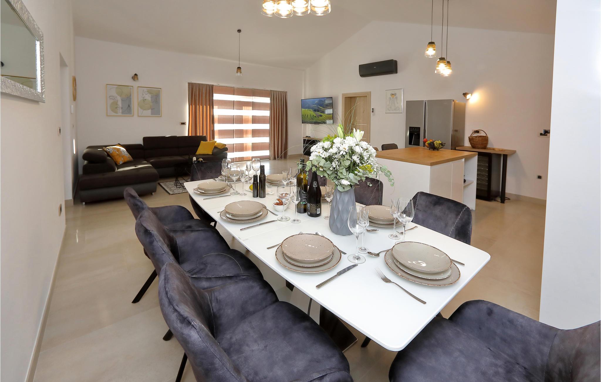 I nærheden af ??Starigrad Paklenica ligger dette skønne feriehus, som har en dejligt ugenert beliggenhed. Feriehuset er en velegnet base til en stor familie, der drømmer om en skøn pause fra hverdagen. Husets indretning er moderne, og der mangler ikke noget. Næsten alle soveværelser har eget badeværelse, så det er nemt at få privatliv og ro. Man kan også nemt kaste sig over det, man lige har lyst til. Mens nogle slapper af i stuen, kan andre træne i fitnesslokalet, og der er sjove spil og meget mere i aktivitetsrummet.