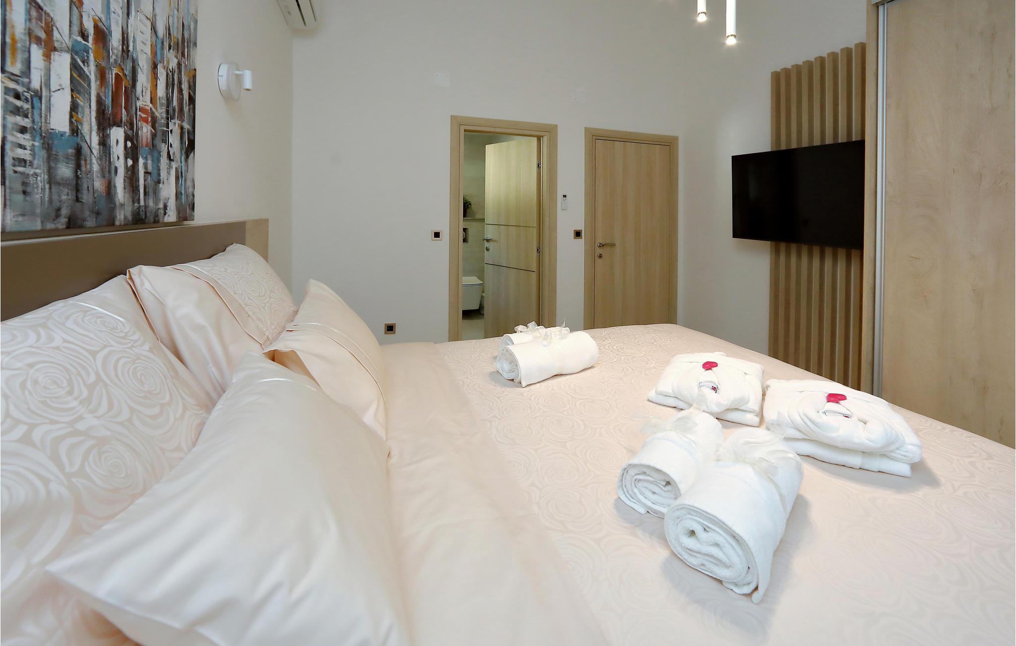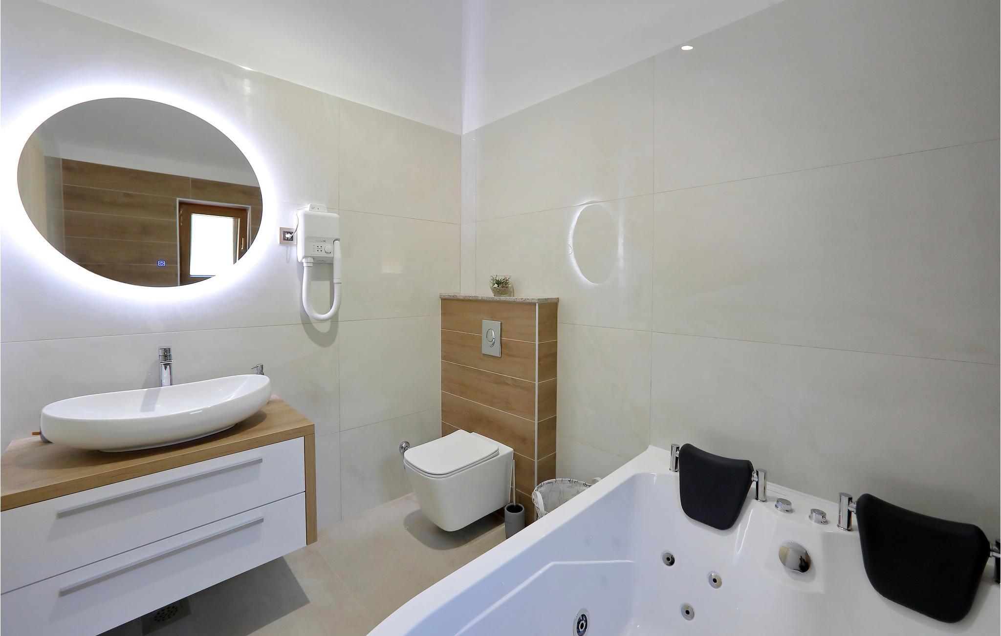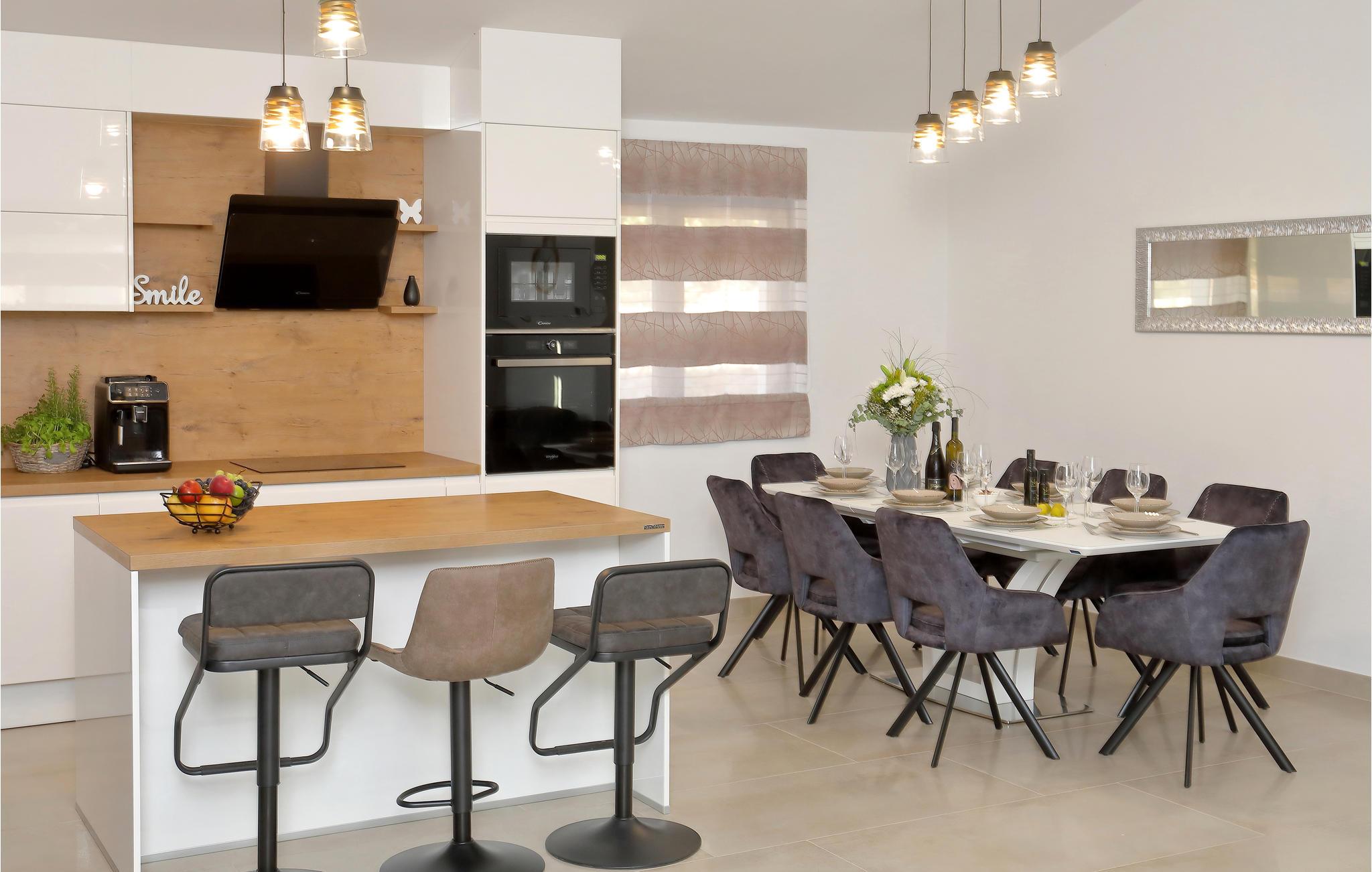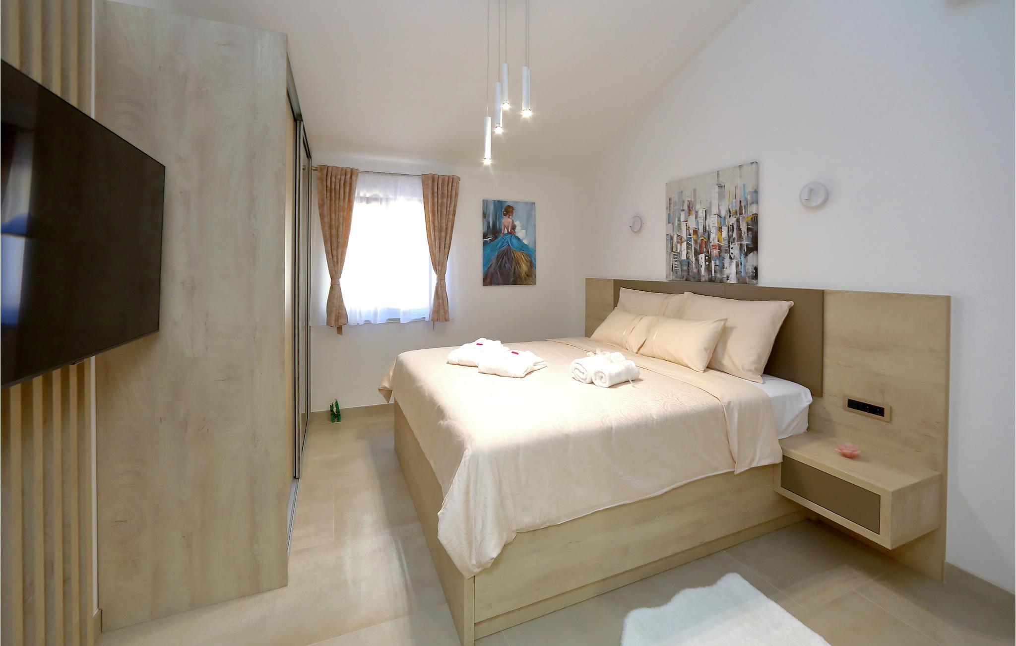 I nærheden af ??Starigrad Paklenica ligger dette skønne feriehus, som har en dejligt ugenert beliggenhed. Feriehuset er en velegnet base til en stor familie, der drømmer om en skøn pause fra hverdagen. Husets indretning er moderne, og der mangler ikke noget. Næsten alle soveværelser har eget badeværelse, så det er nemt at få privatliv og ro. Man kan også nemt kaste sig over det, man lige har lyst til. Mens nogle slapper af i stuen, kan andre træne i fitnesslokalet, og der er sjove spil og meget mere i aktivitetsrummet.