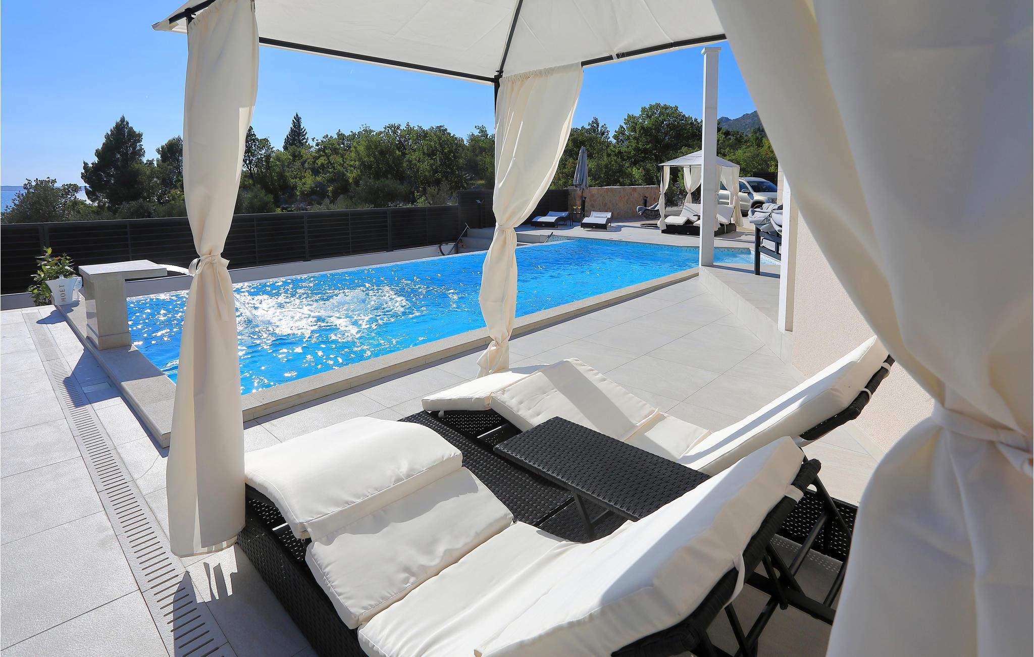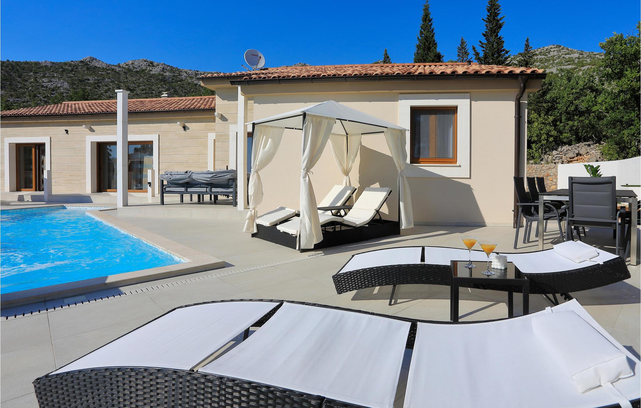 Tilbring en afslappende ferie i dette moderne hus i traditionel dalmatisk stil med pool og havudsigt.