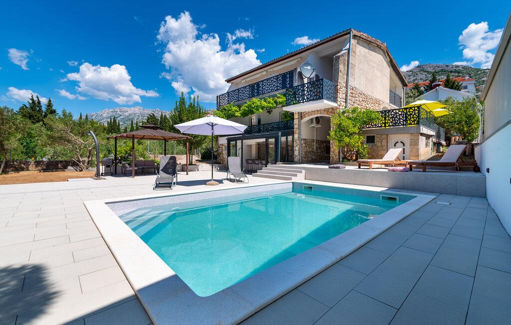 Velkommen til dette skønne feriehus, der lover jer og familien en skøn ferie. Det moderne og komfortable hus er perfekt til at slappe af fra jeres travle familieliv og nyde stemningen og atmosfæren. Glæd jer til luksusmøbler af høj kvalitet og nyd at lave mad sammen i køkkenet, som kan åbnes ud til terrassen. Om aftenen kan I grille udenfor og slappe af i godt selskab på en af ??terrasserne. I kan tilbringe solskinstimerne i og omkring poolen og nyde badesjov med jeres børn.
