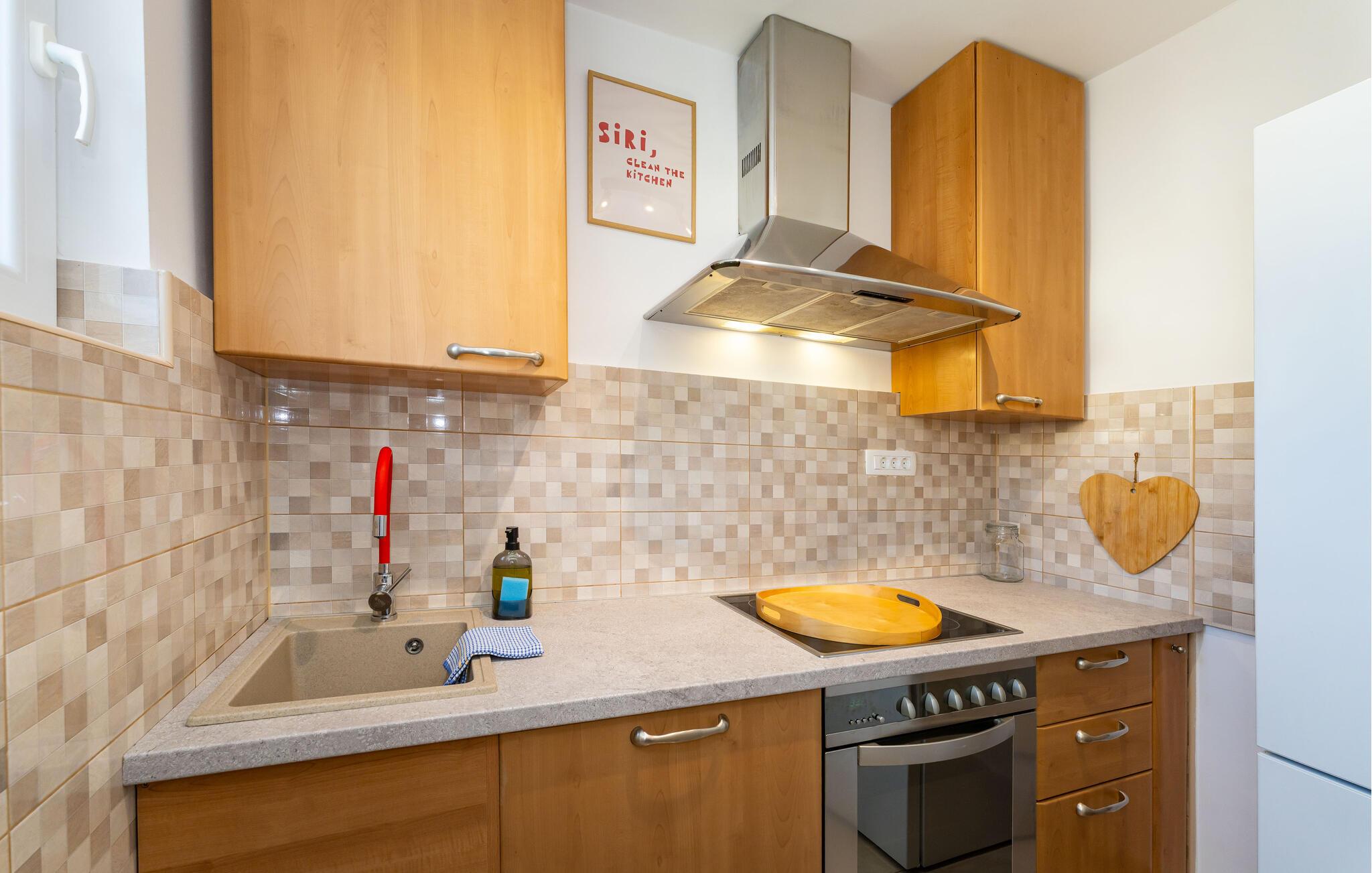 I Starigrad Paklenica, en malerisk by ved foden af Velebit-bjergene, tilbyder jeres feriehus en hyggelig stue, der er udstyret med moderne bekvemmeligheder. Tag dagen roligt efter en fælles familie morgenmad og slap af på den komfortable sofa. Her kan I drøfte dagens planer, se en film eller blot lade sjælen finde ro.