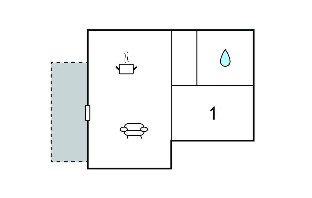 Komb. spisestue/køkken 25m2 - 1 Soveplads. (Sofa, madras eller lignende).