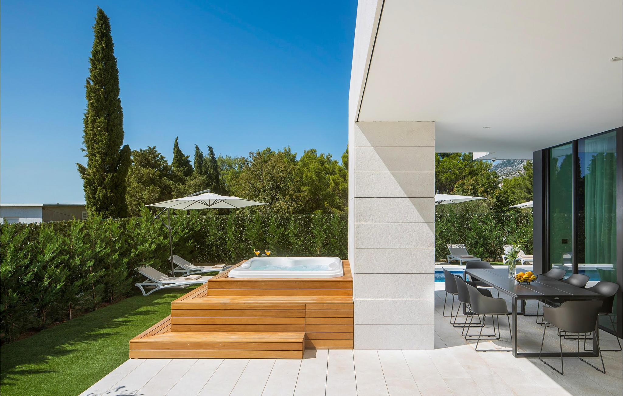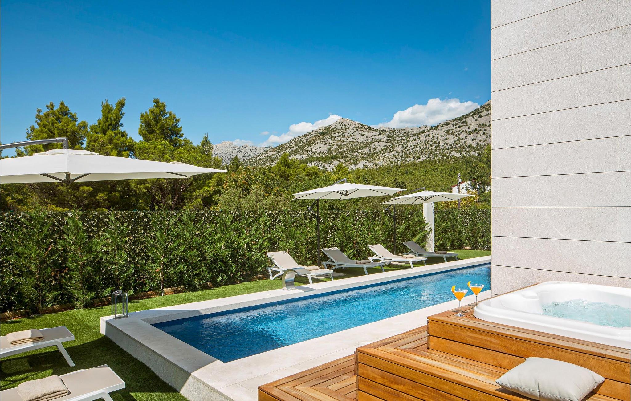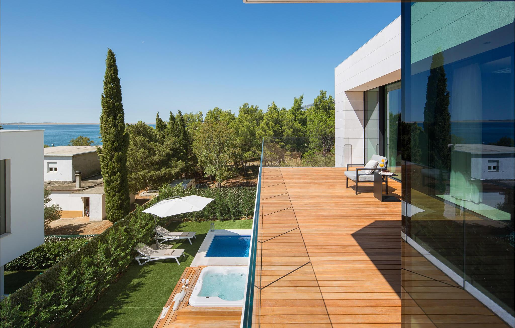 I landsbyen Starigrad Paklenica, med bjergene bag jer og Velebitsundet foran jer, ligger dette moderne feriehus. Det skønne hus med stilrent design, overdådige detaljer, gulv til loft-vinduer, masser af plads og højeste komfort giver jer en unik boligoplevelse og er som taget ud af et boligmagasin. Skønne soveværelser med udsigt, adgang til terrasse og en suite badeværelser, lyder det ikke herligt? Her kan I drage fordel af de mange topmoderne faciliteter, som vil gøre jeres ophold lettere. I det smukke opholdsrum, der kombinerer madlavning, spisning og afslapning, kan I rigtig hygge jer. Fra den øverste terrasse kan I se ud over havet og betragte smukke solnedgange, mens I nipper til vin om aftenen. I haven og på terrassen kan I enten slappe af i boblebadet eller tage en dukkert med jeres børn i den opvarmede pool. Indtag måltiderne sammen på terrassen og snak om dagens eventyr.