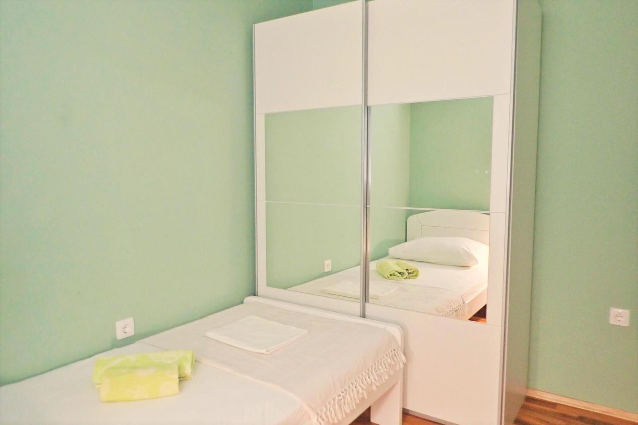Denne moderne ferielejlighed med balkon og havudsigt ligger kun 400 meter fra de romantiske bugter i den maleriske landsby Paklenica. Den rummelige lejlighed kan rumme op til 4 voksne og 2 børn. Aircondition, WiFi og en vaskemaskine er blandt de tilgængelige faciliteter her. Starigrad-Paklenica Riviera ligger i den nordvestlige del af Dalmatien og hører til Zadar-regionen. Paklenica National Park strækker sig fra Velebit-massivets stejle, forrevne karstklipper til det krystalblå vand. Som hovedby ligger Starigrad lige på grænsen til dette unikke landskab og bærer derfor navnet "stedet, hvor bjerget møder havet". Klippekysten med sine romantiske bugter forvandler sig til en smuk stenstrand få meter væk. I de små butikker og supermarkeder i Starigrad og i Seline kan du købe alle dine daglige fornødenheder, store indkøbscentre kan findes i metropolen Zadar. Flere restauranter og værtshuse sikrer det fysiske velvære og andre værtshuse og cafeer findes i nabobyen Seline. Detaljer: Forbrugsbaserede energiomkostninger, sengelinned, håndklæder, slutrengøring, WiFi registreringsgebyr Turistskat Aktiviteter i nærheden: De, der søger afslapning, sportsentusiaster og naturelskere vil finde et varieret ferieparadis mellem kystbjergene og havet. Klipperne i Velebit op til 1.700 meter er ideelle terræn til vandreture og mountainbike. Samtidig er de også blandt de smukkeste klatreområder i Europa. Brunbjørne, ulve, los, ørne og gribbe lever også her i naturen. På Kuterevo Bear Sanctuary passes unge bjørneforældreløse børn, indtil de slippes ud i naturen. Den populære destination er åben for besøgende hele året rundt. Byen Zadar og den historiske ø Nin er ideelle til kulturelle udflugter Mobilitet: Ni