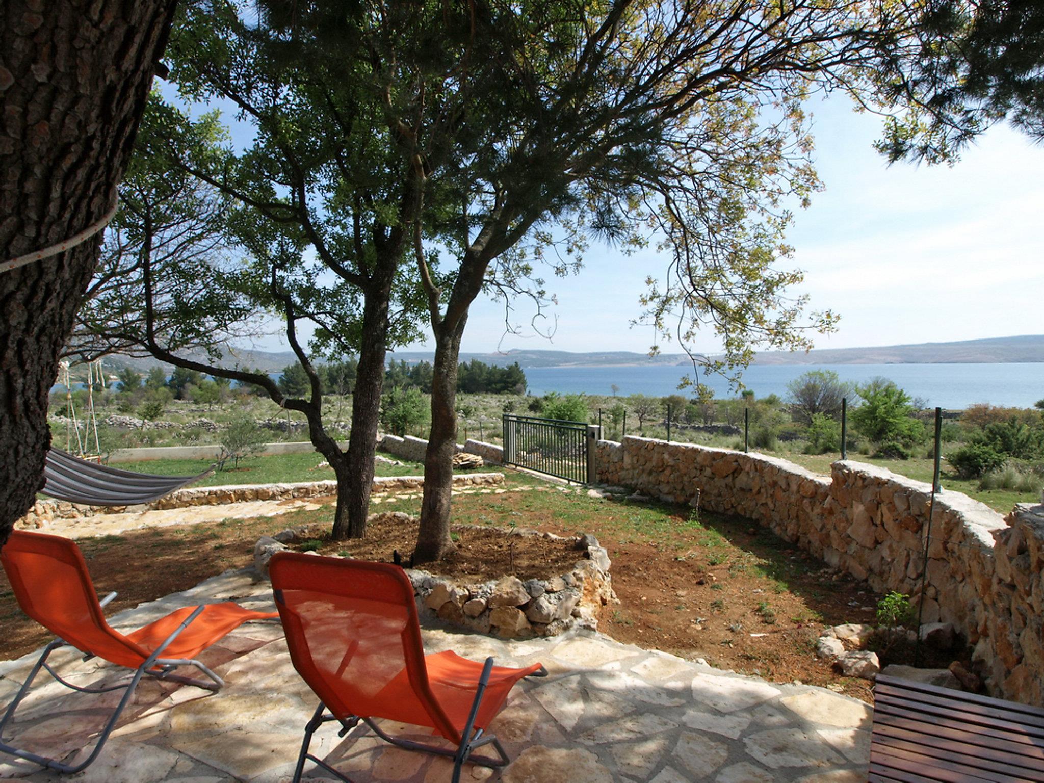 Seline 3 km from Starigrad-Paklenica: Single-family house "Mare", surrounded by trees. 1 km from the centre of Seline, in a secluded, quiet position, 150 m from the sea, 150 m from the beach. Private: property 1'000 m2 (fenced), garden with lawn and trees. Outdoor shower, garden furniture (swing). In the house: internet access. Parking at the house on the premises. Shop 1 km, restaurant 1 km, bus stop 3.6 km, pebble beach, shingle beach 150 m.