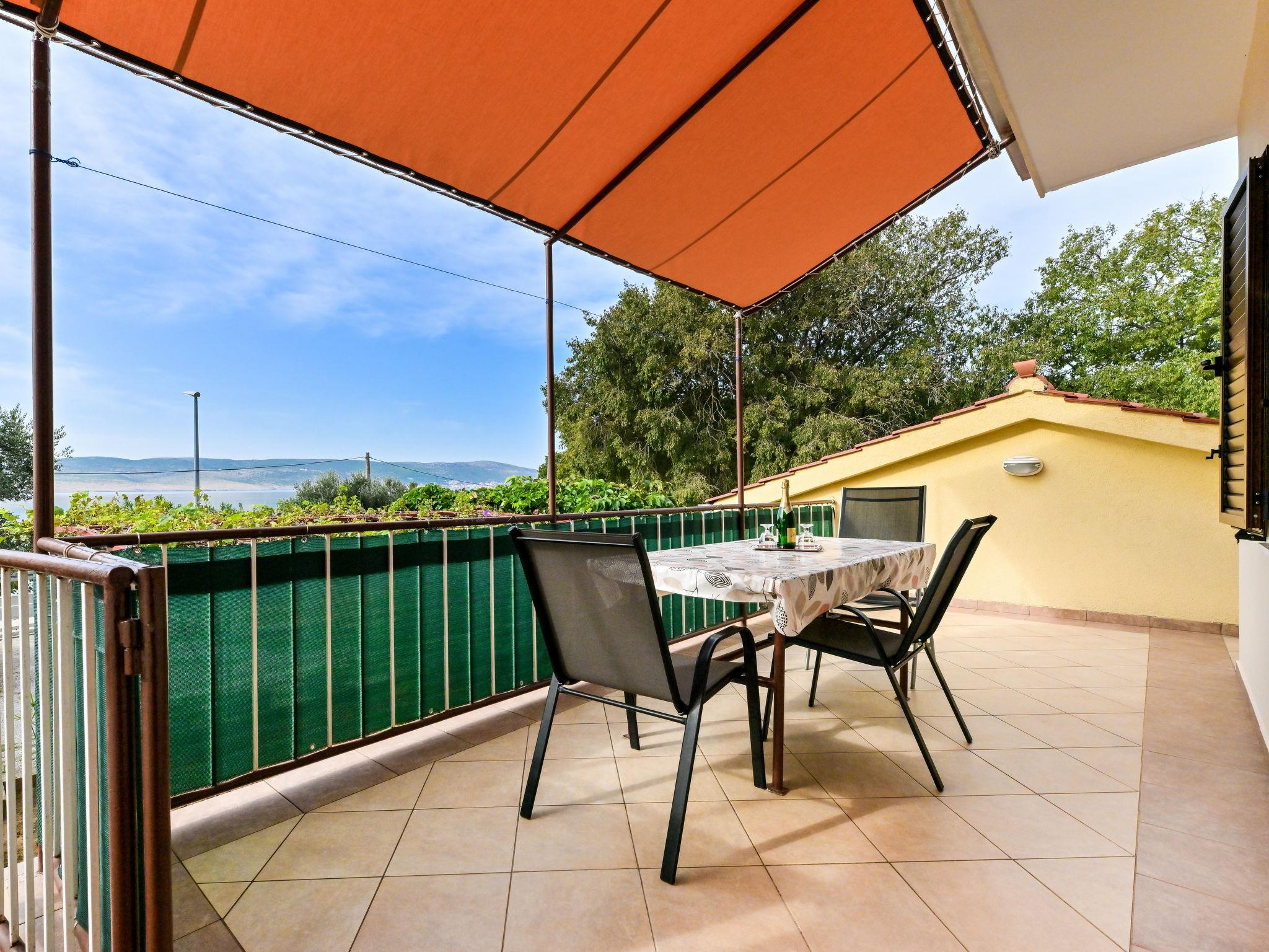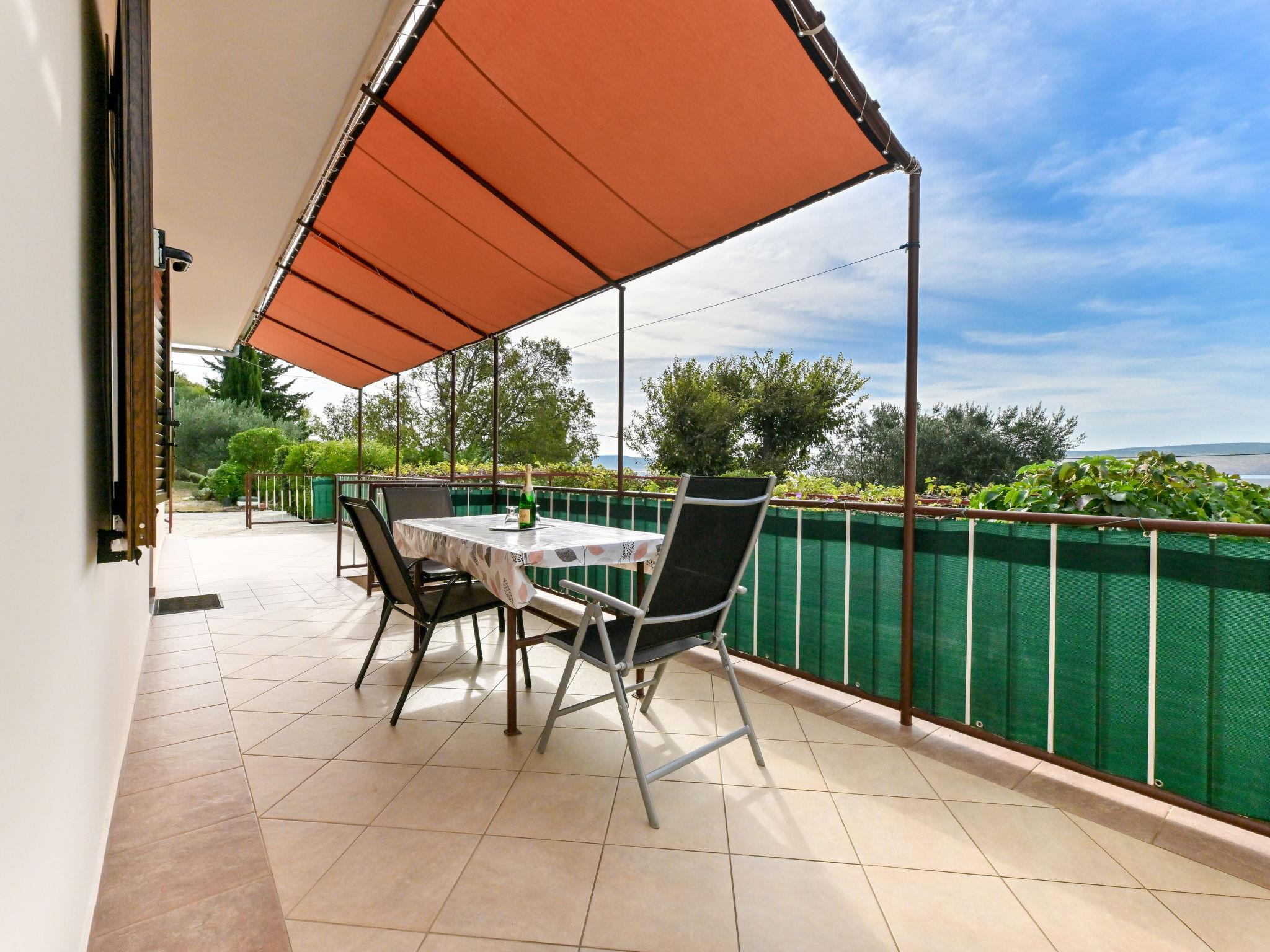 2-room apartment 54 m2, on the upper ground floor. 1 room with 1 bed (90 cm, length 200 cm), 1 double bed (2 x 90 cm, length 200 cm). 1 room with 1 bed (90 cm, length 200 cm), 1 french bed (180 cm, length 200 cm), air conditioning. Kitchen (1 hot plate, oven, 3 gas rings, toaster, kettle, freezer, electric coffee machine) with dining table, satellite TV (flat screen). Shower/WC. Air-conditioning (extra). No heating option. Terrace 20 m2 partly. Terrace furniture, barbecue (portable). View of the sea. Facilities: washing machine, hair dryer. Internet (WiFi, free). Please note: non-smokers only. Maximum 1 pet/ dog allowed.