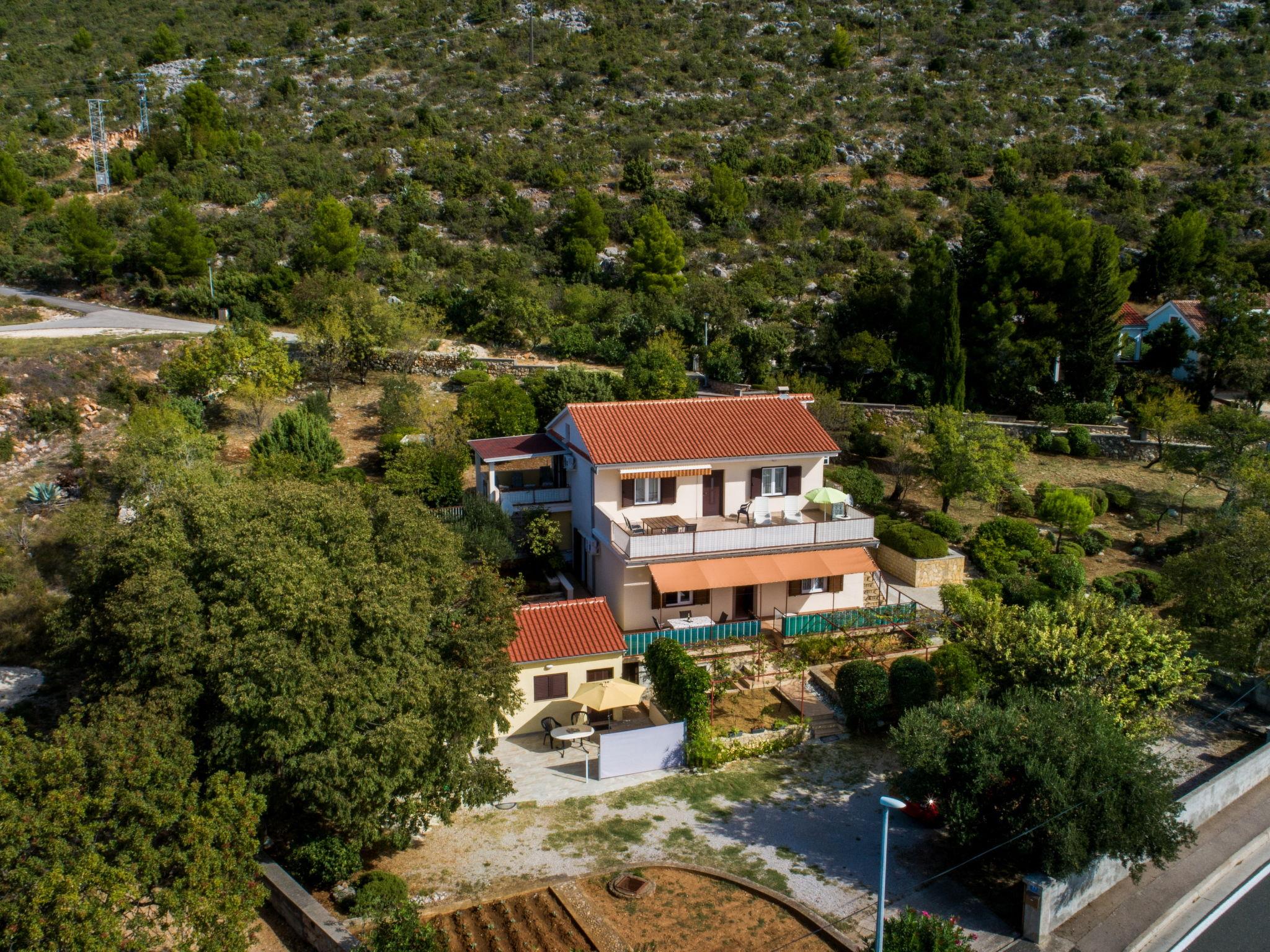 Seline: Apartment house "Ana". 2.5 km from the centre of Seline, 5.5 km from the centre of Starigrad, in a sunny position, 20 m from the sea, 50 m from the beach, road to cross. For shared use: property 2'000 m2 (fenced) with lawn and trees. Outdoor shower. In the house: internet access. Parking at the house on the premises. Supermarket 2.5 km, restaurant 2.3 km, bus stop 4.4 km, pebble beach, concrete beach 50 m. Nearby attractions: NP Paklenica 5 km.