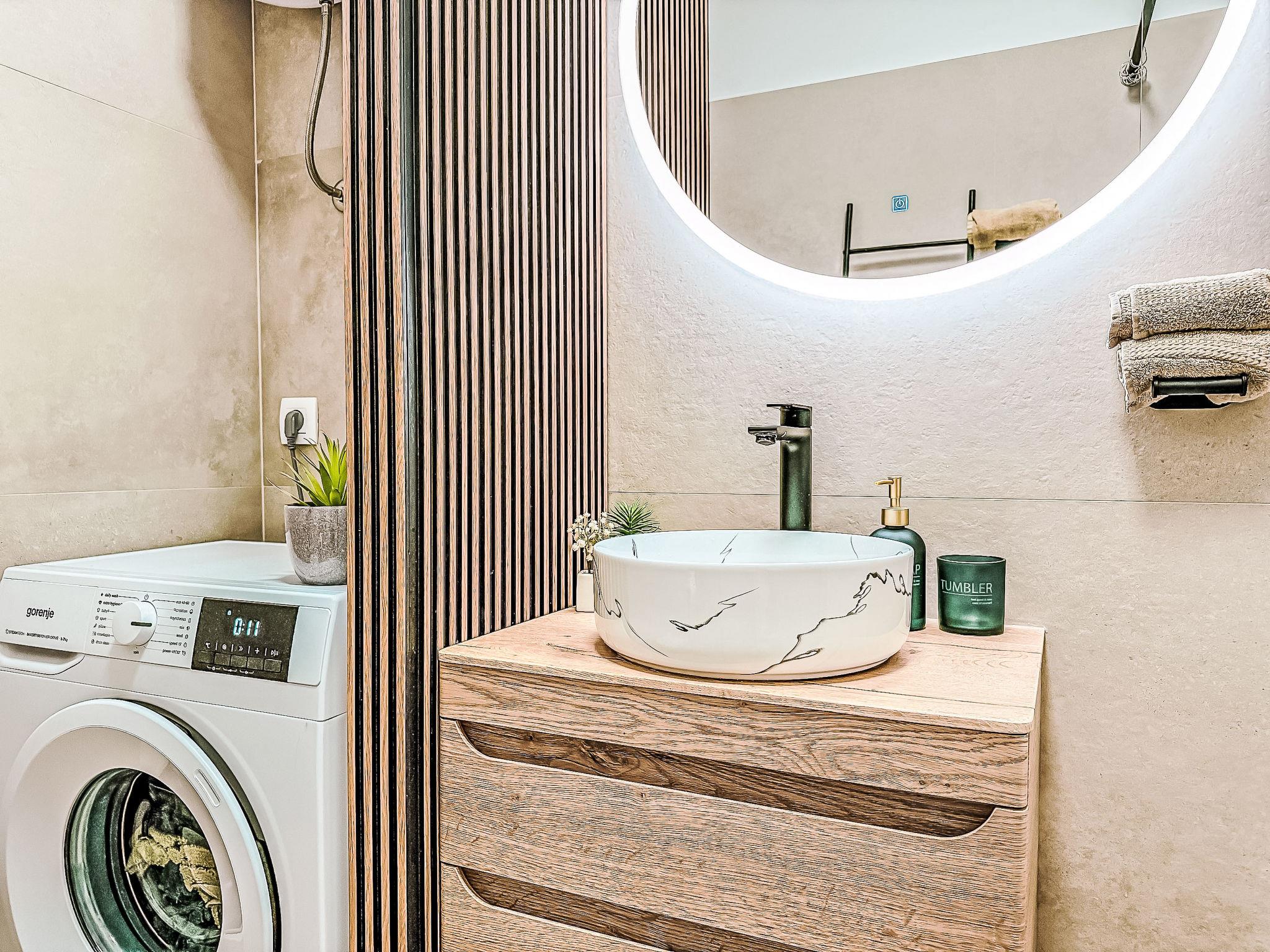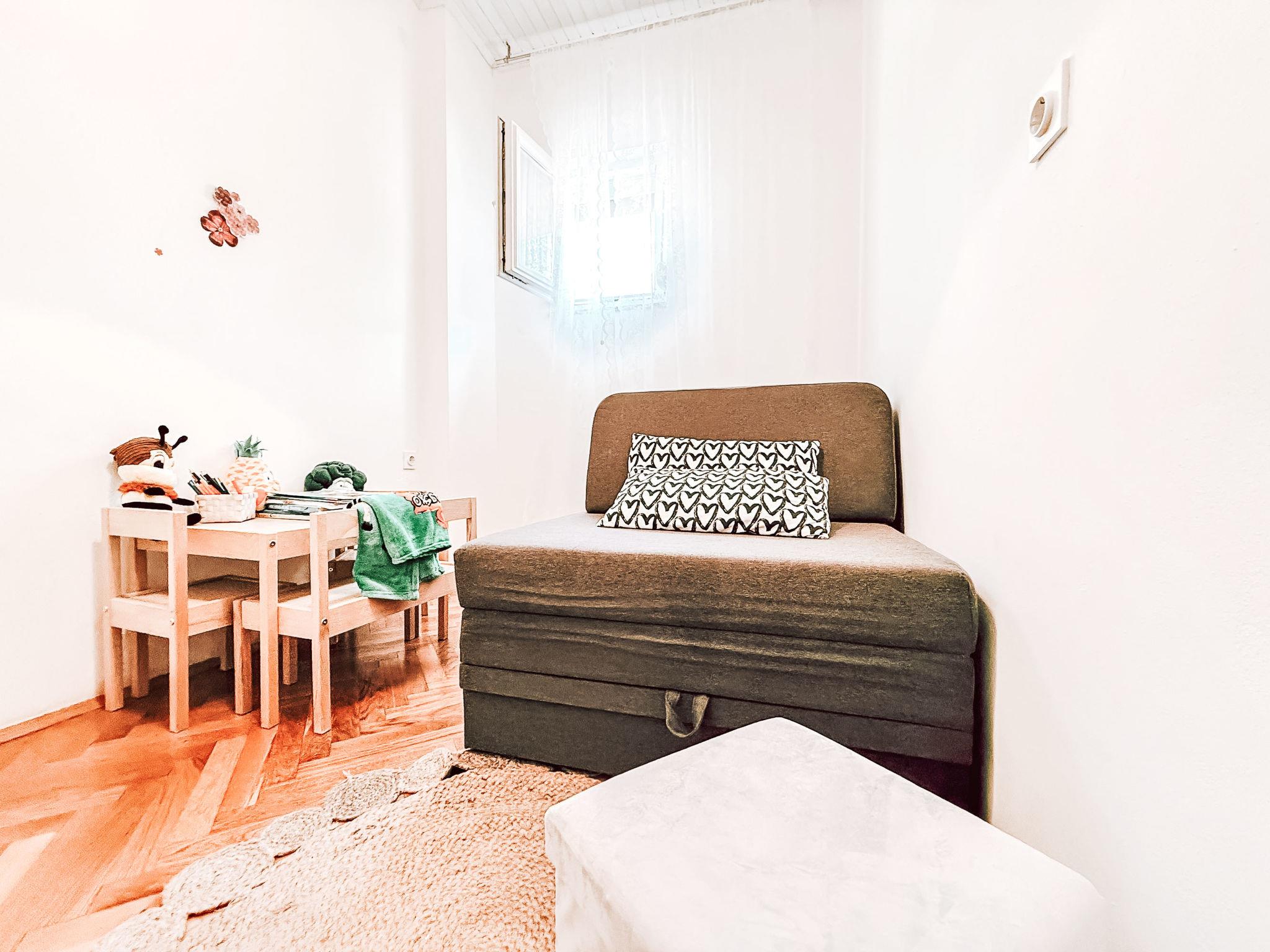 4-room house 100 m2. Living/dining room with satellite TV. Entrance hall with air conditioning. 1 room with 1 bed (90 cm, length 200 cm). 1 room with 1 french bed (160 cm, length 200 cm). Exit to the balcony. 1 room with 1 double bed (2 x 90 cm, length 200 cm). Open kitchen (oven, dishwasher, 4 ceramic glass hob hotplates, toaster, kettle, microwave, freezer, electric coffee machine). Shower/WC. No heating option. Balcony. Balcony furniture, deck chairs (2). Facilities: washing machine, baby cot. Internet (WiFi, free). Please note: non-smoking house.