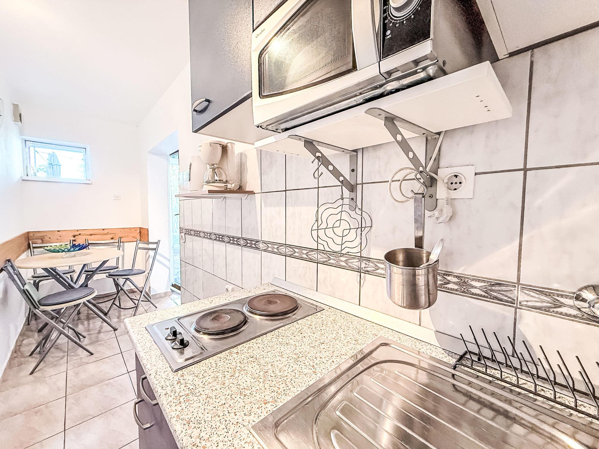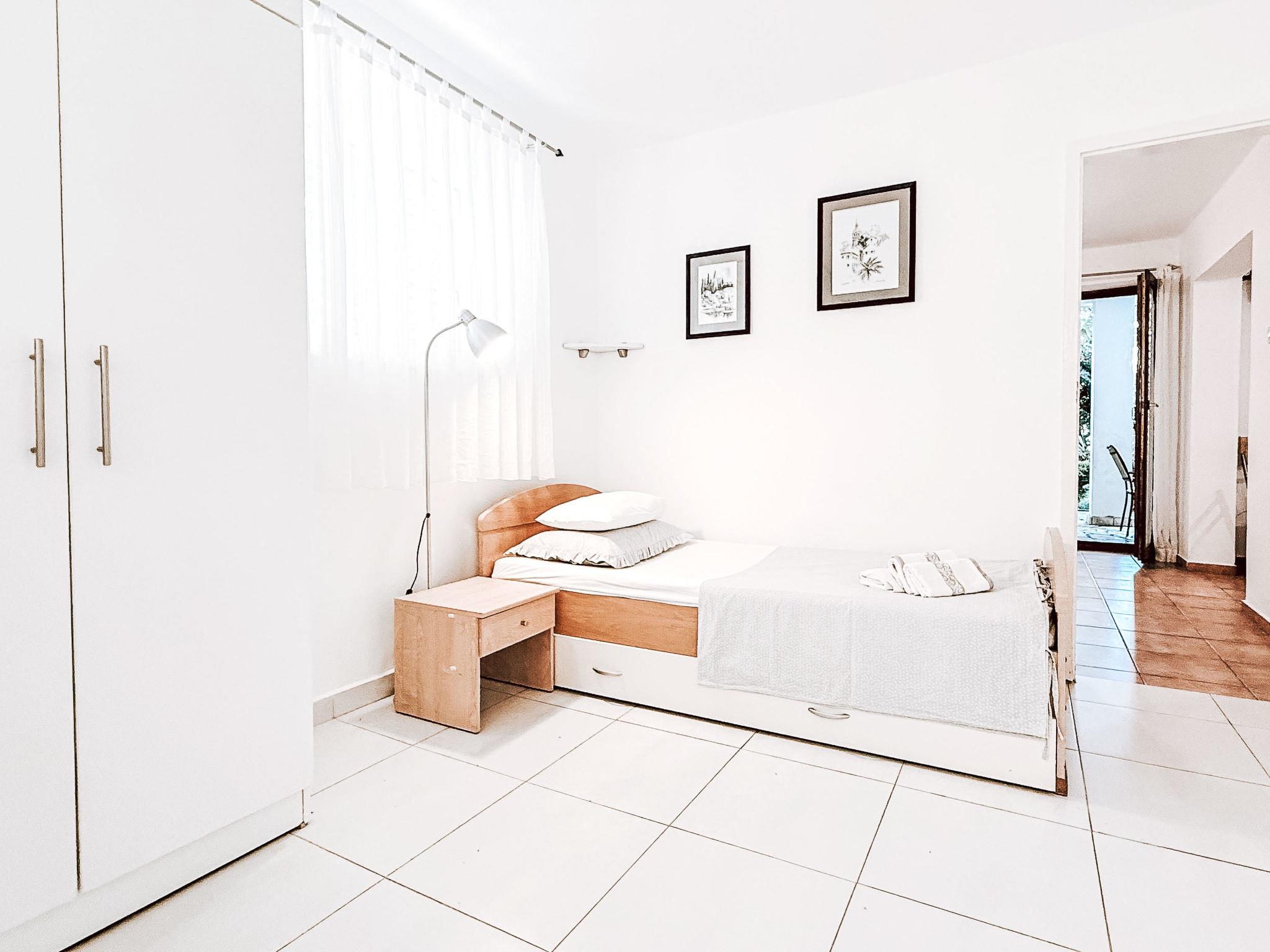 "Gottwald", 6-room apartment 100 m2, on the ground floor. Living/dining room with kitchen corner, satellite TV and air conditioning. Walk-through room with 1 bed (90 cm, length 200 cm). 1 small room with 1 french bed (140 cm, length 200 cm). Living/dining room with satellite TV and air conditioning. Walk-through room with 1 bed (90 cm, length 200 cm). 1 small room with 1 french bed (140 cm, length 200 cm). Open kitchen (2 hot plates, kettle, electric coffee machine). 2 showers/WC. No heating option. Facilities: Internet (WiFi, free). The apartment consists of 2 apartments on the ground floor, rented as one unit. Each apartment with living/dining area, open kitchen and 2 bedrooms. Each apartment with external and separate entrance.