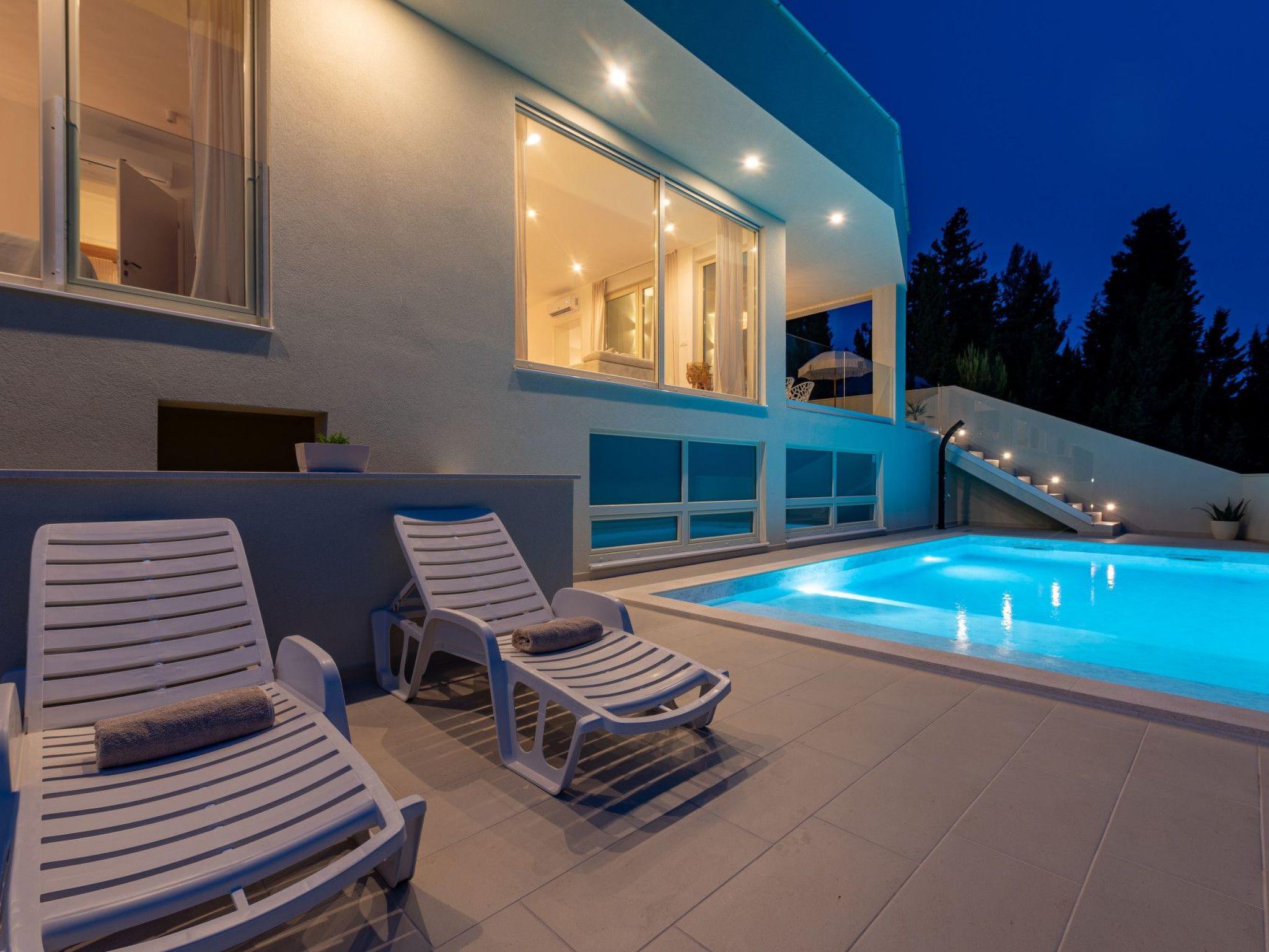 The interior of Villa Mara Ondo boasts two elegantly appointed bedrooms and two well-equipped bathrooms, ensuring privacy and convenience for all guests. Adding to the comfort, air conditioning is available in parts of the house, providing a cool retreat from the warm Dalmatian sun. For those who prefer to take a hands-on approach to holiday feasts, the inclusion of a coffee machine and electric kettle in the kitchen area allows for easy morning preparations and relaxing evenings. A washing machine and clothes dryer are also exclusively available for guests, ensuring all the comforts of home are at your fingertips.