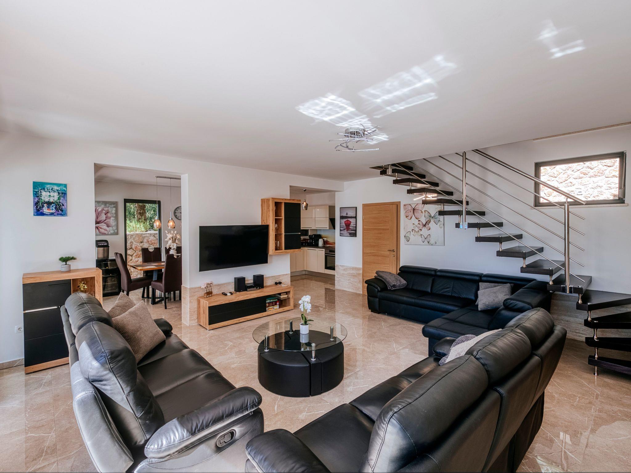 Inside Villa Kalipso, each space is thoughtfully designed to cater to your comfort and convenience. With 4 well-appointed bedrooms and 4 bathrooms, the villa ensures privacy and ease for all guests. The inclusion of a washing machine and dishwasher adds an element of homeliness, allowing you to live and pack lightly. Partial air conditioning keeps the interior environment pleasantly cool, making it a refreshing haven following sunny beach days.