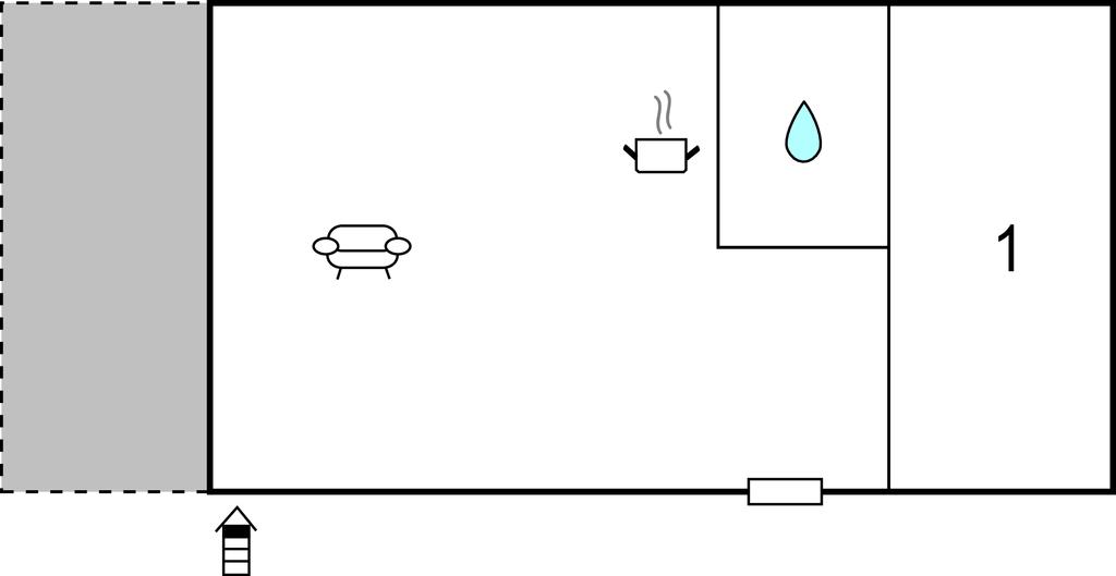Komb. spisestue/køkken 13m2 - 2 Sovepladser. (Sofa, madras eller lignende).