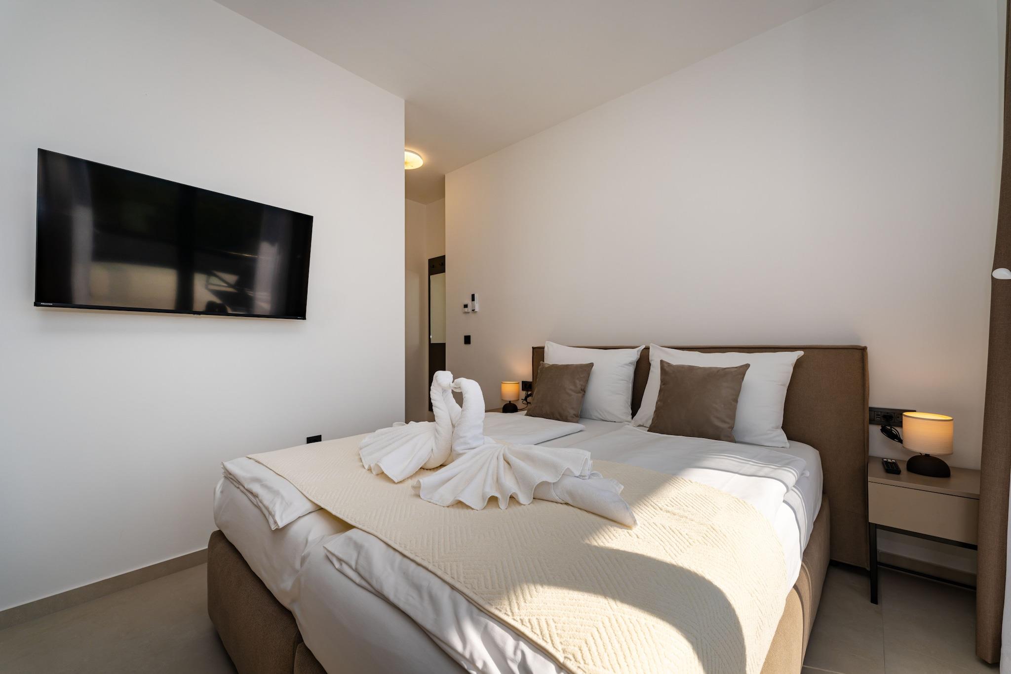 The lejlighed i Starigrad har 3 soveværelse(r) og kapacitet til 7 person(er). Bolig på 268 m², med udsigt til stranden og bjerget. Er beliggende 500 m fra byen, 1 km from the restaurant, 1 km from coffee shop, 2 km fra supermarkedet, 2 km fra stenstranden, 2 km fra naturparken "National park Paklenica", 20 km fra floden, 42 km fra lufthavnen "Zadar international Airport" og er beliggende i en ideel for familier område og omgivet af skov. Tilbyder have, terrassemøbler, indhegnet grund, 100 m² terrasse, vaskemaskine, grill, internet (wifi), hårtørrer, altan, jacuzzi, varmepumpe, aircondition i hele ferielejligheden, swimming pool privat, conditionned swimming pool privat, utildækket parkering til den samme bygning, 4 electric anti-mosquito devices, 4 Fjernsyn, satellit (Sprog: Engelsk). The amerikanske køkken, elektrisk, med service og køleskab, mikroovn, ovn, fryser, opvaskemaskine, tallerkener/bestik, køkkenredskaber, kaffemaskine, brødrister og kedel.