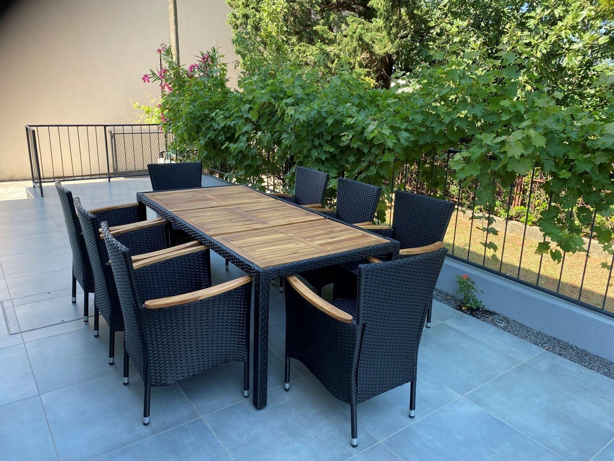 Hof (144m2, Sitzbereich), Parkplatz (Anzahl der Parkplätze: 4, Entfernung vom Objekt: im Hof), Grill: gemeinsam, WiFi Internet, Föhn, Kinderbett