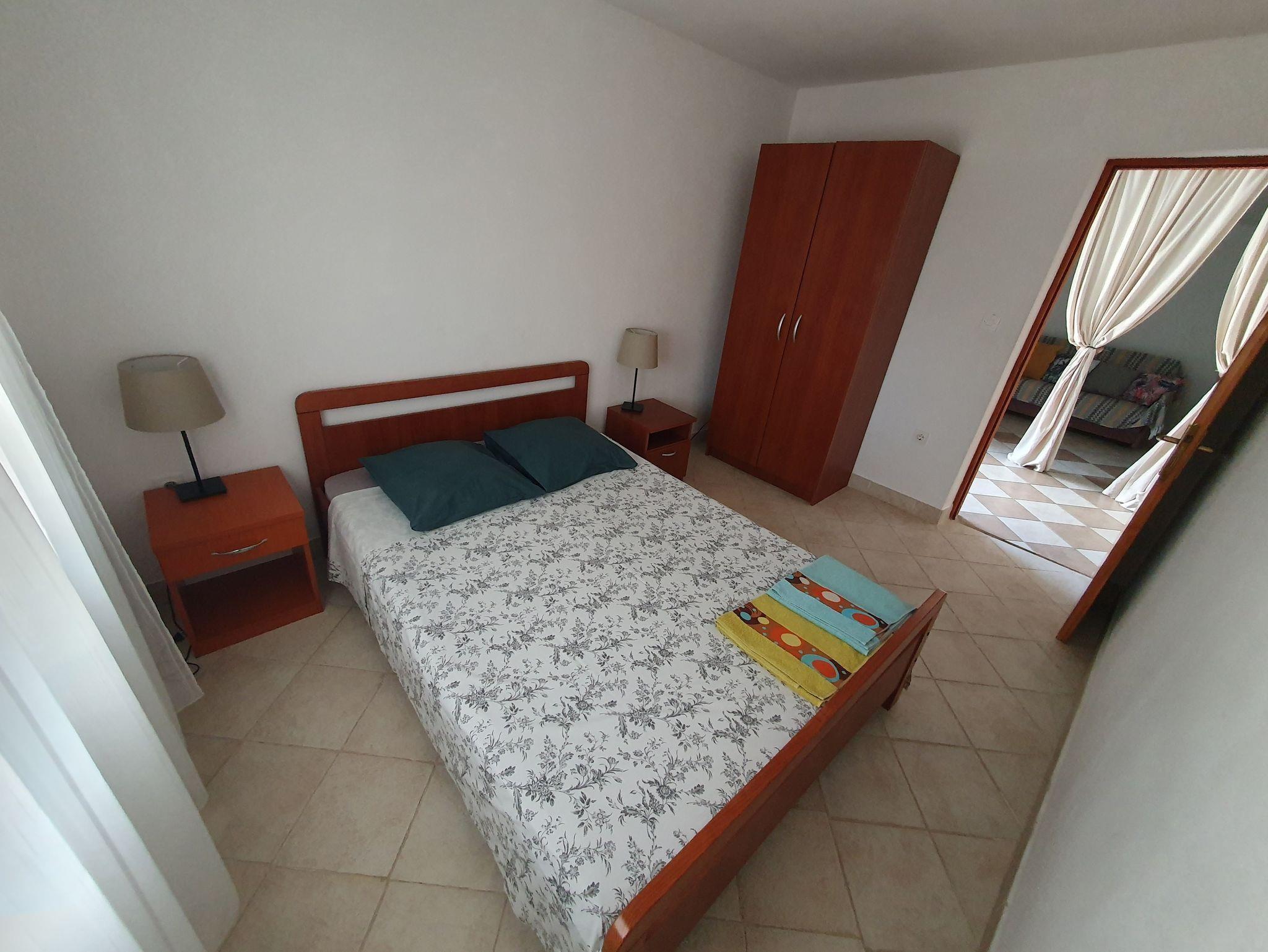 Ferienwohnung bietet Platz für 6 Gäste. Die Betten sind in Schlafzimmern, die es 2 gibt, und in Wohnzimmer, innerhalb einer Gesamtfläche von 60m2, angeordnet. Die Gäste haben eine eigene Terrasse zur Verfügung, auf der sie in warmen Sommernächten genießen können. Das Apartment bietet Meerblick. Es ist erlaubt, Speisen auf dem Gemeinschafts-Grill vorzubereiten. In der Unterkunftseinheit besteht die Möglichkeit des Mitbringens von Haustieren gegen Aufpreis. IM PREIS INBEGRIFFEN: Kurtaxe, Endreinigung, Klimatisierung, Parkplatz, Internet, Wäschewaschen, Kinderbett, Föhn, Liegestühle. VERBINDLICHE ZUSÄTZLICHE KOSTEN: Aufzahlung für Kurzaufenthalte (prozentualer Zuschlag pro Nächtigungsanzahl: 30% - 1, 20% - 2, 10% - 3). UNVERBINDLICHE ZUSÄTZLICHE KOSTEN: Haustiere (10,00 € pro Nacht). Die Verfügbarkeit zusätzlicher Dienstleistungen in Ihrem reservierten Termin und die Preise derselben (falls nicht aufgeführt) müssen im Voraus überprüft werden. Zusätzliche Dienstleistungen die in der Zahlungsaufforderung nicht aufgeführt sind werden direkt beim Vermieter bezahlt, angenommen der Gast nutzt auch diese. Ermäßigung auf den Grundpreis: Gratistag 14=13 (bei einem Aufenthalt von 14 Tagen oder mehr erhalten Sie einen Gratistag für den Aufenthalt bis 31.12.26).