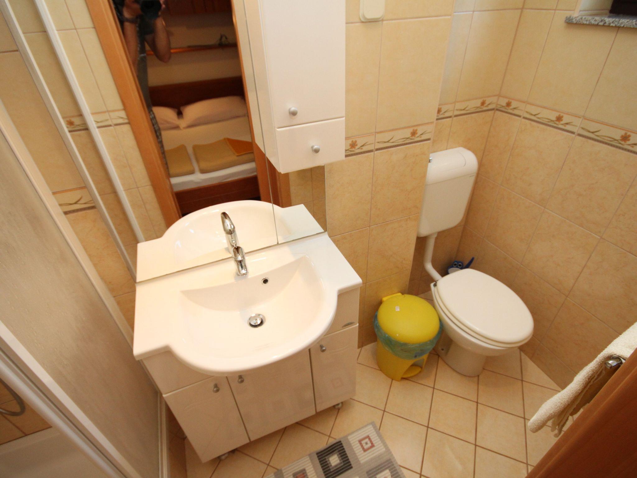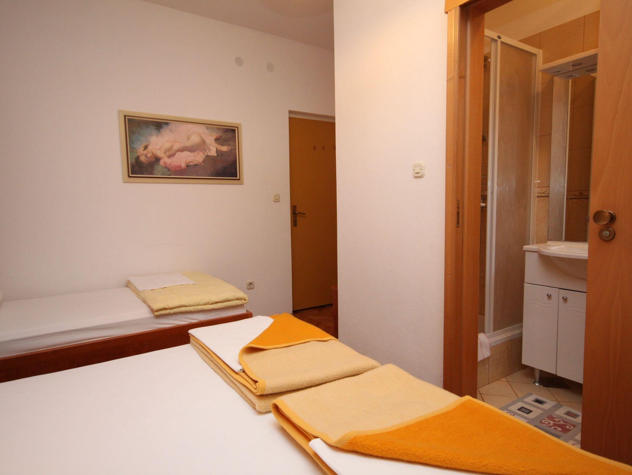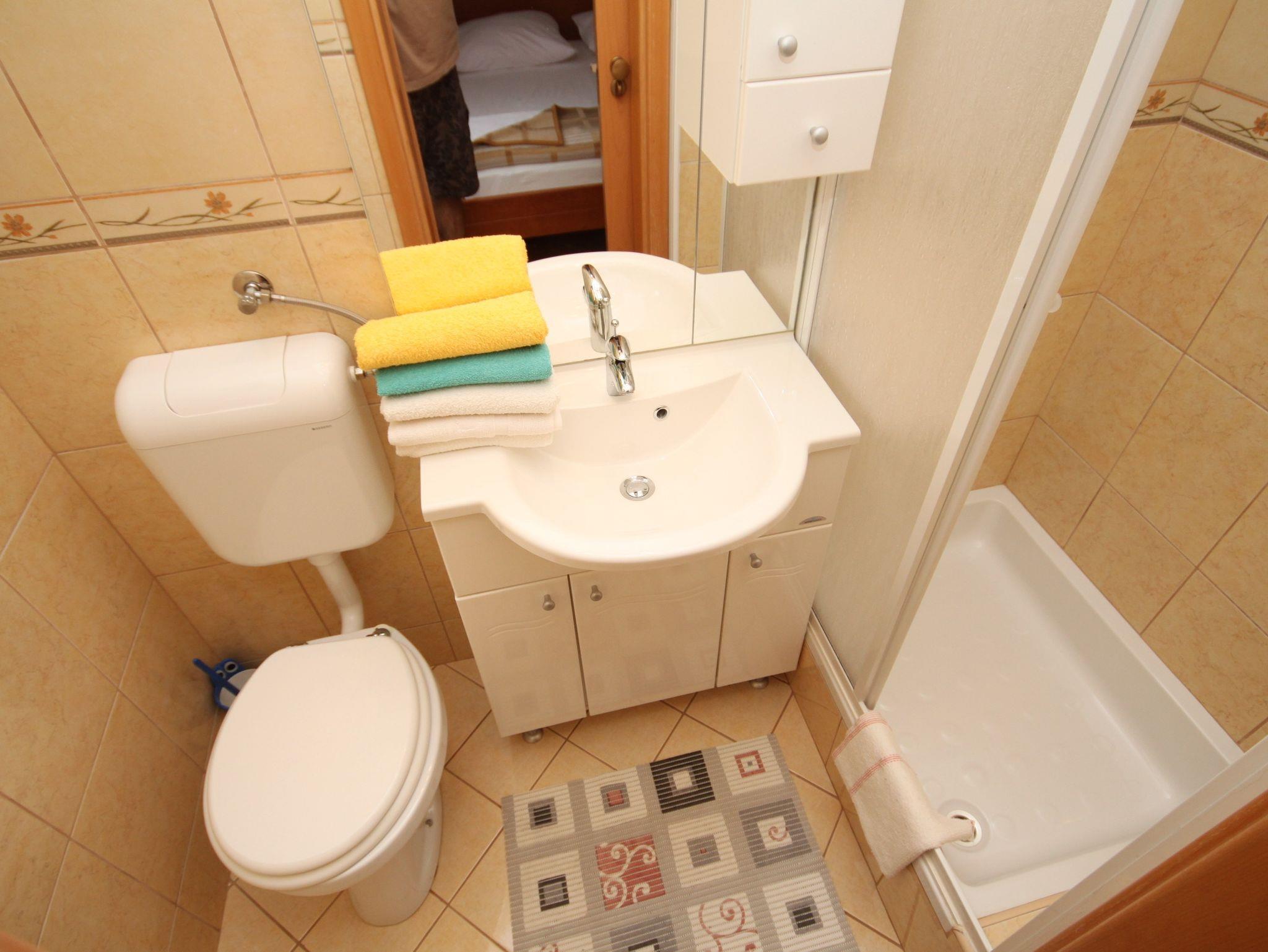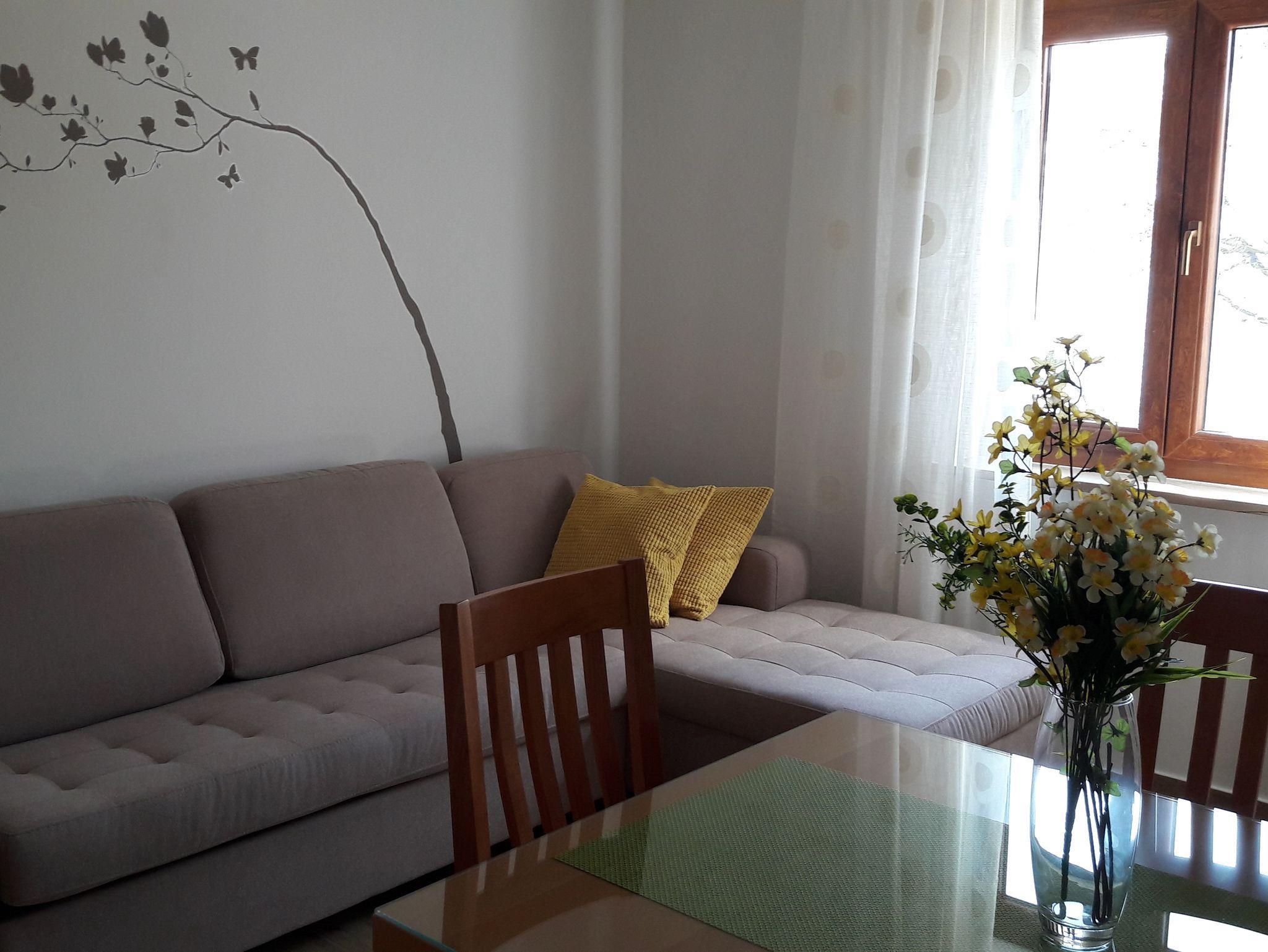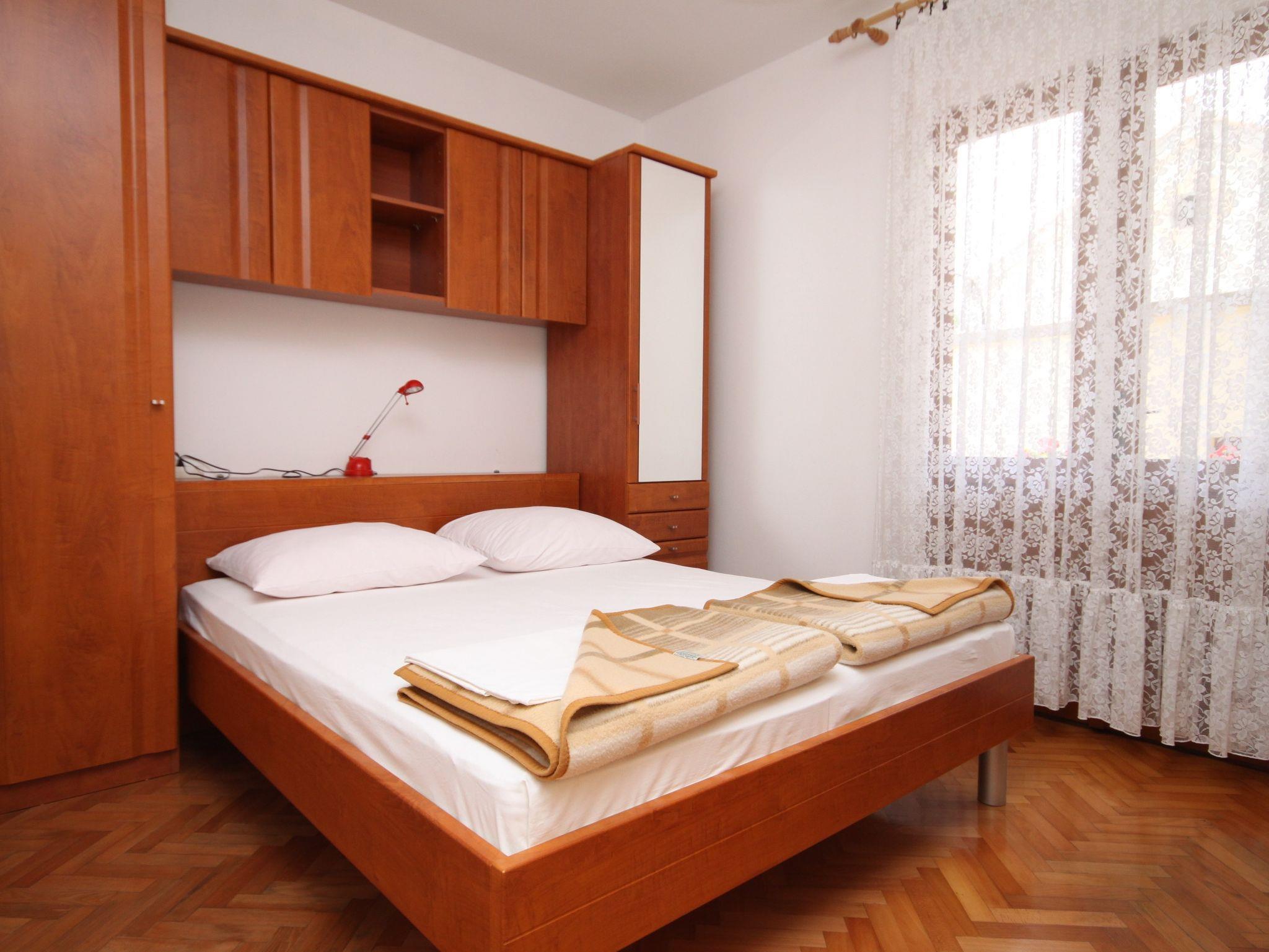 Ferienwohnung bietet Platz für 8 Gäste. Die Betten sind in Schlafzimmern, die es 3 gibt, innerhalb einer Gesamtfläche von 75m2, angeordnet. Die Gäste haben eine eigene Terrasse zur Verfügung, auf der sie in warmen Sommernächten genießen können. Das Apartment bietet Meerblick. Es ist erlaubt, Speisen auf dem Gemeinschafts-Grill vorzubereiten. Durch die Terrasse der gebuchten Unterkunftseinheit gehen auch andere Gäste oder Vermieter. IM PREIS INBEGRIFFEN: Kurtaxe, Endreinigung, Parkplatz, Internet, Wäschewaschen, Bootsanlegeplatz, Kinderbett, Bügeleisen, Bügelbrett. VERBINDLICHE ZUSÄTZLICHE KOSTEN: Aufzahlung für Kurzaufenthalte (prozentualer Zuschlag pro Nächtigungsanzahl: 30% - 1, 20% - 2, 10% - 3). Die Verfügbarkeit zusätzlicher Dienstleistungen in Ihrem reservierten Termin und die Preise derselben (falls nicht aufgeführt) müssen im Voraus überprüft werden. Zusätzliche Dienstleistungen die in der Zahlungsaufforderung nicht aufgeführt sind werden direkt beim Vermieter bezahlt, angenommen der Gast nutzt auch diese. Ermäßigung auf den Grundpreis: Gratistag 14=13 (bei einem Aufenthalt von 14 Tagen oder mehr erhalten Sie einen Gratistag für den Aufenthalt bis 31.12.26).