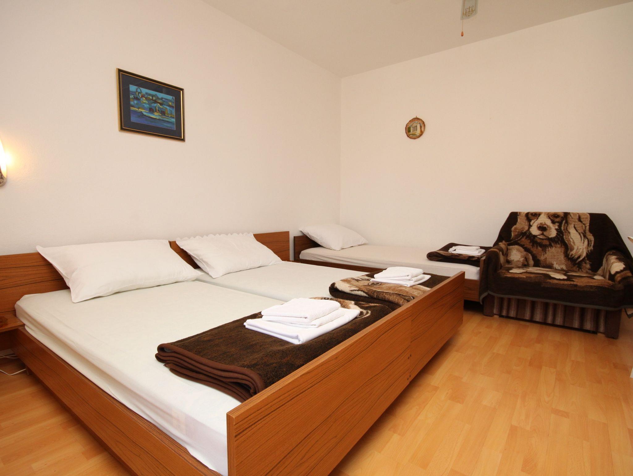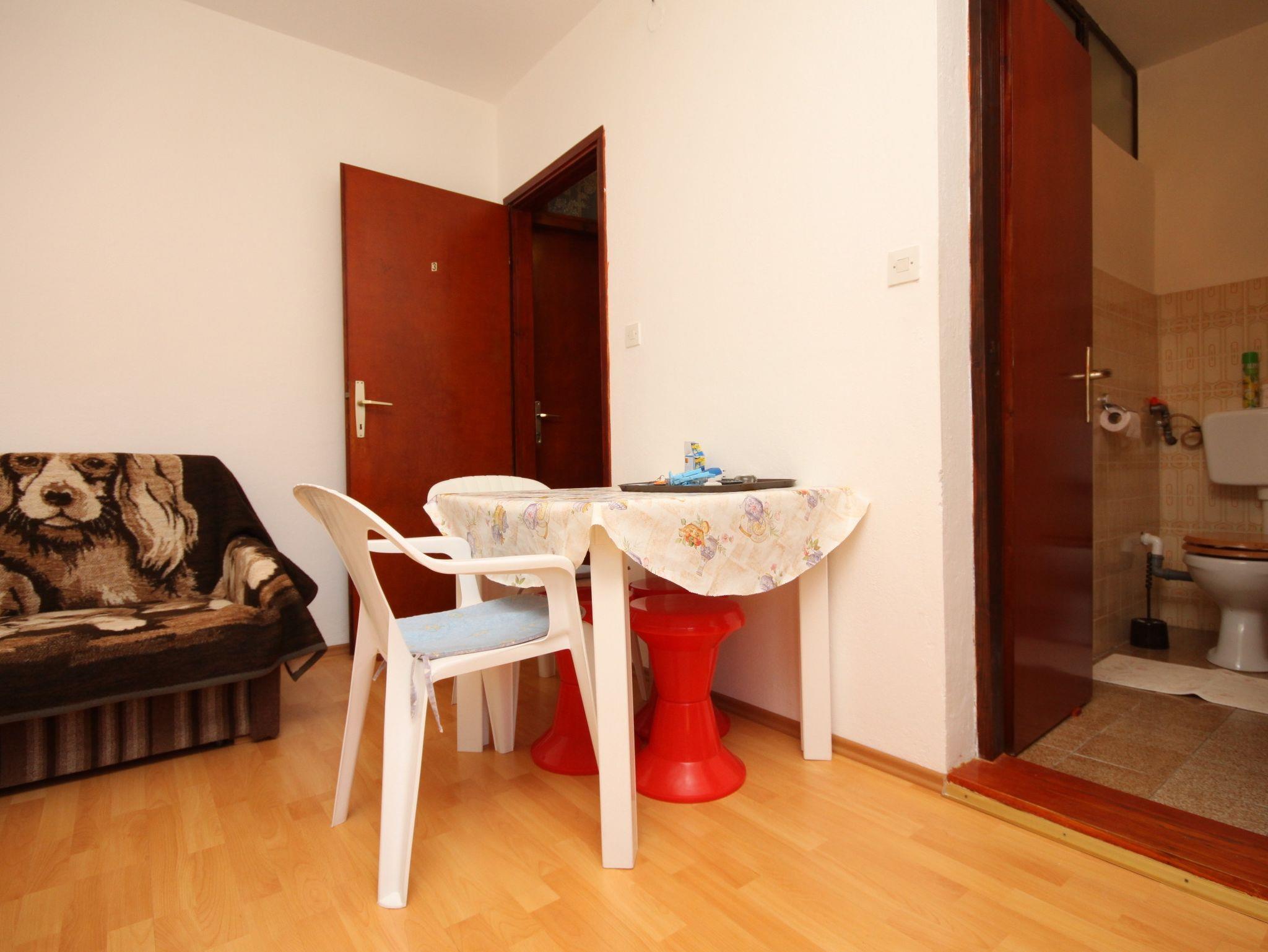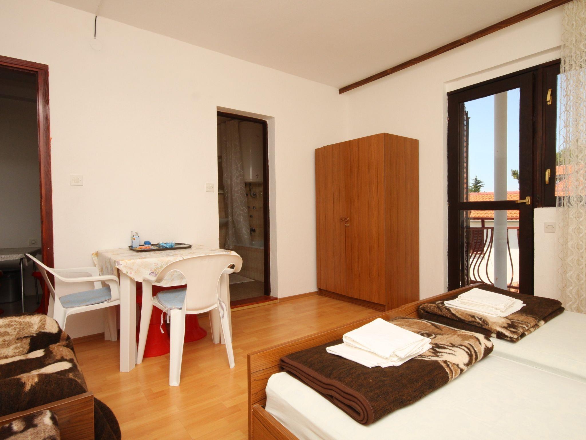 Studio bietet Platz für 2 Gäste. Die Betten sind in Schlafzimmern, die es 1 gibt, innerhalb einer Gesamtfläche von 23m2, angeordnet. Die Gäste haben einen eigenen Balkon zur Verfügung, auf der sie in warmen Sommernächten genießen können. Das Studio-Apartment bietet Meerblick. Es ist erlaubt, Speisen auf dem Gemeinschafts-Grill vorzubereiten. IM PREIS INBEGRIFFEN: Kurtaxe, Endreinigung, Parkplatz, Internet. VERBINDLICHE ZUSÄTZLICHE KOSTEN: Aufzahlung für Kurzaufenthalte (prozentualer Zuschlag pro Nächtigungsanzahl: 30% - 1, 20% - 2, 10% - 3). UNVERBINDLICHE ZUSÄTZLICHE KOSTEN: Klimatisierung (5,00 € pro Nacht), Wäschewaschen (5,00 € Waschen). Die Verfügbarkeit zusätzlicher Dienstleistungen in Ihrem reservierten Termin und die Preise derselben (falls nicht aufgeführt) müssen im Voraus überprüft werden. Zusätzliche Dienstleistungen die in der Zahlungsaufforderung nicht aufgeführt sind werden direkt beim Vermieter bezahlt, angenommen der Gast nutzt auch diese. Ermäßigung auf den Grundpreis: Gratistag 14=13 (bei einem Aufenthalt von 14 Tagen oder mehr erhalten Sie einen Gratistag für den Aufenthalt bis 31.12.26).