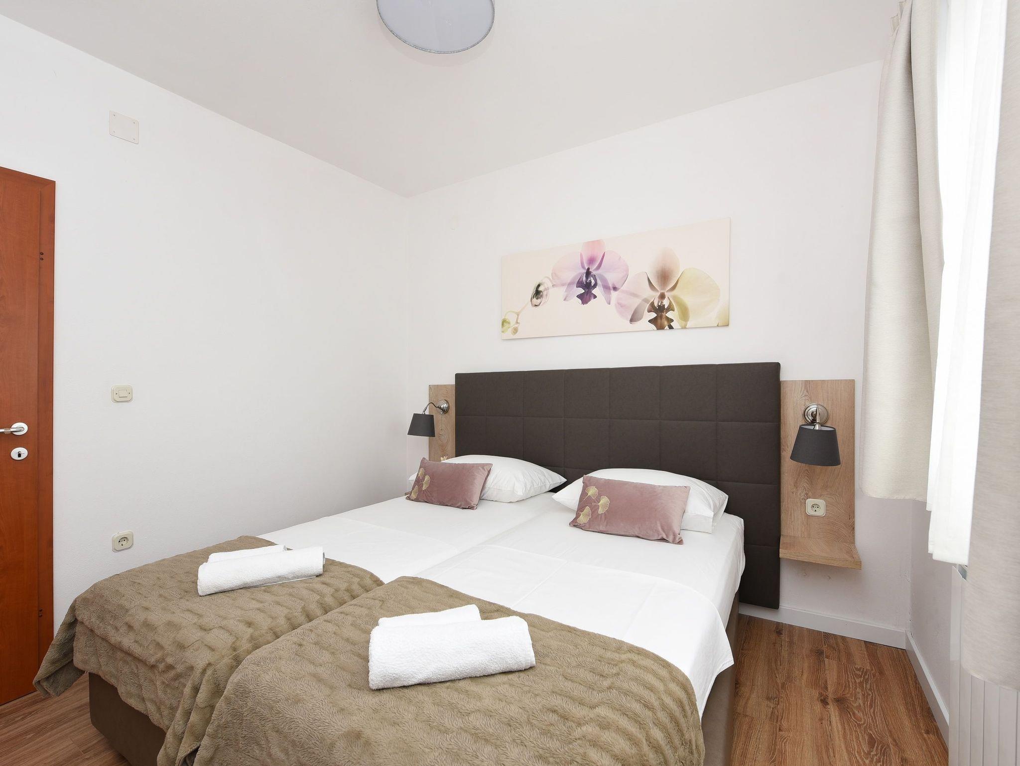 Ferienwohnung bietet Platz für 4 Gäste. Die Betten sind in Schlafzimmern, die es 2 gibt, innerhalb einer Gesamtfläche von 50m2, angeordnet. Die Gäste haben eine eigene Terrasse zur Verfügung, auf der sie in warmen Sommernächten genießen können. Das Apartment bietet Meerblick. In der gebuchten Unterkunftseinheit zahlt man am Ort ein Depositum ( der Preis ist an der Internetseite angeführt ). IM PREIS INBEGRIFFEN: Kurtaxe, Endreinigung, Klimatisierung, Zentralheizung, Parkplatz, Internet, Kinderbett, Bügeleisen, Föhn. VERBINDLICHE ZUSÄTZLICHE KOSTEN: Kaution (200,00 € Einmalzahlung), Aufzahlung für Kurzaufenthalte (prozentualer Zuschlag pro Nächtigungsanzahl: 30% - 1, 20% - 2, 10% - 3). Die Verfügbarkeit zusätzlicher Dienstleistungen in Ihrem reservierten Termin und die Preise derselben (falls nicht aufgeführt) müssen im Voraus überprüft werden. Zusätzliche Dienstleistungen die in der Zahlungsaufforderung nicht aufgeführt sind werden direkt beim Vermieter bezahlt, angenommen der Gast nutzt auch diese.