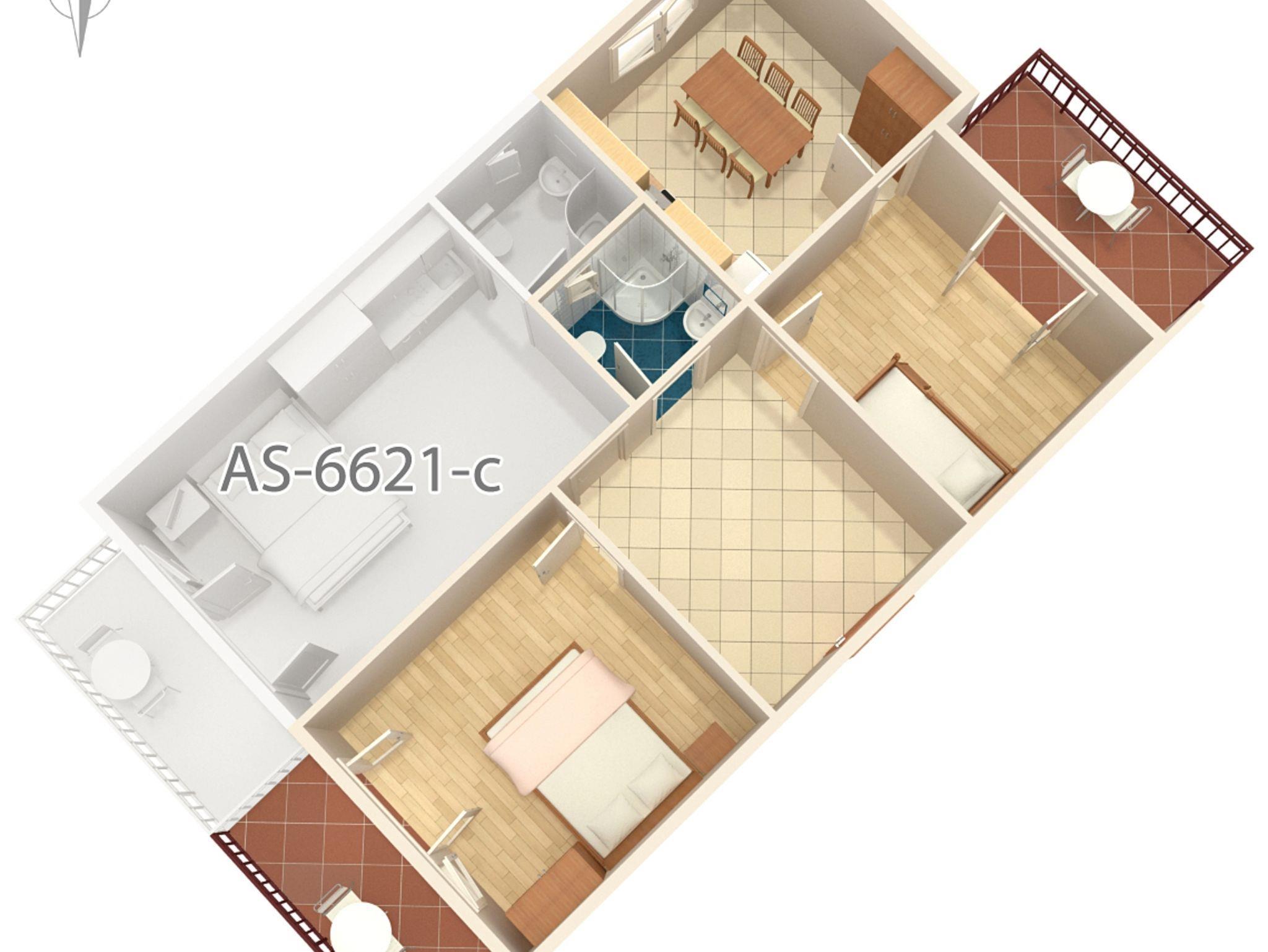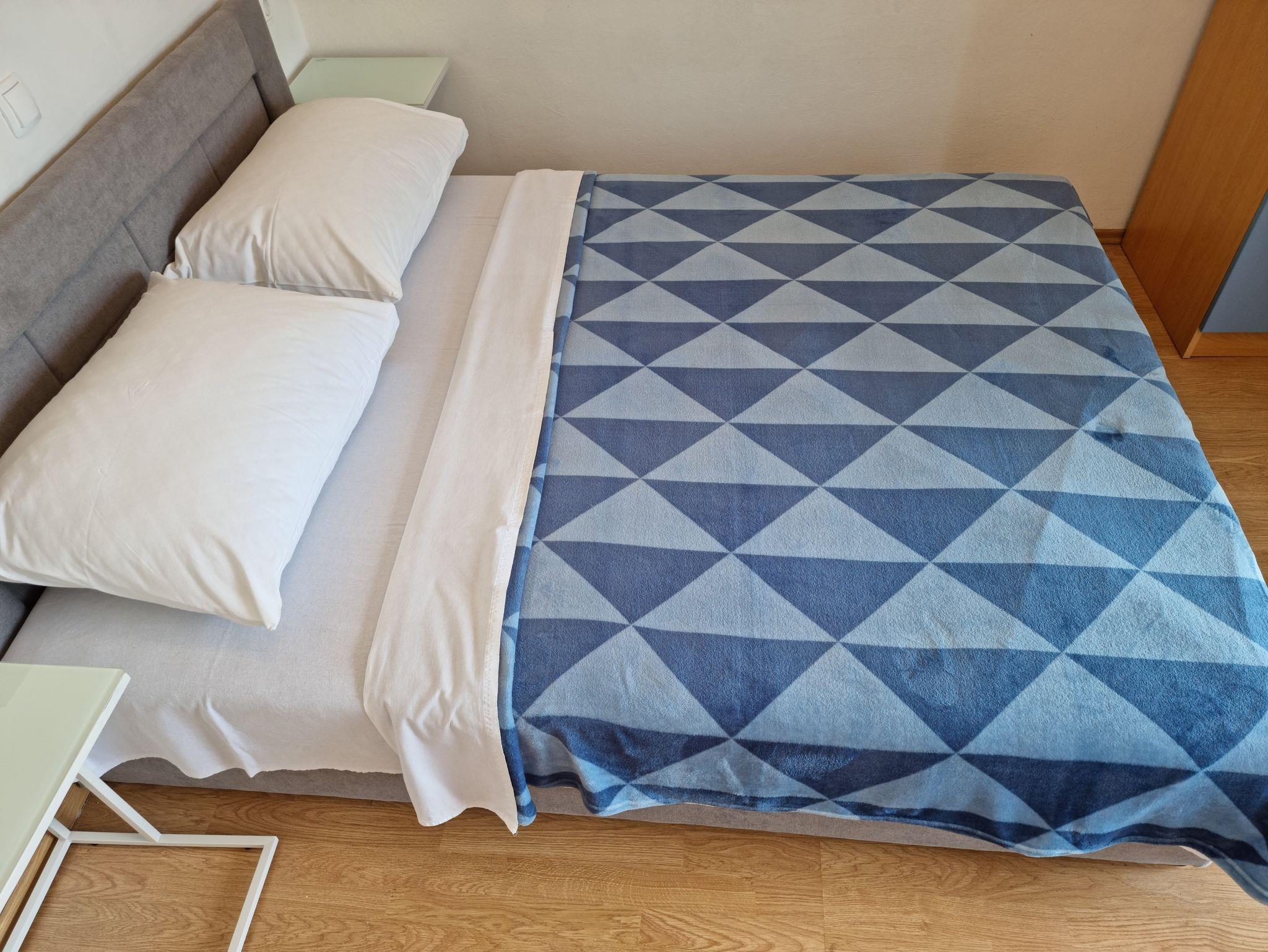 Ferienwohnung bietet Platz für 4 Gäste. Die Betten sind in Schlafzimmern, die es 2 gibt, innerhalb einer Gesamtfläche von 33m2, angeordnet. Die Gäste haben eine eigene Terrasse zur Verfügung, auf der sie in warmen Sommernächten genießen können. Das Apartment bietet Meerblick. Es ist erlaubt, Speisen auf dem Gemeinschafts-Grill vorzubereiten. Eingang in die Unterkunftseinheit ist nicht mit einer Tür von anderen Räumen des Objektes getrennt. IM PREIS INBEGRIFFEN: Kurtaxe, Endreinigung, Klimatisierung, Parkplatz, Internet, Bügeleisen, Sonnenschirm. VERBINDLICHE ZUSÄTZLICHE KOSTEN: Aufzahlung für Kurzaufenthalte (prozentualer Zuschlag pro Nächtigungsanzahl: 30% - 1, 20% - 2, 10% - 3). UNVERBINDLICHE ZUSÄTZLICHE KOSTEN: Wäschewaschen (5,00 € Waschen), Zusatzbett (5,00 € pro Nacht). Die Verfügbarkeit zusätzlicher Dienstleistungen in Ihrem reservierten Termin und die Preise derselben (falls nicht aufgeführt) müssen im Voraus überprüft werden. Zusätzliche Dienstleistungen die in der Zahlungsaufforderung nicht aufgeführt sind werden direkt beim Vermieter bezahlt, angenommen der Gast nutzt auch diese. Ermäßigung auf den Grundpreis: Gratistag 21=19 (bei einem Aufenthalt von 21 Tagen oder mehr erhalten Sie 2 Gratistage für den Aufenthalt bis 31.12.26).