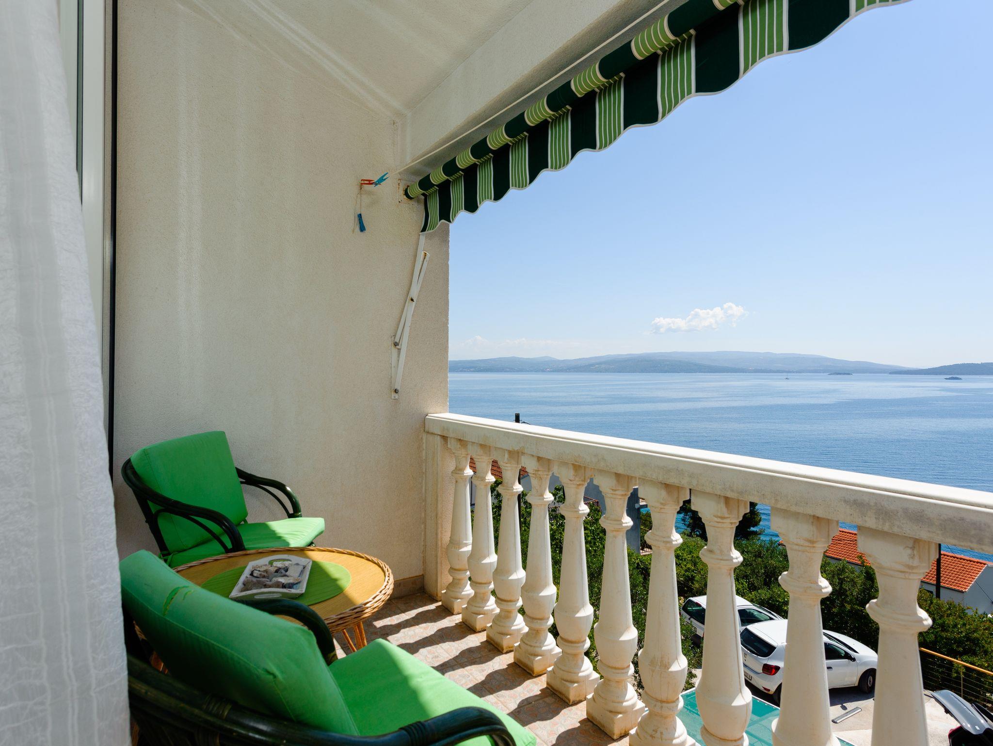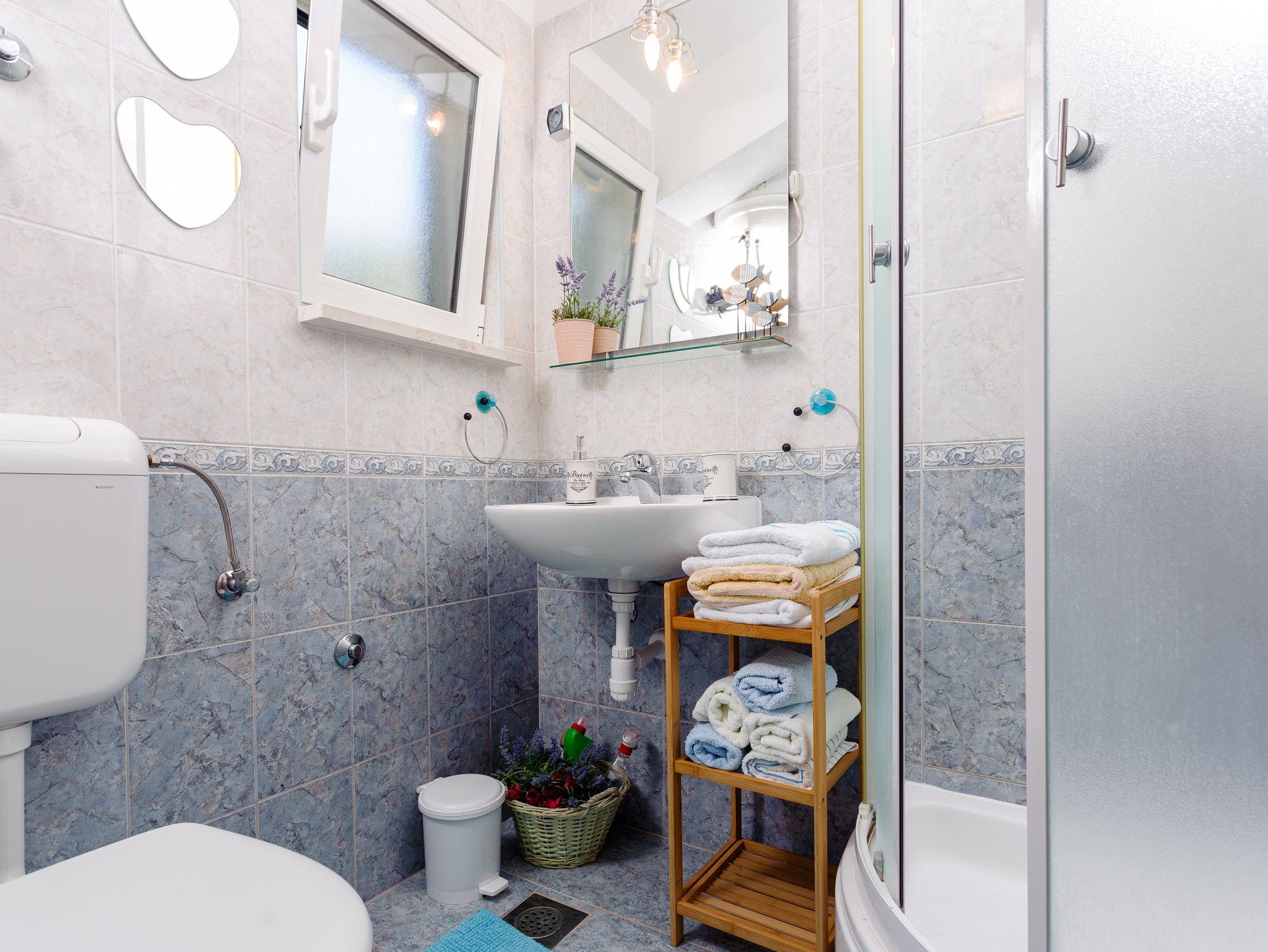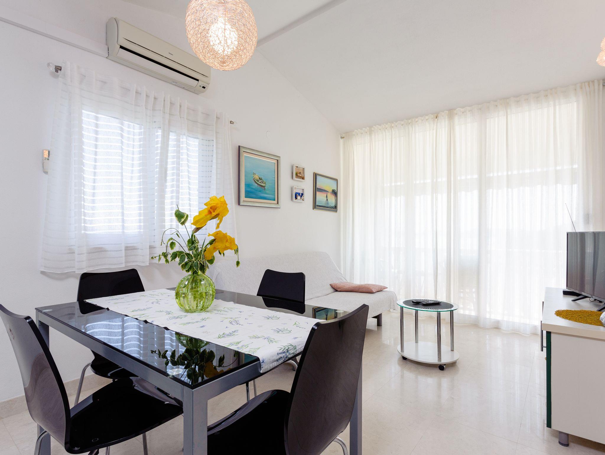 Ferienwohnung bietet Platz für 3 Gäste. Die Betten sind in Schlafzimmern, die es 1 gibt, und in Wohnzimmer, innerhalb einer Gesamtfläche von 42m2, angeordnet. Die Gäste haben einen eigenen Balkon zur Verfügung, auf der sie in warmen Sommernächten genießen können. Das Apartment bietet Meerblick. Es ist erlaubt, Speisen auf dem Gemeinschafts-Grill vorzubereiten. In der Unterkunftseinheit besteht die Möglichkeit des Mitbringens von Haustieren gegen Aufpreis. IM PREIS INBEGRIFFEN: Kurtaxe, Endreinigung, Klimatisierung, Parkplatz, Internet, Kinderbett, Bügeleisen, Föhn, Sonnenschirm. VERBINDLICHE ZUSÄTZLICHE KOSTEN: Aufzahlung für Kurzaufenthalte (prozentualer Zuschlag pro Nächtigungsanzahl: 30% - 1, 20% - 2, 10% - 3). UNVERBINDLICHE ZUSÄTZLICHE KOSTEN: Haustiere (5,00 € pro Nacht). Die Verfügbarkeit zusätzlicher Dienstleistungen in Ihrem reservierten Termin und die Preise derselben (falls nicht aufgeführt) müssen im Voraus überprüft werden. Zusätzliche Dienstleistungen die in der Zahlungsaufforderung nicht aufgeführt sind werden direkt beim Vermieter bezahlt, angenommen der Gast nutzt auch diese. Ermäßigung auf den Grundpreis: Gratistag 14=13 (bei einem Aufenthalt von 14 Tagen oder mehr erhalten Sie einen Gratistag für den Aufenthalt bis 31.12.26).