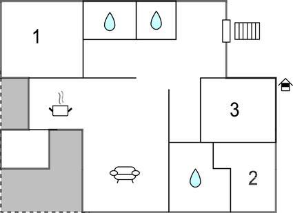 Badeværelse 5m2 (nr. 1) - WC. Varmt og koldt vand. Bruser