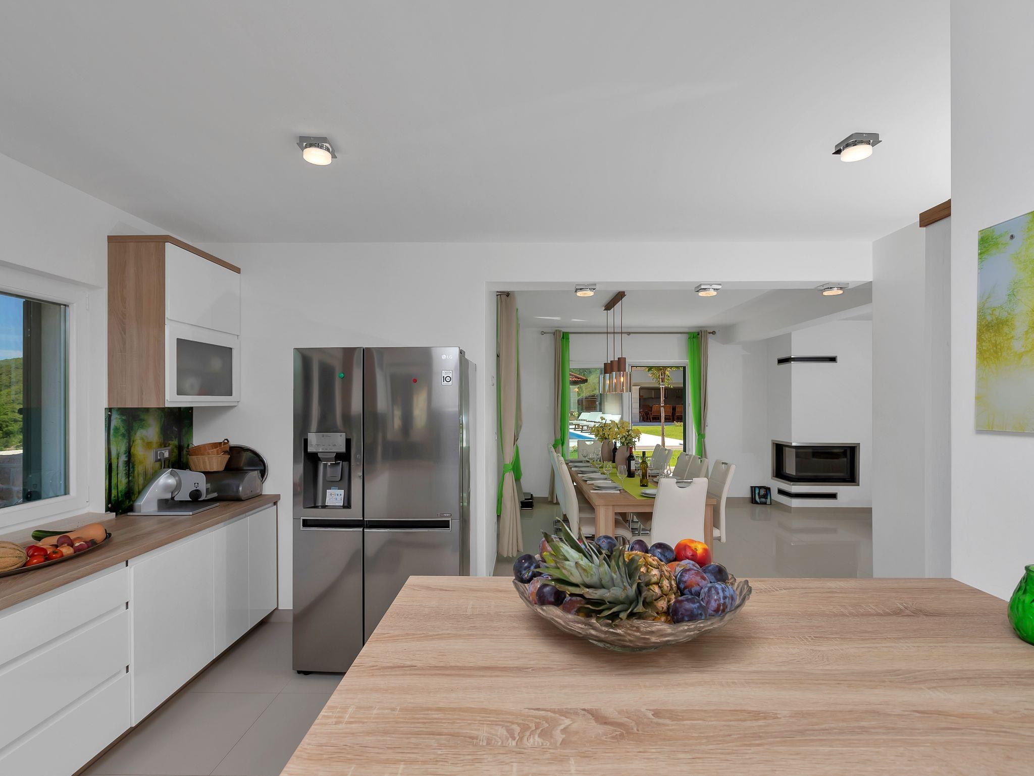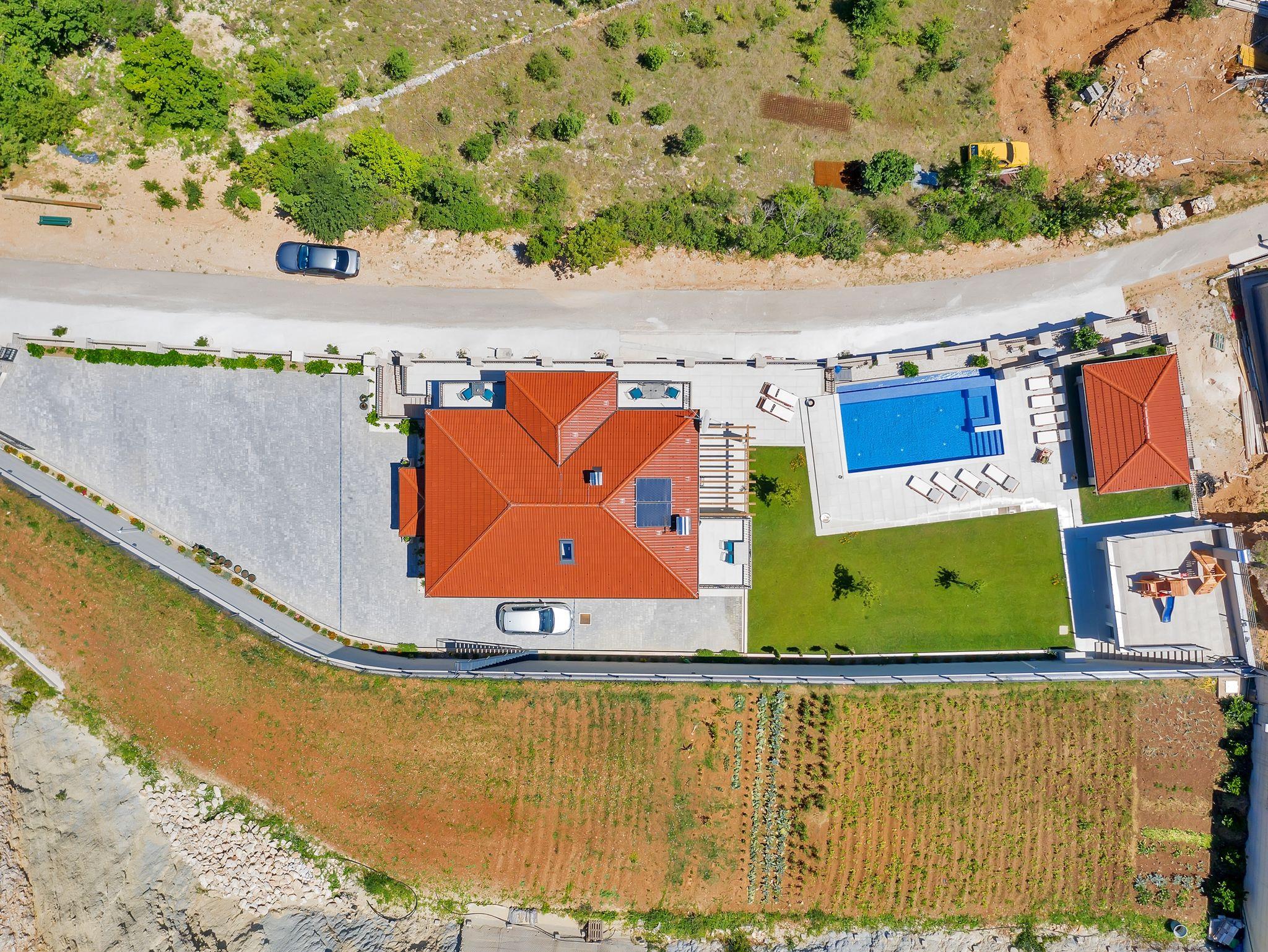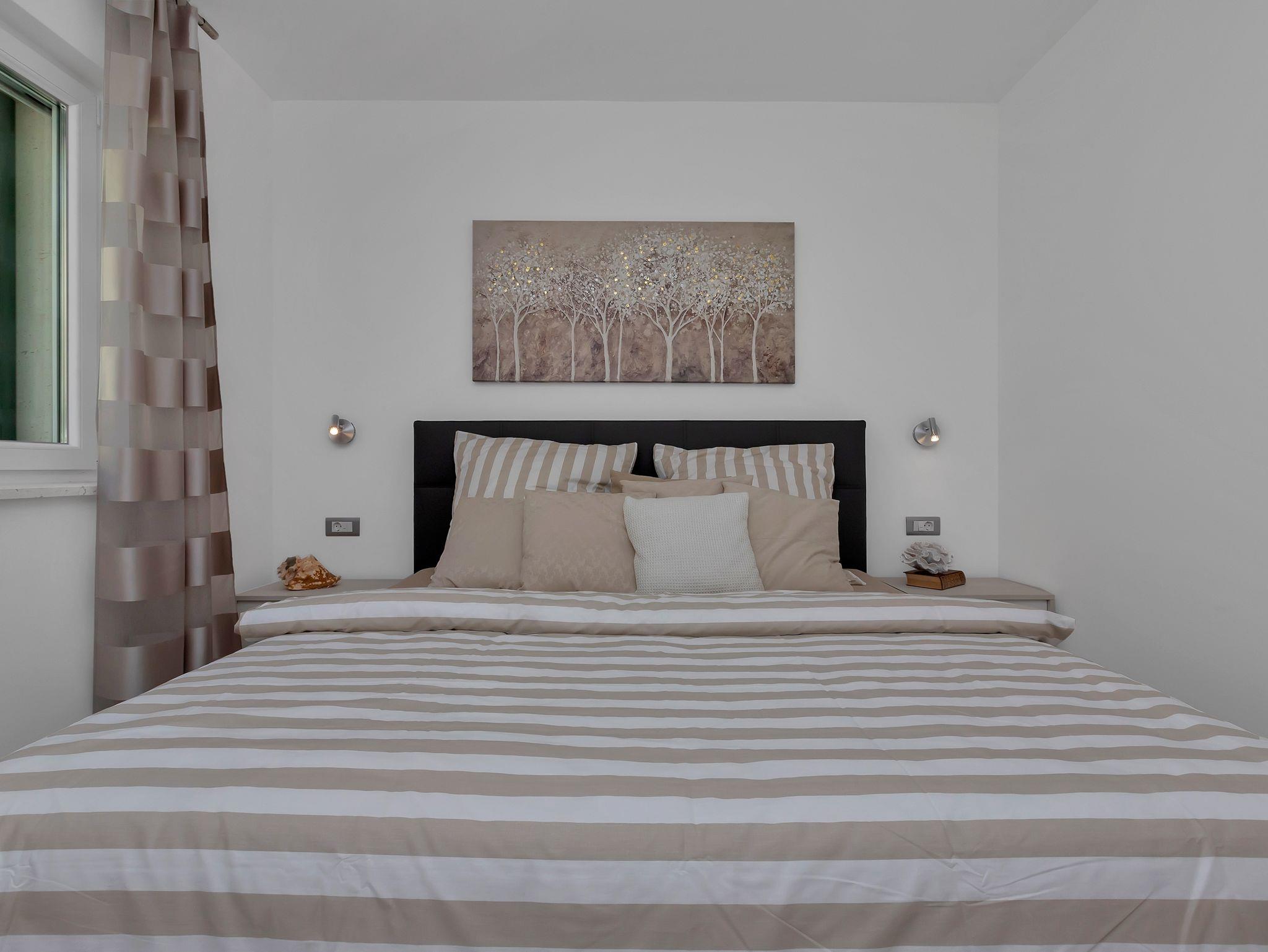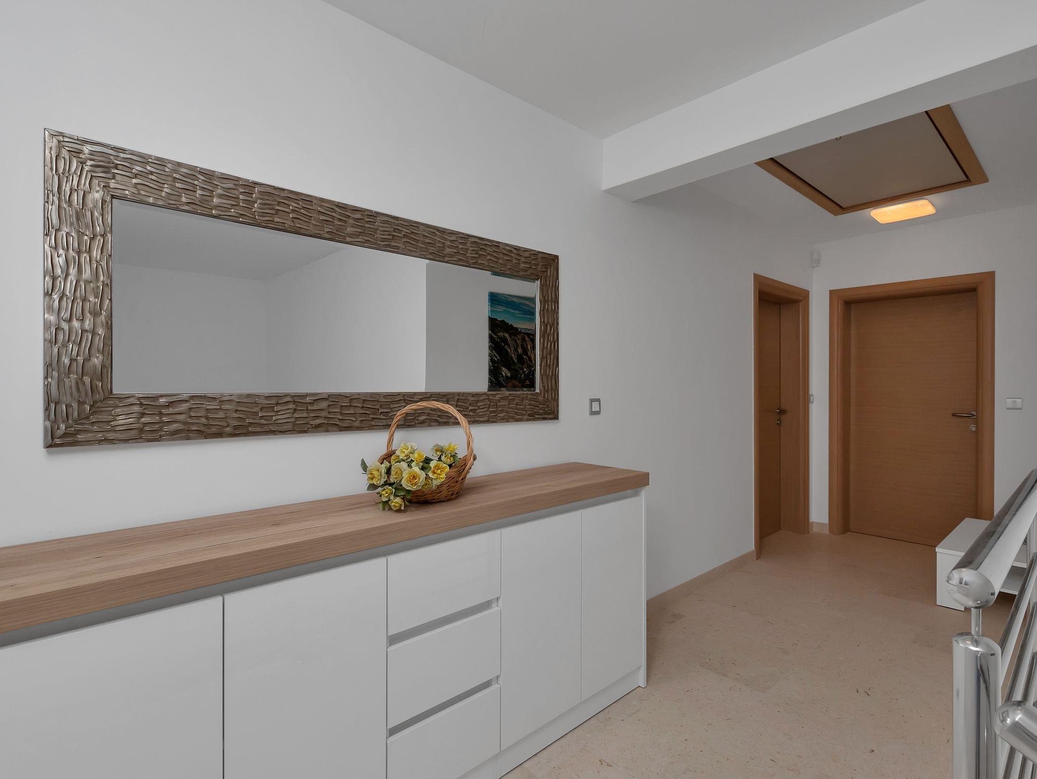 Haus bietet Platz für 10 Gäste. Die Betten sind in Schlafzimmern, die es 5 gibt, innerhalb einer Gesamtfläche von 351m2, angeordnet. Die Gäste haben eine eigene Terrasse zur Verfügung, auf der sie in warmen Sommernächten genießen können. Für vollen Genuss und Entspannung gibt es einen privaten Grill für Gäste dieser Unterkunft. Während ihres Aufenthalts können sich Gäste im privaten Schwimmbad entspannen. Unterkunftseinheit hat Räume, die von dem Rest der Einheit abgetrennt werden. In der gebuchten Unterkunftseinheit zahlt man am Ort ein Depositum ( der Preis ist an der Internetseite angeführt ). IM PREIS INBEGRIFFEN: Kurtaxe, Endreinigung, Klimatisierung, Zentralheizung, Pool, Parkplatz, Internet, Kinderbett, Bügeleisen, Bügelbrett, Föhn, Liegestühle. VERBINDLICHE ZUSÄTZLICHE KOSTEN: Kaution (500,00 € Einmalzahlung), Aufzahlung für Kurzaufenthalte (prozentualer Zuschlag pro Nächtigungsanzahl: 30% - 1, 20% - 2, 10% - 3). UNVERBINDLICHE ZUSÄTZLICHE KOSTEN: 2 Kinderbettchen (15,00 € Person/Tag). Die Verfügbarkeit zusätzlicher Dienstleistungen in Ihrem reservierten Termin und die Preise derselben (falls nicht aufgeführt) müssen im Voraus überprüft werden. Zusätzliche Dienstleistungen die in der Zahlungsaufforderung nicht aufgeführt sind werden direkt beim Vermieter bezahlt, angenommen der Gast nutzt auch diese. Ermäßigung auf den Grundpreis: Gratistag 14=13 (bei einem Aufenthalt von 14 Tagen oder mehr erhalten Sie einen Gratistag für den Aufenthalt bis 31.12.26).