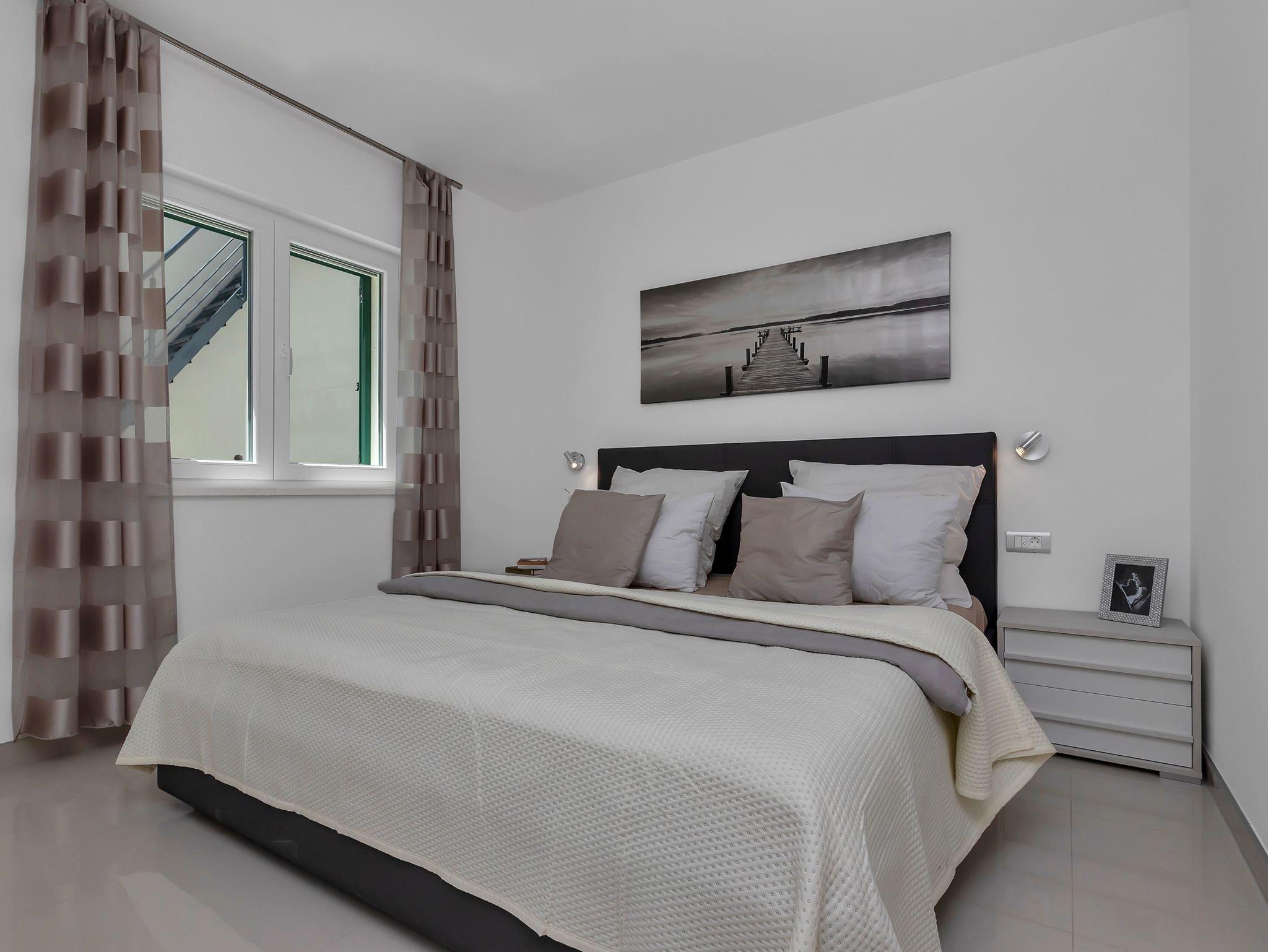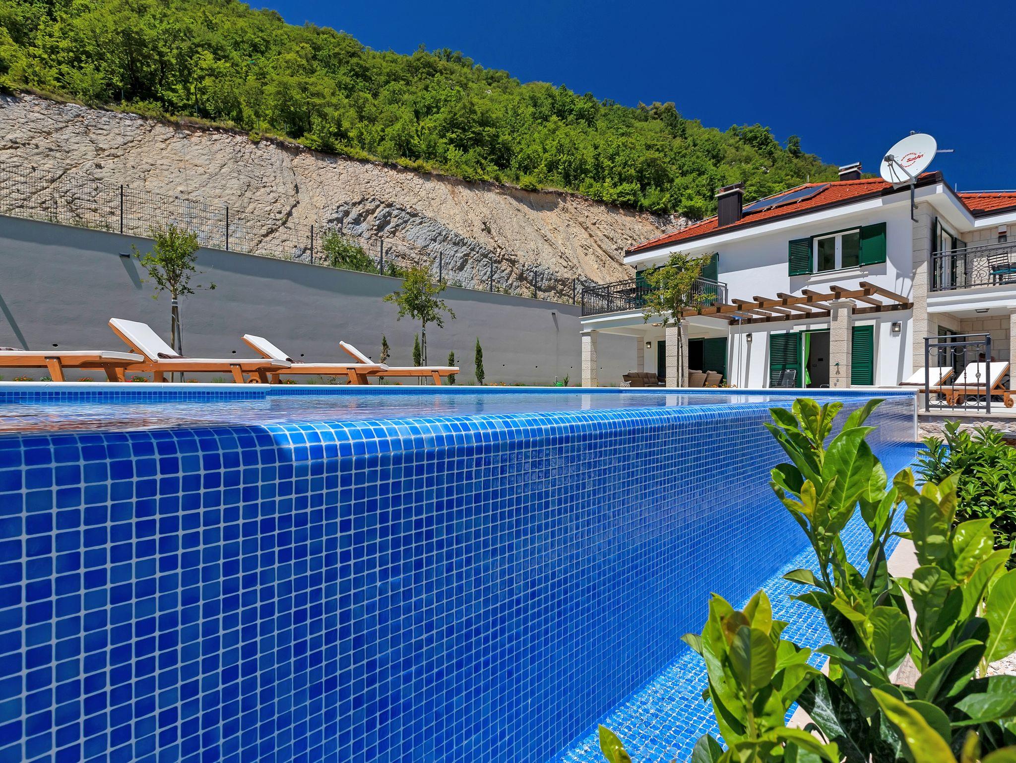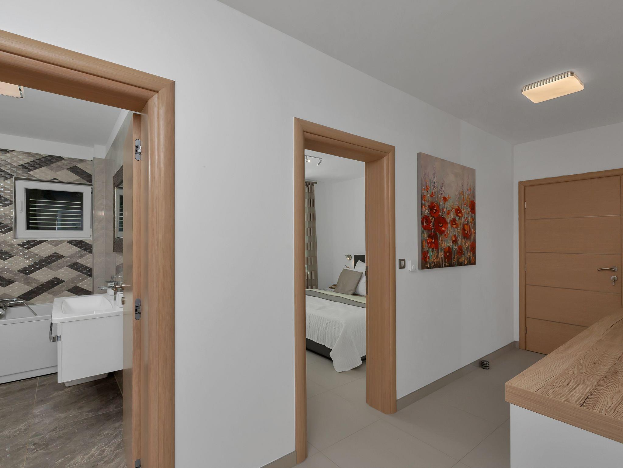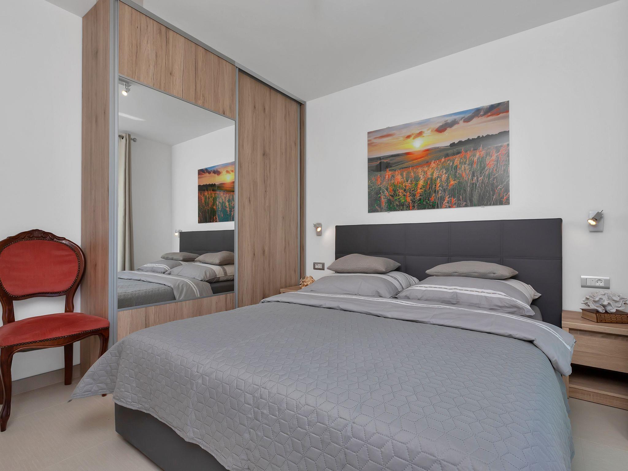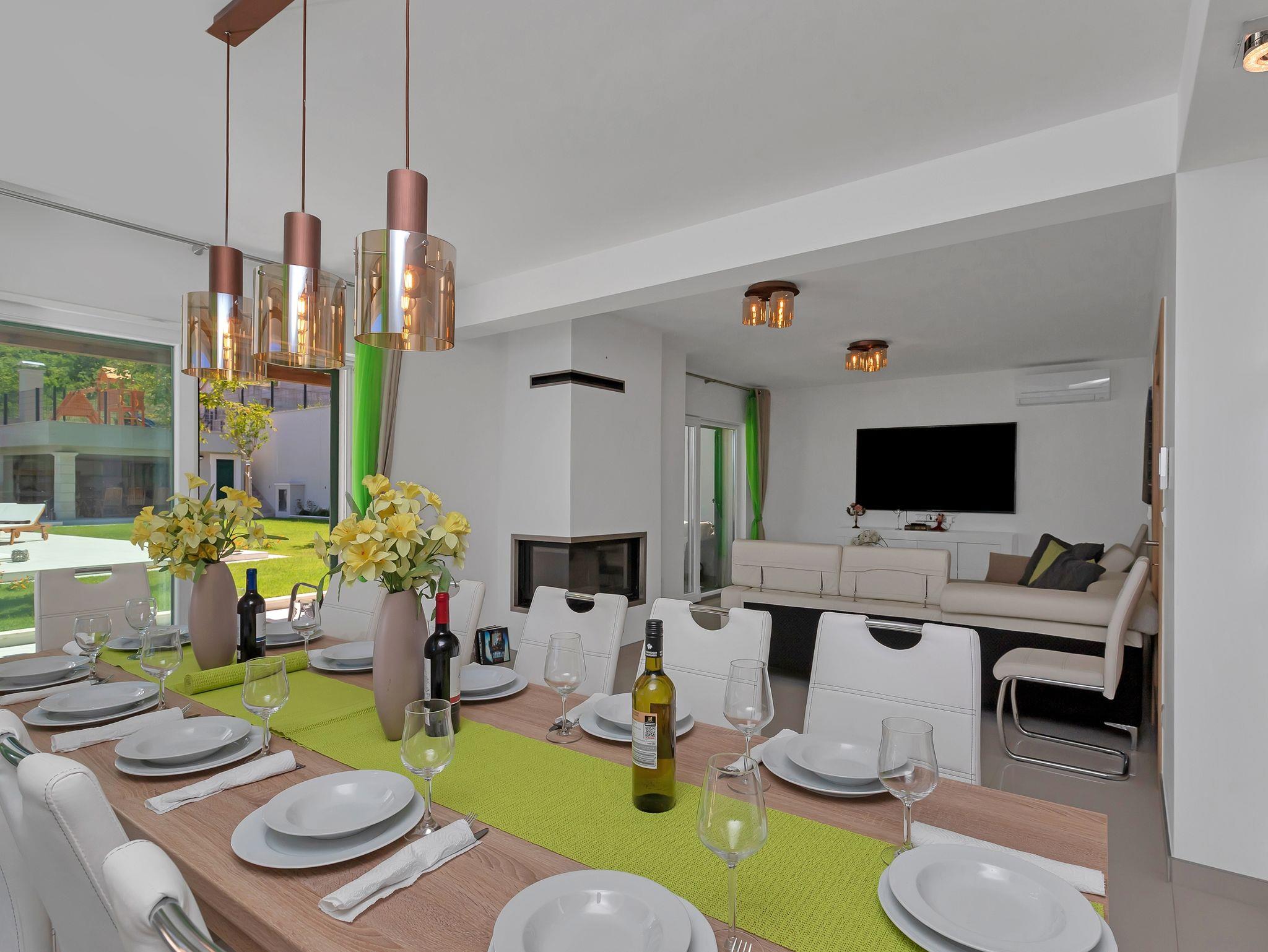 Haus bietet Platz für 10 Gäste. Die Betten sind in Schlafzimmern, die es 5 gibt, innerhalb einer Gesamtfläche von 351m2, angeordnet. Die Gäste haben eine eigene Terrasse zur Verfügung, auf der sie in warmen Sommernächten genießen können. Für vollen Genuss und Entspannung gibt es einen privaten Grill für Gäste dieser Unterkunft. Während ihres Aufenthalts können sich Gäste im privaten Schwimmbad entspannen. Unterkunftseinheit hat Räume, die von dem Rest der Einheit abgetrennt werden. In der gebuchten Unterkunftseinheit zahlt man am Ort ein Depositum ( der Preis ist an der Internetseite angeführt ). IM PREIS INBEGRIFFEN: Kurtaxe, Endreinigung, Klimatisierung, Zentralheizung, Pool, Parkplatz, Internet, Kinderbett, Bügeleisen, Bügelbrett, Föhn, Liegestühle. VERBINDLICHE ZUSÄTZLICHE KOSTEN: Kaution (500,00 € Einmalzahlung), Aufzahlung für Kurzaufenthalte (prozentualer Zuschlag pro Nächtigungsanzahl: 30% - 1, 20% - 2, 10% - 3). UNVERBINDLICHE ZUSÄTZLICHE KOSTEN: 2 Kinderbettchen (15,00 € Person/Tag). Die Verfügbarkeit zusätzlicher Dienstleistungen in Ihrem reservierten Termin und die Preise derselben (falls nicht aufgeführt) müssen im Voraus überprüft werden. Zusätzliche Dienstleistungen die in der Zahlungsaufforderung nicht aufgeführt sind werden direkt beim Vermieter bezahlt, angenommen der Gast nutzt auch diese. Ermäßigung auf den Grundpreis: Gratistag 14=13 (bei einem Aufenthalt von 14 Tagen oder mehr erhalten Sie einen Gratistag für den Aufenthalt bis 31.12.26).