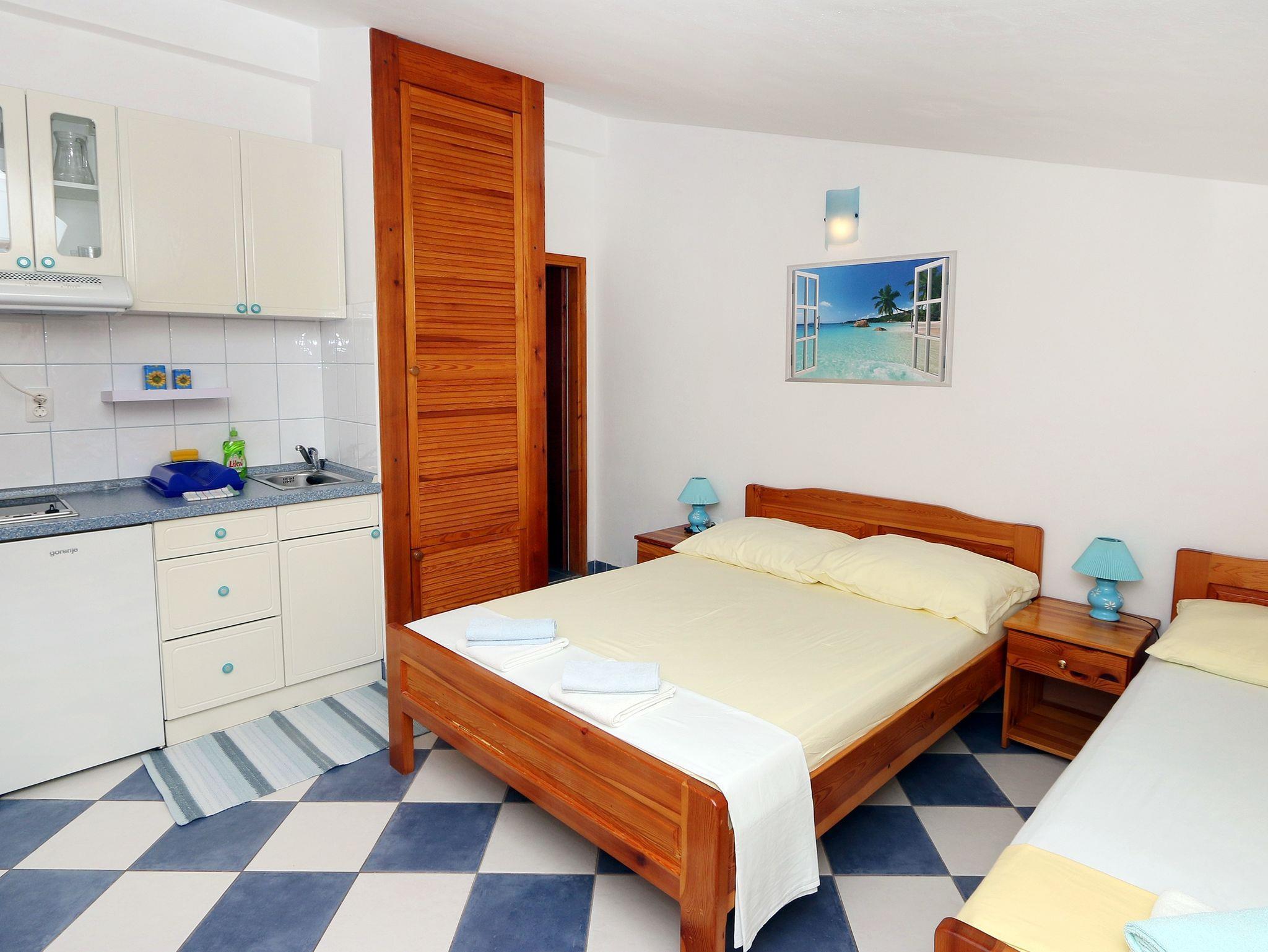 Studio bietet Platz für 3 Gäste. Die Betten sind in Schlafzimmern, die es 1 gibt, innerhalb einer Gesamtfläche von 18m2, angeordnet. Die Gäste haben einen eigenen Balkon zur Verfügung, auf der sie in warmen Sommernächten genießen können. Das Studio-Apartment bietet Meerblick. Es ist erlaubt, Speisen auf dem Gemeinschafts-Grill vorzubereiten. In der Unterkunftseinheit besteht die Möglichkeit des Mitbringens von Haustieren gegen Aufpreis. IM PREIS INBEGRIFFEN: Endreinigung, Klimatisierung, Parkplatz, Internet, Kinderbett, Bügeleisen, Bügelbrett, Föhn. VERBINDLICHE ZUSÄTZLICHE KOSTEN: Kurtaxe (Erwachsene 0,65 € - 1,33 € Nacht/Person, Kinderermäßigung 12 - 17 Jahre), Aufzahlung für Kurzaufenthalte (prozentualer Zuschlag pro Nächtigungsanzahl: 30% - 1, 20% - 2, 10% - 3). UNVERBINDLICHE ZUSÄTZLICHE KOSTEN: Frühstück (10,00 €, 50% Nachlass für Kinder zwischen 4 und 12 Jahren, Kinder bis 4 Jahre sind frei.), Haustiere (10,00 € pro Nacht). Die Verfügbarkeit zusätzlicher Dienstleistungen in Ihrem reservierten Termin und die Preise derselben (falls nicht aufgeführt) müssen im Voraus überprüft werden. Zusätzliche Dienstleistungen die in der Zahlungsaufforderung nicht aufgeführt sind werden direkt beim Vermieter bezahlt, angenommen der Gast nutzt auch diese.