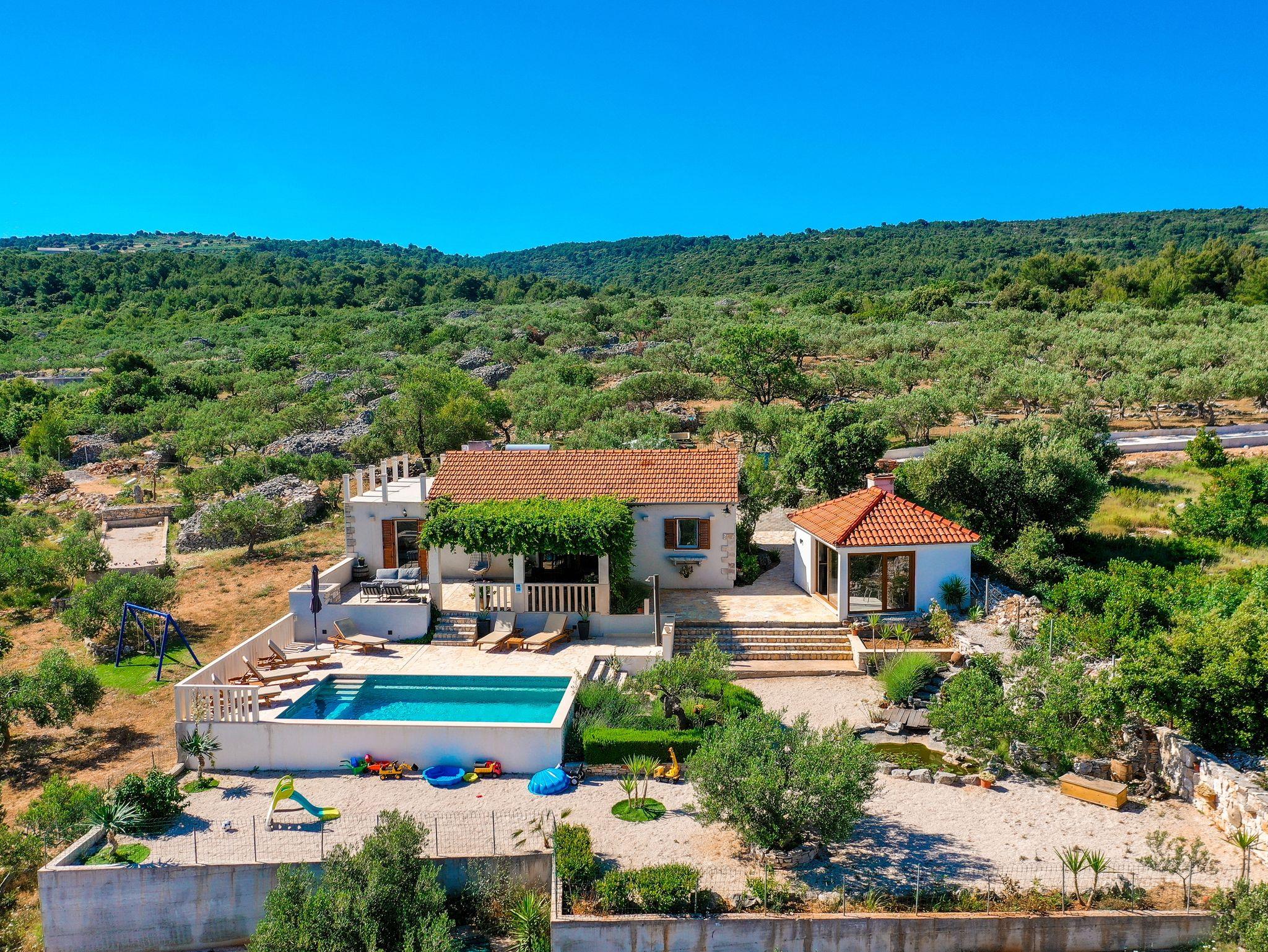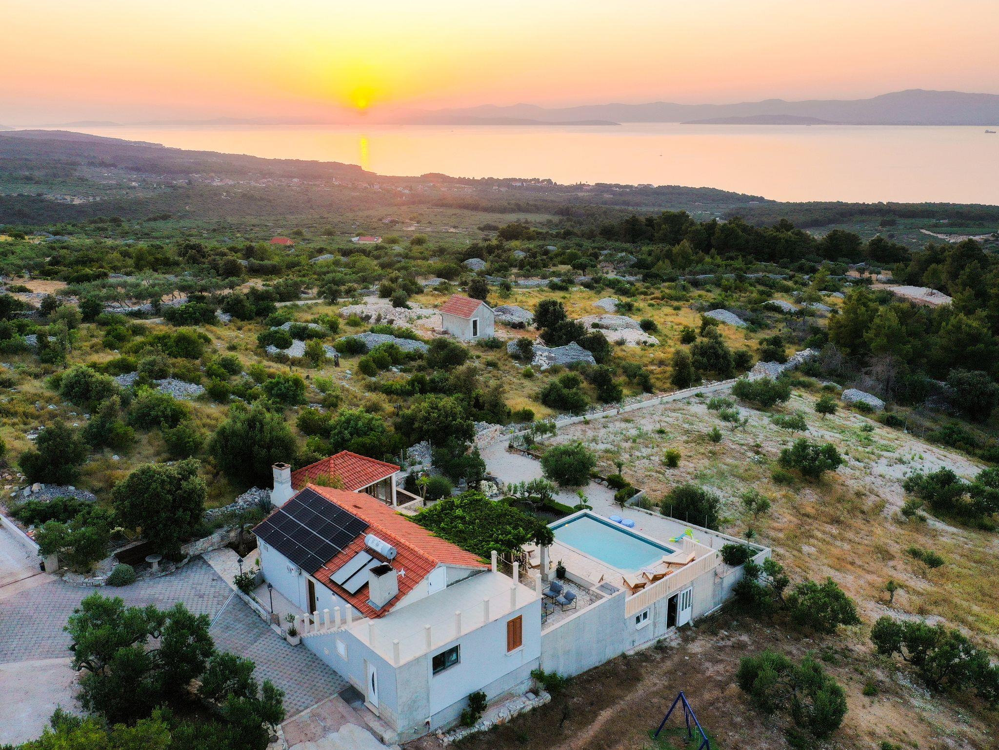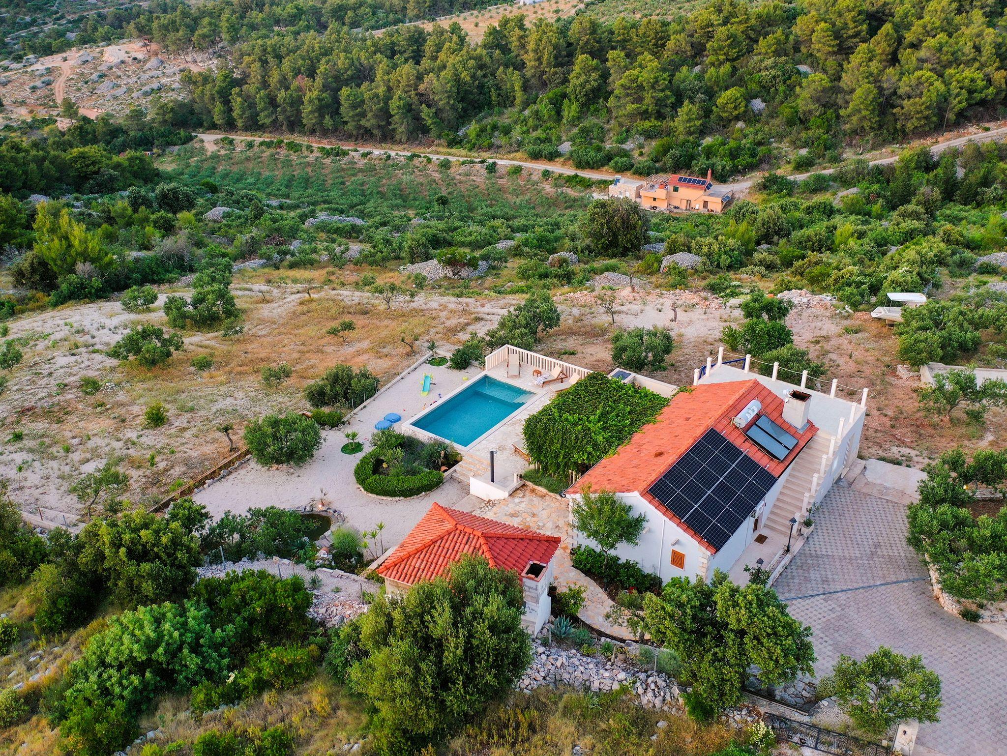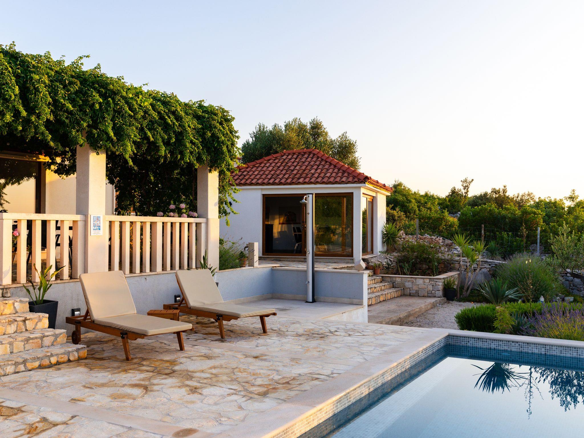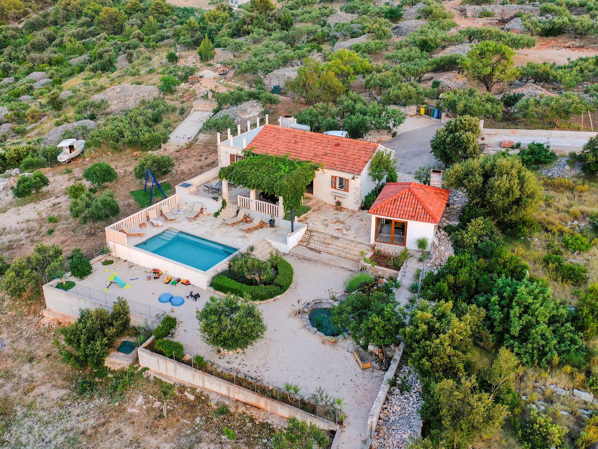 Haus mit Pool für Familien Supetar, Brac - 15280, 2-Zimmer-Haus mit Terrasse und Meerblick Supetar, Brac K-15280