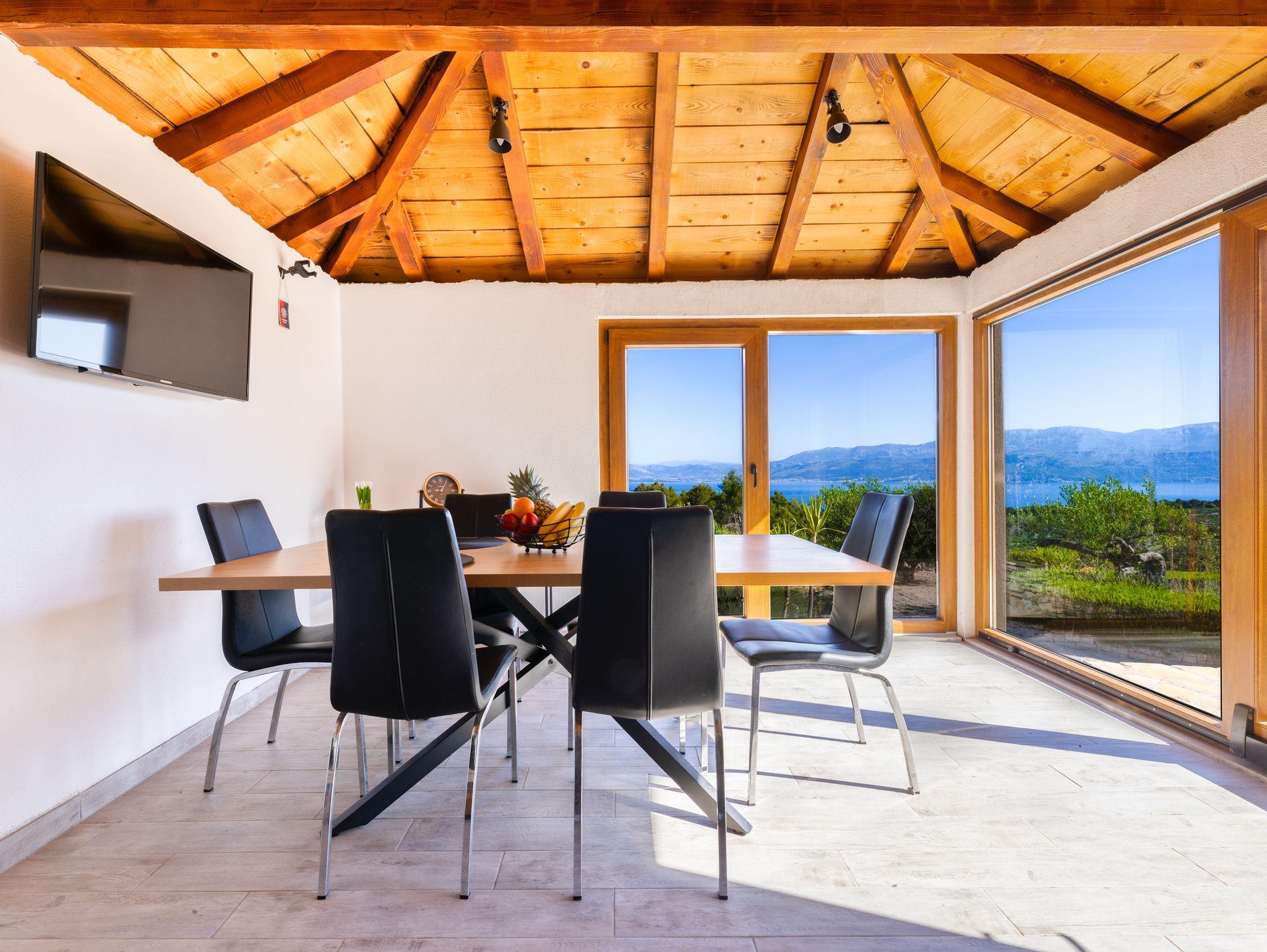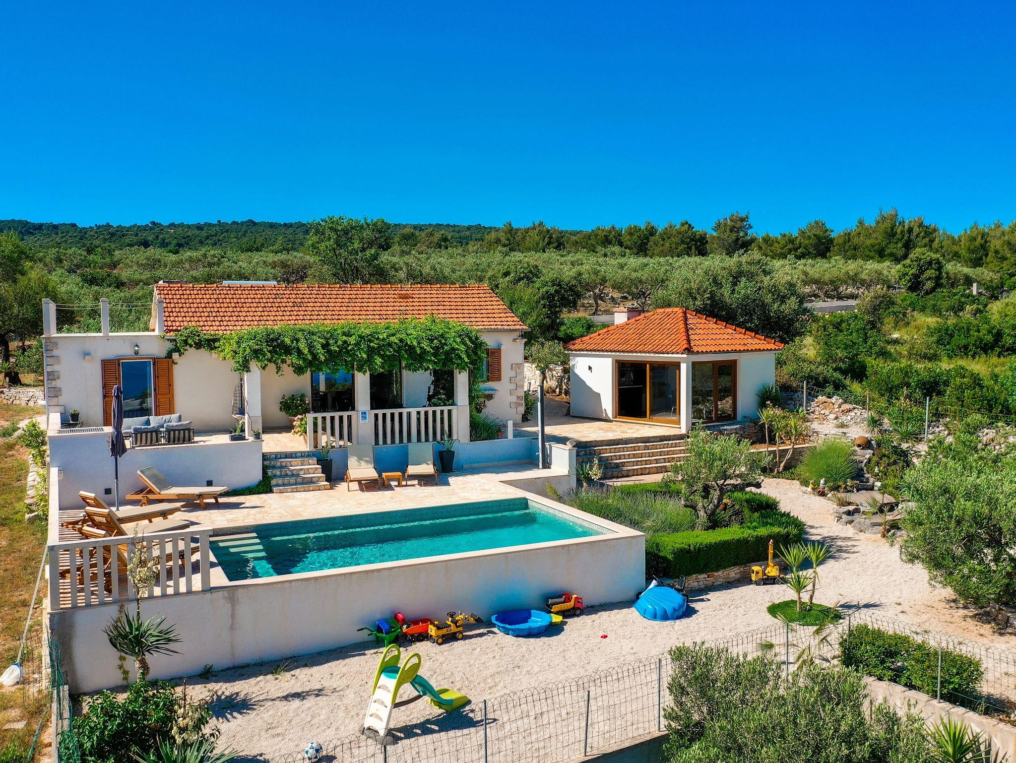 Haus bietet Platz für 6 Gäste. Die Betten sind in Schlafzimmern, die es 2 gibt, und in Wohnzimmer, innerhalb einer Gesamtfläche von 92m2, angeordnet. Die Gäste haben eine eigene Terrasse zur Verfügung, auf der sie in warmen Sommernächten genießen können. Das Haus bietet Meerblick. Für vollen Genuss und Entspannung gibt es einen privaten Grill für Gäste dieser Unterkunft. Während ihres Aufenthalts können sich Gäste im privaten Schwimmbad entspannen. In der Unterkunftseinheit besteht die Möglichkeit des Mitbringens von Haustieren gegen Aufpreis. Räume der gebuchten Unterkunftseinheit werden nicht in eine Ganze verbunden. IM PREIS INBEGRIFFEN: Kurtaxe, Endreinigung, Klimatisierung, Pool, Parkplatz, Internet, Kinderbett, Bügeleisen, Föhn. UNVERBINDLICHE ZUSÄTZLICHE KOSTEN: Wäschewaschen (10,00 € Waschen), Haustiere (5,00 € pro Nacht). Die Verfügbarkeit zusätzlicher Dienstleistungen in Ihrem reservierten Termin und die Preise derselben (falls nicht aufgeführt) müssen im Voraus überprüft werden. Zusätzliche Dienstleistungen die in der Zahlungsaufforderung nicht aufgeführt sind werden direkt beim Vermieter bezahlt, angenommen der Gast nutzt auch diese.