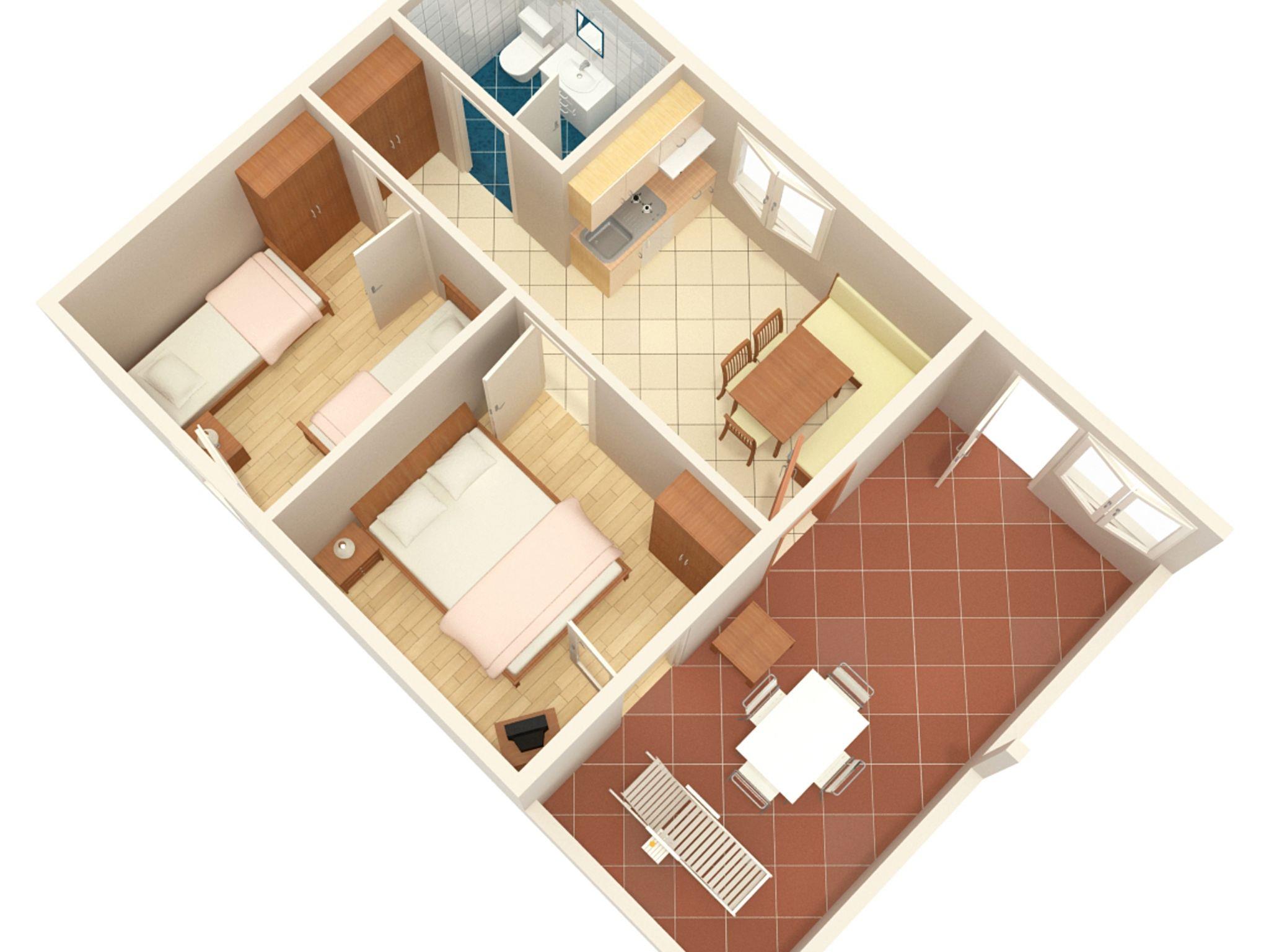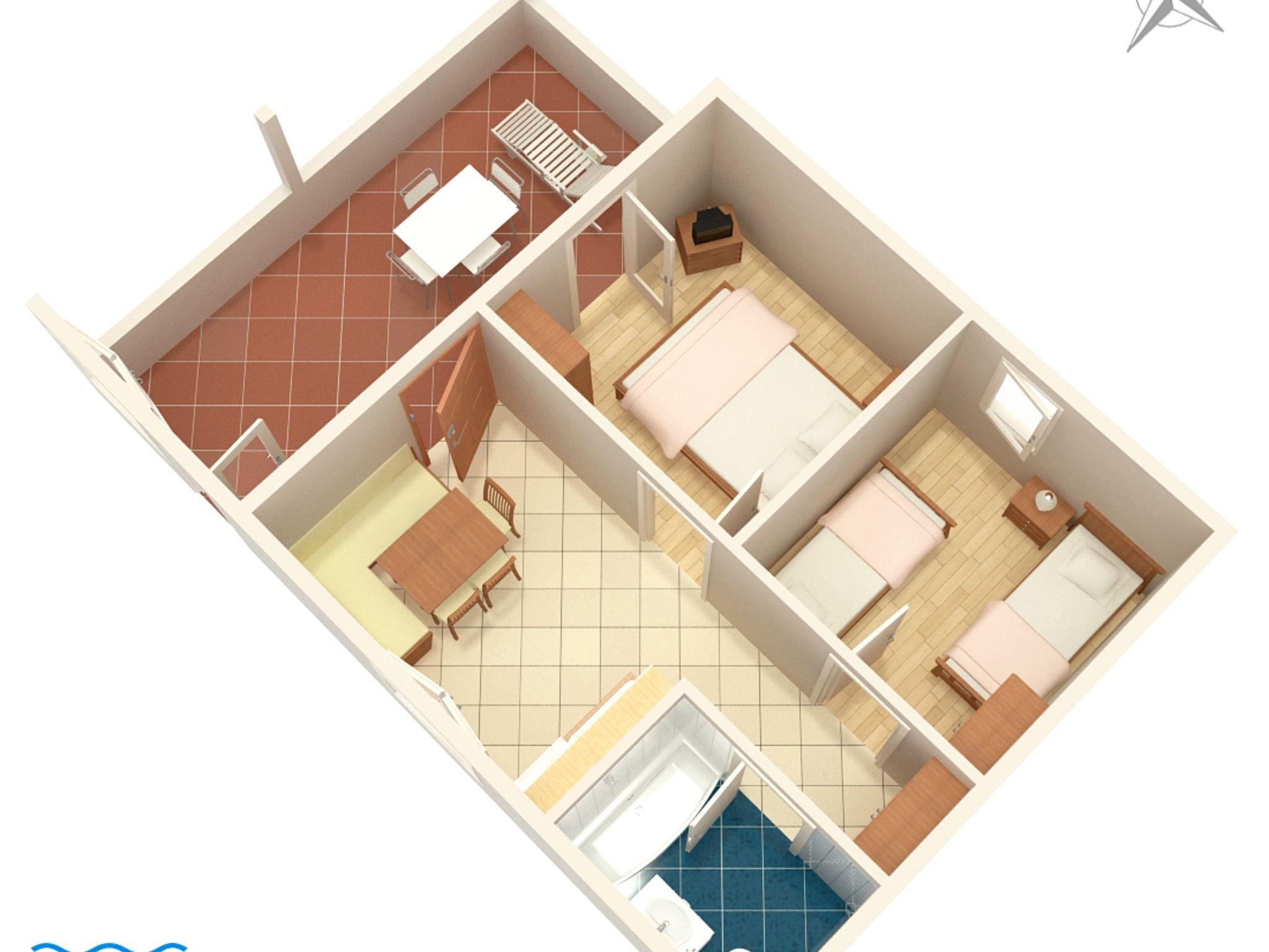 Ferienwohnung bietet Platz für 4 Gäste. Die Betten sind in Schlafzimmern, die es 2 gibt, innerhalb einer Gesamtfläche von 36m2, angeordnet. Die Gäste haben eine eigene Terrasse zur Verfügung, auf der sie in warmen Sommernächten genießen können. Das Apartment bietet Meerblick. Es ist erlaubt, Speisen auf dem Gemeinschafts-Grill vorzubereiten. In der Unterkunftseinheit besteht die Möglichkeit des Mitbringens von Haustieren gegen Aufpreis. IM PREIS INBEGRIFFEN: Kurtaxe, Endreinigung, Klimatisierung, Parkplatz, Internet, Bügeleisen, Bügelbrett, Föhn. VERBINDLICHE ZUSÄTZLICHE KOSTEN: Aufzahlung für Kurzaufenthalte (prozentualer Zuschlag pro Nächtigungsanzahl: 30% - 1, 20% - 2, 10% - 3). UNVERBINDLICHE ZUSÄTZLICHE KOSTEN: Wäschewaschen (7,00 € Waschen), Haustiere (5,00 € pro Nacht). Die Verfügbarkeit zusätzlicher Dienstleistungen in Ihrem reservierten Termin und die Preise derselben (falls nicht aufgeführt) müssen im Voraus überprüft werden. Zusätzliche Dienstleistungen die in der Zahlungsaufforderung nicht aufgeführt sind werden direkt beim Vermieter bezahlt, angenommen der Gast nutzt auch diese. Ermäßigung auf den Grundpreis: Gratistag 14=13 (bei einem Aufenthalt von 14 Tagen oder mehr erhalten Sie einen Gratistag für den Aufenthalt bis 31.12.26).