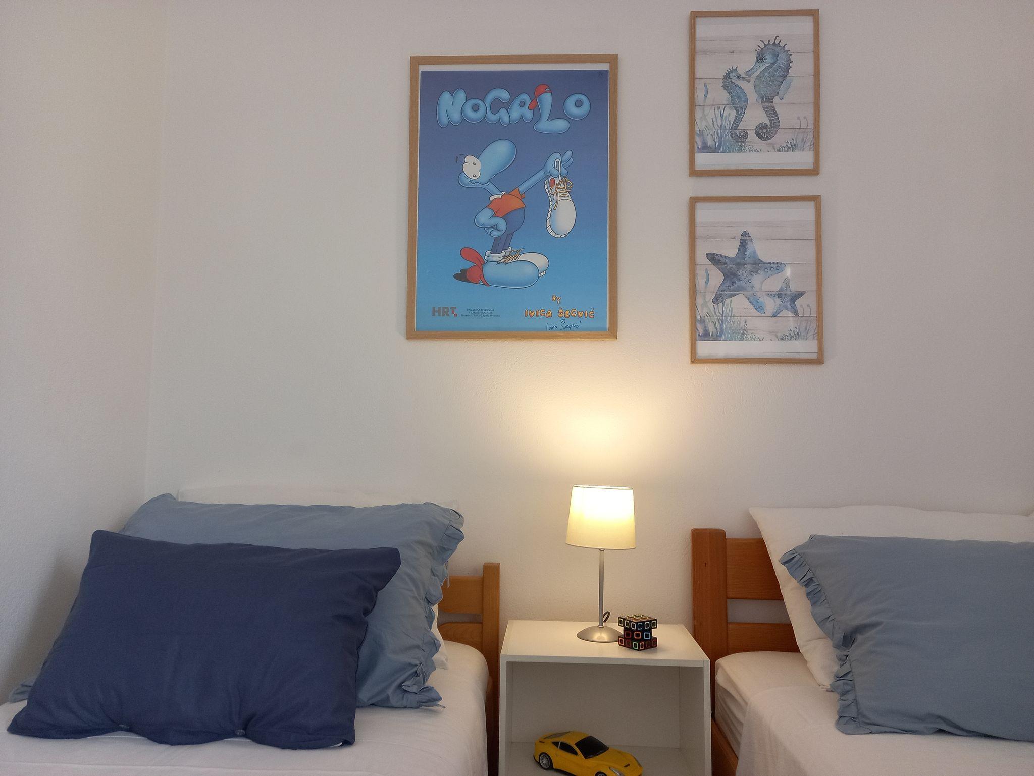 Ferienwohnung bietet Platz für 5 Gäste. Die Betten sind in Schlafzimmern, die es 2 gibt, und in Wohnzimmer, innerhalb einer Gesamtfläche von 46m2, angeordnet. Es ist erlaubt, Speisen auf dem Gemeinschafts-Grill vorzubereiten. Die reservierte Unterkunftseinheit verfügt über einen gemeinsame Terrasse. IM PREIS INBEGRIFFEN: Kurtaxe, Endreinigung, Klimatisierung, Parkplatz, Internet, Kinderbett, Bügeleisen, Bügelbrett, Föhn. VERBINDLICHE ZUSÄTZLICHE KOSTEN: Aufzahlung für Kurzaufenthalte (prozentualer Zuschlag pro Nächtigungsanzahl: 30% - 1, 20% - 2, 10% - 3). UNVERBINDLICHE ZUSÄTZLICHE KOSTEN: Zusatzbett (5,00 € pro Nacht). Die Verfügbarkeit zusätzlicher Dienstleistungen in Ihrem reservierten Termin und die Preise derselben (falls nicht aufgeführt) müssen im Voraus überprüft werden. Zusätzliche Dienstleistungen die in der Zahlungsaufforderung nicht aufgeführt sind werden direkt beim Vermieter bezahlt, angenommen der Gast nutzt auch diese. Ermäßigung auf den Grundpreis: Gratistag 14=13 (bei einem Aufenthalt von 14 Tagen oder mehr erhalten Sie einen Gratistag für den Aufenthalt bis 31.12.26).