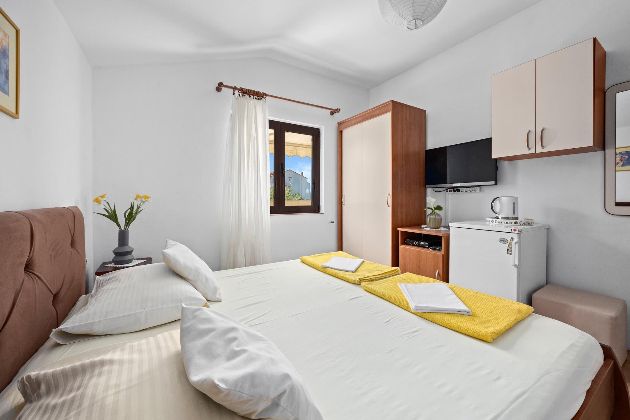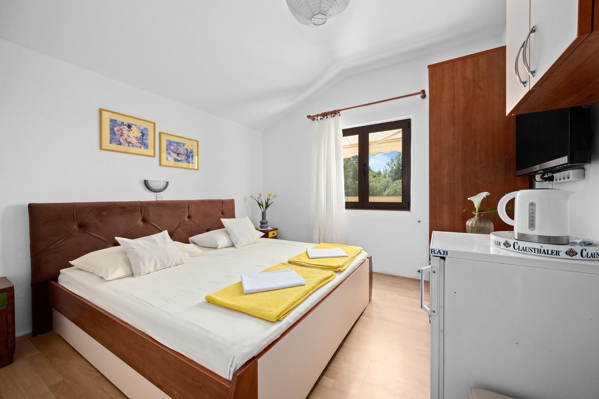 Dette charmerende feriehus er perfekt til et par eller en solorejsende, med et hyggeligt soveværelse og plads til op til to personer. Ejendommen ligger på stranden og tilbyder en fantastisk udsigt over vandet. Det har aircondition og tv med satellitkanaler til underholdning. Gæsterne kan nyde en afslappende balkon, gratis trådløs internetadgang og et haveområde. Ejendommen er kæledyrsvenlig, så du kan medbringe din lodne ledsager. For dem, der leder efter ekstra bekvemmelighed, er udendørs parkering tilgængelig lige på stedet. Boligrummet er lyst og komfortabelt med moderne møbler, der forstærker den samlede oplevelse. Placeringen er ideel for dem, der søger en fredelig flugt, mens de forbliver tæt på forskellige attraktioner. Den nærmeste lufthavn og togstation ligger kun få skridt væk, hvilket giver nem adgang for rejsende. Inden for en kort gåtur finder du en busstation, restauranter og både klippe- og sandstrande. Et supermarked ligger kun 1 km væk, og den nærliggende by Rab, 8 km fra ejendommen, byder på yderligere muligheder for sightseeing. For familier er et vandland kun 3 km væk, hvilket giver sjov for alle aldre. Ejendommen er fuldt udstyret med et køkken med køleskab, tallerkener, bestik og en kedel, hvilket sikrer, at gæsterne nemt kan tilberede måltider. Badeværelset har væsentlige faciliteter såsom en hårtørrer, mens hele rummet er designet til komfort. Uanset om du forbereder en hurtig snack eller nyder en afslappet aften, sikrer de tilbudte faciliteter et behageligt ophold.