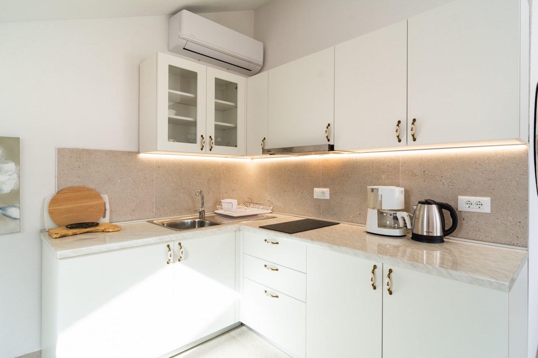 Elegant Sutivan Apartments with Balcony in Sutivan, Split-Dalmatia County, Croatia, provide stylish and comfortable accommodations, featuring private balconies with views, air conditioning, and fully equipped kitchens. Located in the scenic village of Sutivan on Brac Island, the apartments are close to local beaches, picturesque coastal paths, and historical landmarks, ideal for travelers seeking relaxation or adventure. Guests can enjoy nearby activities like cycling, hiking, and water sports, making these apartments an excellent choice for a tranquil yet active getaway. Note: Baby cot is available on request. Pets are not allowed. Baggage drop-off is available before check-in. Private parking, reservation is not required. Wi-Fi is available throughout the property. This one -bedroom can accommodate up to three guests. It features a Flat screen TV and is combined with a living room and kitchen. The private bathroom is equipped with a shower and toilet. Thanks to its excellent location, everything you'll need for your vacation is just a short walk away from the property. cafes and restaurants is within a 70.00 m radius. The beach is 200 m away from the property. The airport is 50 km away from the property.