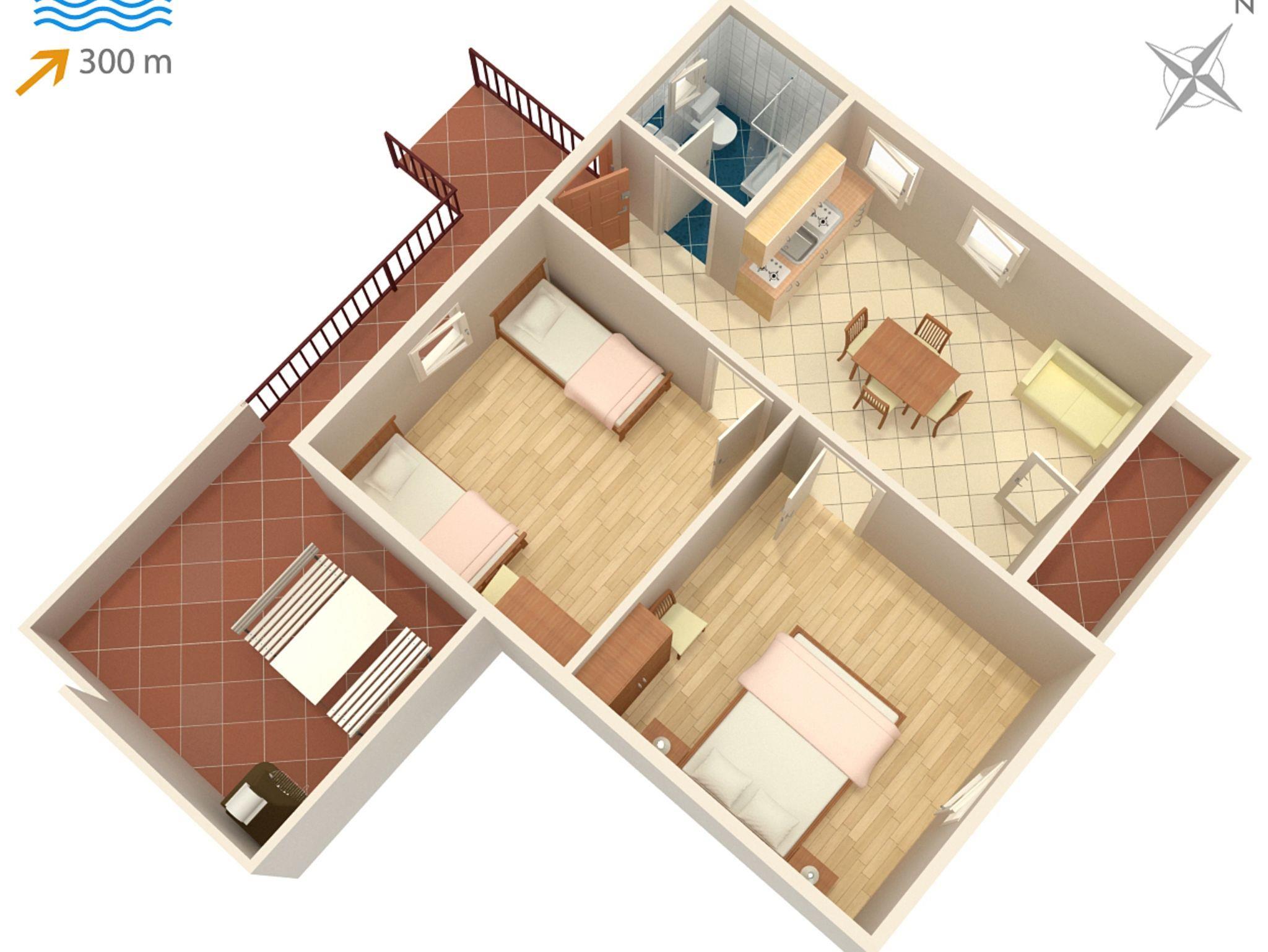 Ferienwohnung bietet Platz für 4 Gäste. Die Betten sind in Schlafzimmern, die es 2 gibt, innerhalb einer Gesamtfläche von 46m2, angeordnet. Die Gäste haben eine eigene Terrasse zur Verfügung, auf der sie in warmen Sommernächten genießen können. Das Apartment bietet Meerblick. Für vollen Genuss und Entspannung gibt es einen privaten Grill für Gäste dieser Unterkunft. Unterkunftseinheit hat Räume, die von dem Rest der Einheit abgetrennt werden. IM PREIS INBEGRIFFEN: Kurtaxe, Endreinigung, Klimatisierung, Parkplatz, Internet, Kinderbett, Bügeleisen, Bügelbrett, Föhn, Sonnenschirm. VERBINDLICHE ZUSÄTZLICHE KOSTEN: Aufzahlung für Kurzaufenthalte (prozentualer Zuschlag pro Nächtigungsanzahl: 30% - 1, 20% - 2, 10% - 3). Die Verfügbarkeit zusätzlicher Dienstleistungen in Ihrem reservierten Termin und die Preise derselben (falls nicht aufgeführt) müssen im Voraus überprüft werden. Zusätzliche Dienstleistungen die in der Zahlungsaufforderung nicht aufgeführt sind werden direkt beim Vermieter bezahlt, angenommen der Gast nutzt auch diese.