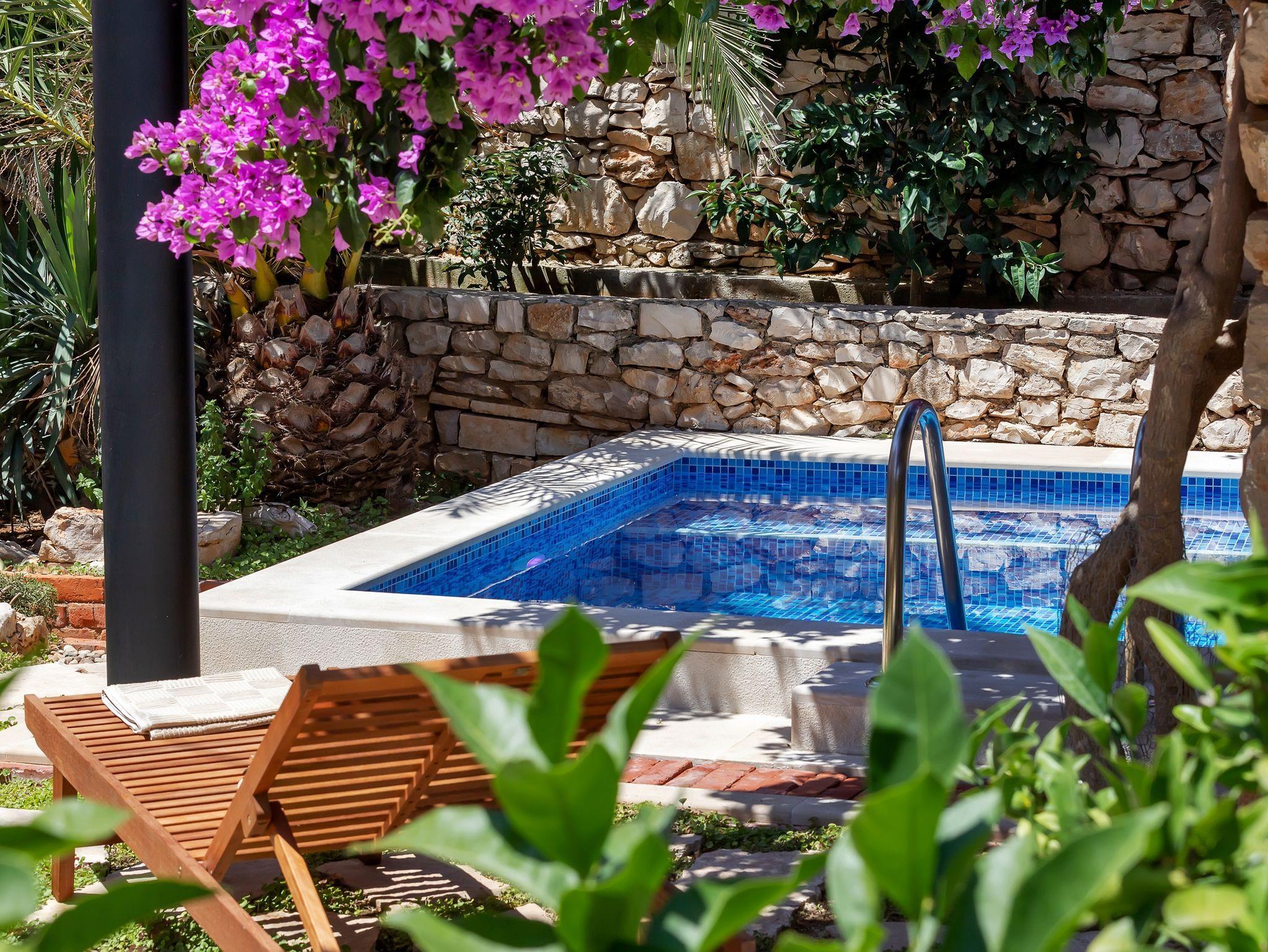 Umgebung des Objekts (Ordentlich), Hof (100m2, Sitzbereich), Parkplatz (Anzahl der Parkplätze: 2, Entfernung vom Objekt: im Hof), Pool: privat, Dimensionen: 4.3m x 3.2m x 1.5m, Wassertyp: Süßwasser, Heizung: Ja, WiFi Internet, Fahrrad (Anzahl: 1), Föhn, Bügeleisen, Bügelbrett, Liegestühle, Kinderbett