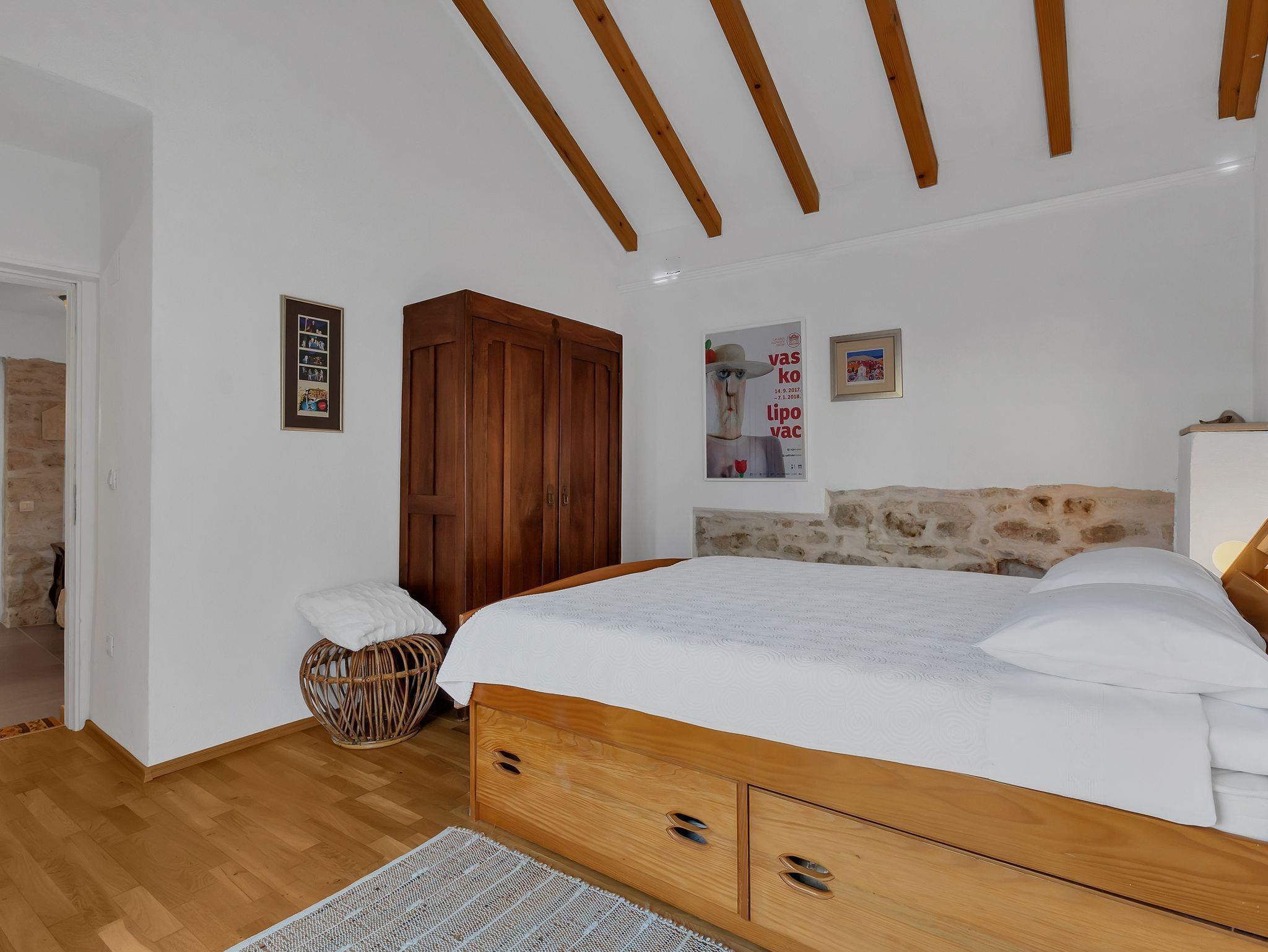 Haus bietet Platz für 6 Gäste. Die Betten sind in Schlafzimmern, die es 3 gibt, innerhalb einer Gesamtfläche von 166m2, angeordnet. Die Gäste haben eine eigene Terrasse zur Verfügung, auf der sie in warmen Sommernächten genießen können. Das Haus bietet Meerblick. Für vollen Genuss und Entspannung gibt es einen privaten Grill für Gäste dieser Unterkunft. Während ihres Aufenthalts können sich Gäste im privaten Schwimmbad entspannen. IM PREIS INBEGRIFFEN: Kurtaxe, Endreinigung, Klimatisierung, Pool, Parkplatz, Internet, Fahrrad, Kinderbett, Zusatzbett, Bügeleisen, Bügelbrett, Föhn, Liegestühle. Die Verfügbarkeit zusätzlicher Dienstleistungen in Ihrem reservierten Termin und die Preise derselben (falls nicht aufgeführt) müssen im Voraus überprüft werden. Zusätzliche Dienstleistungen die in der Zahlungsaufforderung nicht aufgeführt sind werden direkt beim Vermieter bezahlt, angenommen der Gast nutzt auch diese. Ermäßigung auf den Grundpreis: Gratistag 14=13 (bei einem Aufenthalt von 14 Tagen oder mehr erhalten Sie einen Gratistag für den Aufenthalt bis 31.12.26).
