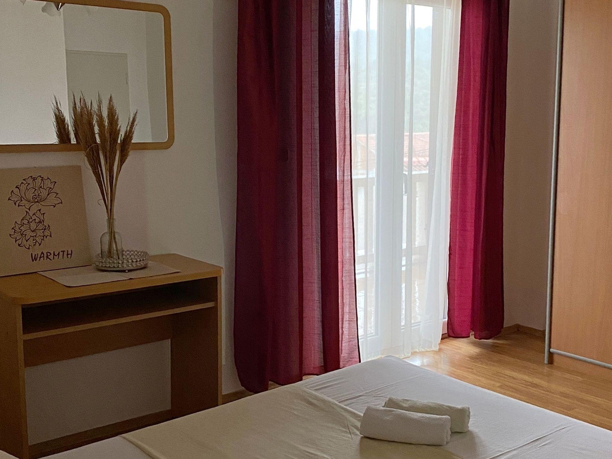 Ferienwohnung bietet Platz für 5 Gäste. Die Betten sind in Schlafzimmern, die es 2 gibt, und in Esszimmer, innerhalb einer Gesamtfläche von 63m2, angeordnet. Die Gäste haben eine eigene Terrasse zur Verfügung, auf der sie in warmen Sommernächten genießen können. Das Apartment bietet Meerblick. Es ist erlaubt, Speisen auf dem Gemeinschafts-Grill vorzubereiten. In der Unterkunftseinheit besteht die Möglichkeit des Mitbringens von Haustieren, und die Dienstleistung ist im Preis der Unterkunft enthalten. IM PREIS INBEGRIFFEN: Kurtaxe, Endreinigung, Klimatisierung, Parkplatz, Garage, Internet, Haustiere, Bügeleisen, Bügelbrett, Föhn. VERBINDLICHE ZUSÄTZLICHE KOSTEN: Aufzahlung für Kurzaufenthalte (prozentualer Zuschlag pro Nächtigungsanzahl: 30% - 1, 20% - 2, 10% - 3). Die Verfügbarkeit zusätzlicher Dienstleistungen in Ihrem reservierten Termin und die Preise derselben (falls nicht aufgeführt) müssen im Voraus überprüft werden. Zusätzliche Dienstleistungen die in der Zahlungsaufforderung nicht aufgeführt sind werden direkt beim Vermieter bezahlt, angenommen der Gast nutzt auch diese.