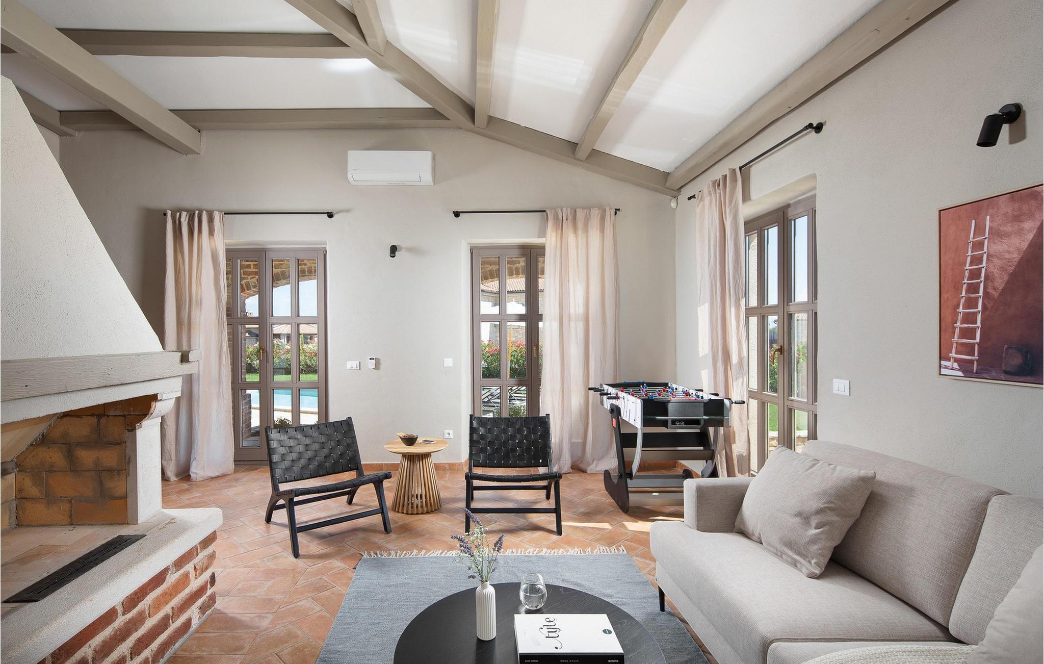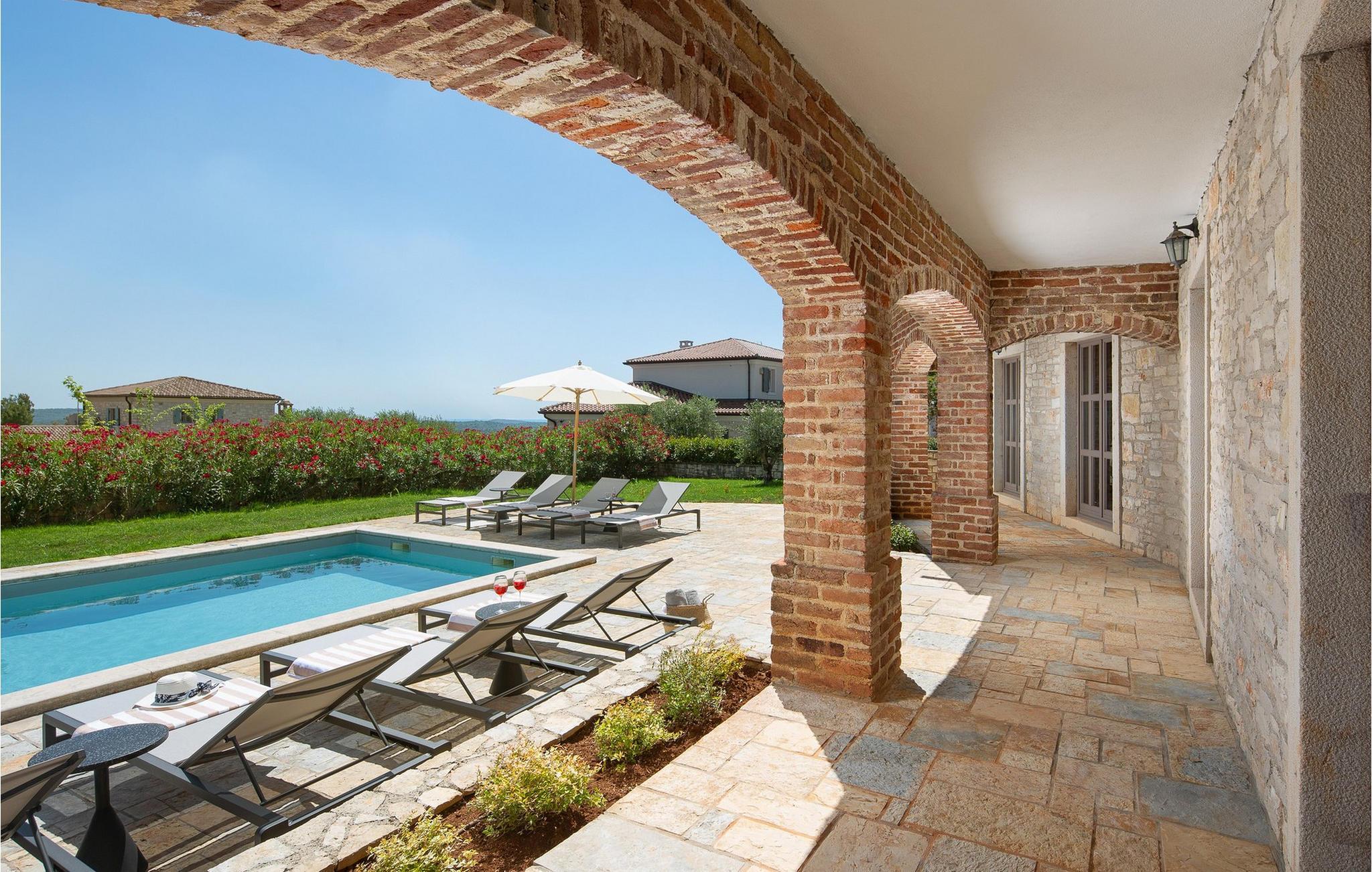 Villa Megi ligger i byen Sv. Lovrec, i smukke Istrien. Dette smukke autoktone istriske stenhus er ideelt for alle natur- og grønne elskere og for alle, der ønsker at tilbringe en fredelig og afslappende ferie. Hvis du er en af dem, så forkæl dig selv og din familie med en uforglemmelig ferie på Villa Megi! Villaen blev bygget i 2009, men gennemgik en komplet renovering i 2022, og dens rustikke arkitektoniske stil, smukke interiør og attraktive ydre vil ikke efterlade dig ligeglad! Gæsterne råder over 206 m2 boligareal, det samlede areal af ejendommen er 1059 m2. Det er fuldt airconditioneret og kan rumme maksimalt 8 personer, hvor 6 personer er ideelt. Du vil blive komfortabelt indkvarteret i 4 soveværelser: To værelser har en dobbeltseng, et værelse har 2 enkeltsenge og et værelse har en sovesofa. To badeværelser har både bruser og badekar, det ene har kun badekar. Villaen har et moderne udstyret køkken, hvor du kan tilberede lækre måltider til hele familien og venner, der er også en spisestue med et 8-personers spisebord. Inde i villaen kan du nyde udsigten over Adriaterhavet, mens du nipper til din morgenkaffe på balkonen, hvor der er en sofa. I stuen kan hele familien samles på to sofaer. Der er også et sofabord, et tv og stole. På den udendørs terrasse er der en swimmingpool med en størrelse på 32 m2 og en dybde på 1,5 m. Ved siden af er der en solterrasse med 8 liggestole og til terrassens indhold hører også en udendørs kul- eller trægrill, en overdækket udendørs spisebord til 8 personer og en smukt anlagt have. som er rig på grønt og farverige blomster. Andre faciliteter på Villa Megi omfatter 1 separat toilet, vaskemaskine og strygejern. Derudover kan du bruge en foderautomat og en tremmeseng. Gården til Villa Megi er fuldstændig indhegnet, så børn kan lege og have det sjovt ubekymret. Indenfor er der 3 private parkeringspladser. Overgiv dig til Istriens charme, smag lækre gastronomiske retter og vine og føl dig som kongelige i Villa Megi! Kæledyr er tilladt på denne ejendom efter ejerens skøn eller mod et gebyr.
