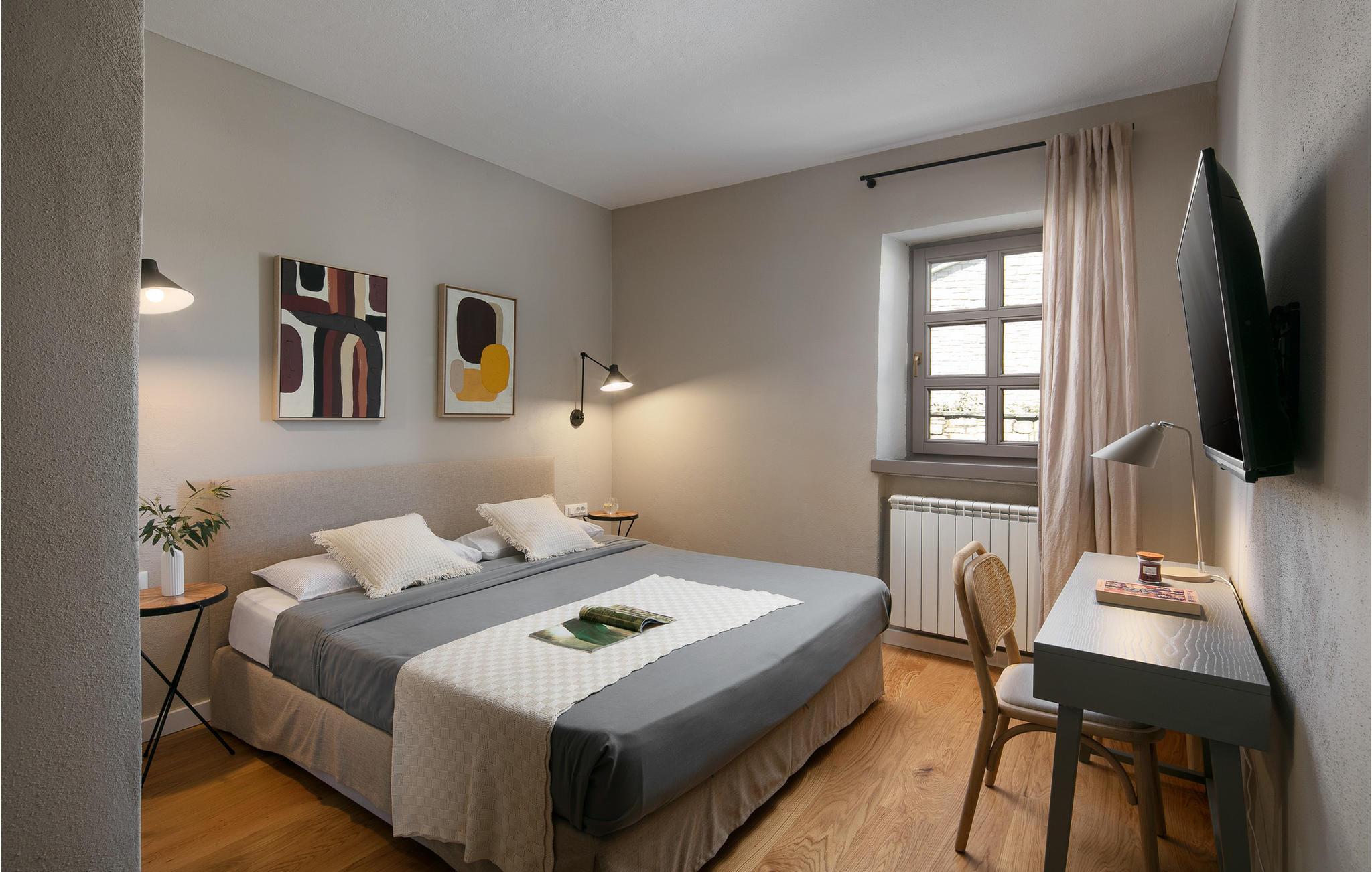 Rustik Villa Maritimo beliggende i Istrien, i byen Sv. Lovrec er det rigtige valg for alle dem, der ønsker at flygte fra den hektiske hverdag og få råd til en behagelig og munter ferie. Istrien har i mange år været et af de mest besøgte turistmål, og det er klar til at byde på badning i det klare hav, lækkert gastronomisk tilbud, masser af sol og sjov! Villaen er opført i rustik stil i 2009, men gennemgik en totalrenovering i 2022. Den er klar til at slå dørene op for max 8 personer, der får 191 m2 til rådighed, og ejendommens samlede areal er på 851 m2. Det er fuldt airconditioneret og har 4 soveværelser, hvoraf tre har en dobbeltseng (180x200) og er placeret på øverste etage, og et værelse har 2 enkeltsenge (90x200) og er placeret i stueetagen. Ligeledes har værelserne deres egne ensuite badeværelser: to med badekar og to med bruser. På øverste etage har hvert soveværelse sin egen balkon med en sofa, hvor du kan nyde at drikke din morgenkaffe og læse din yndlingsbog. I stueetagen er der en hyggeligt indrettet stue med to sofaer, en stol, et lille bord, et tv og en pejs. Ved siden af stuen er der spisestue med bord til 8 personer, og køkken der er udstyret med alt hvad der skal til for at lave mad til hele familien og vennerne. I samme rum er der bordfodbold, hvor børn og voksne vil hygge sig. Haven og den udendørs terrasse vil glæde dig med masser af grønt og steder for børn at lege, og der er også en 32 m2 swimmingpool med en dybde på 1,5 meter. På solbadepladsen ved siden af er der 8 liggestole, hvor du kan hvile krop og sjæl, mens du nyder den varme sommersol. På den udendørs terrasse er der også en kul- eller brændegrill, og et overdækket udendørs spisebord, perfekt til aftensammenkomster med latter og sang. En vaskemaskine, et strygejern, en foderautomat og en barneseng er til rådighed i villaen. Villa Maritimo er helt indhegnet og tilbyder 3 private parkeringspladser. Istrien er kendt for vinture, olivenolieture, og de yngste vil blive henrykte over vandland eller cykelture. Du kan også bruge skiliften i Porec, vandsport og sightseeing af historiske monumenter og byer. Skønheden i Porec er nogle gange skjult af mængden af besøgende fra hele verden, som nyder gæstfriheden og den fremragende service. Hvis du kigger godt efter, vil du kunne se resterne af det antikke Rom, og i havnen vil du støde på vidnesbyrd om venetiansk herredømme fra det 18. århundrede. Istrien har noget for enhver smag: hvad enten du kan lide historie, kunst, sport, god mad eller vin. Velkommen til Villa Maritimo! Denne ejendom kan tillade kæledyr efter ejerens skøn eller mod et gebyr.