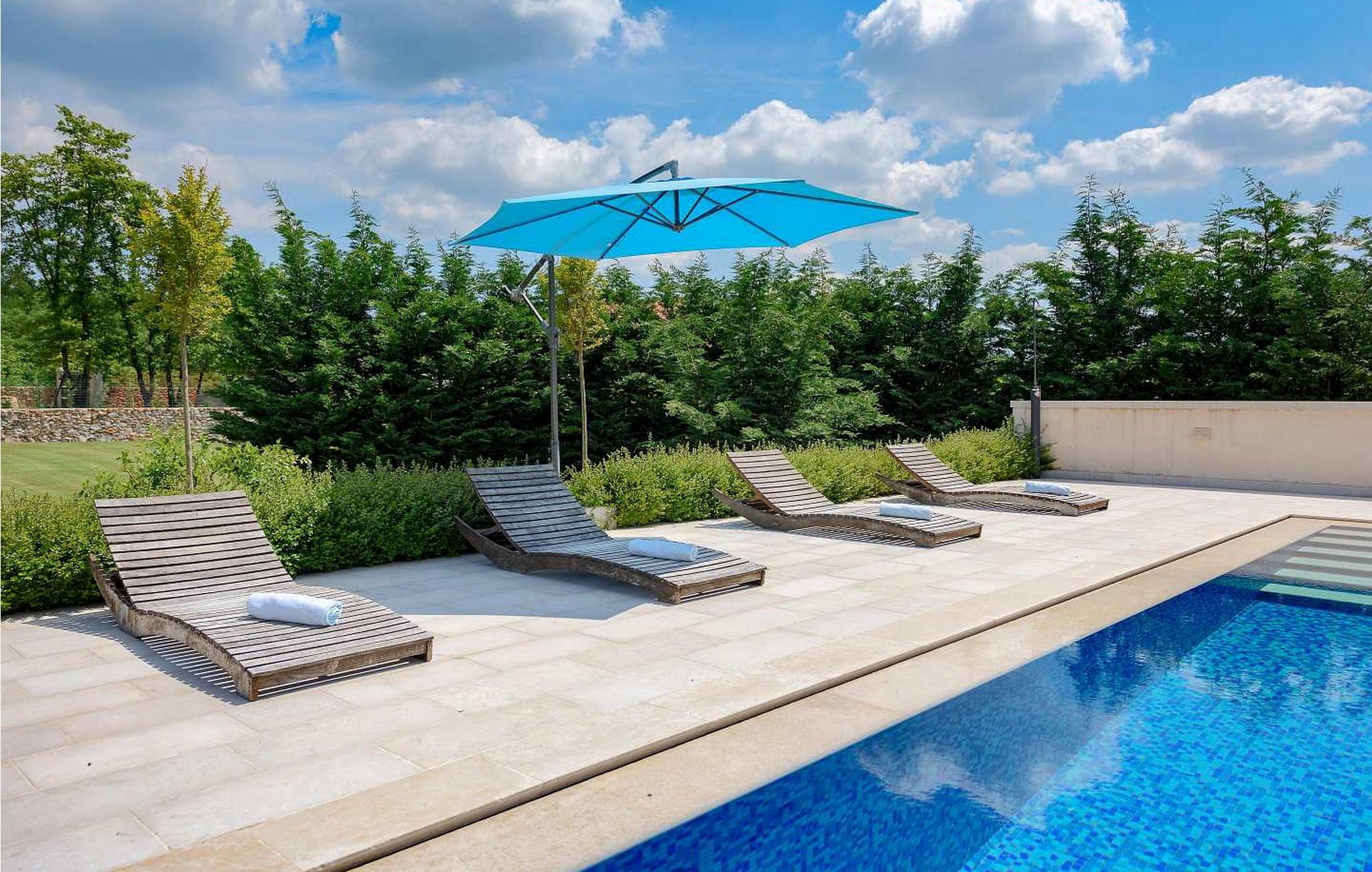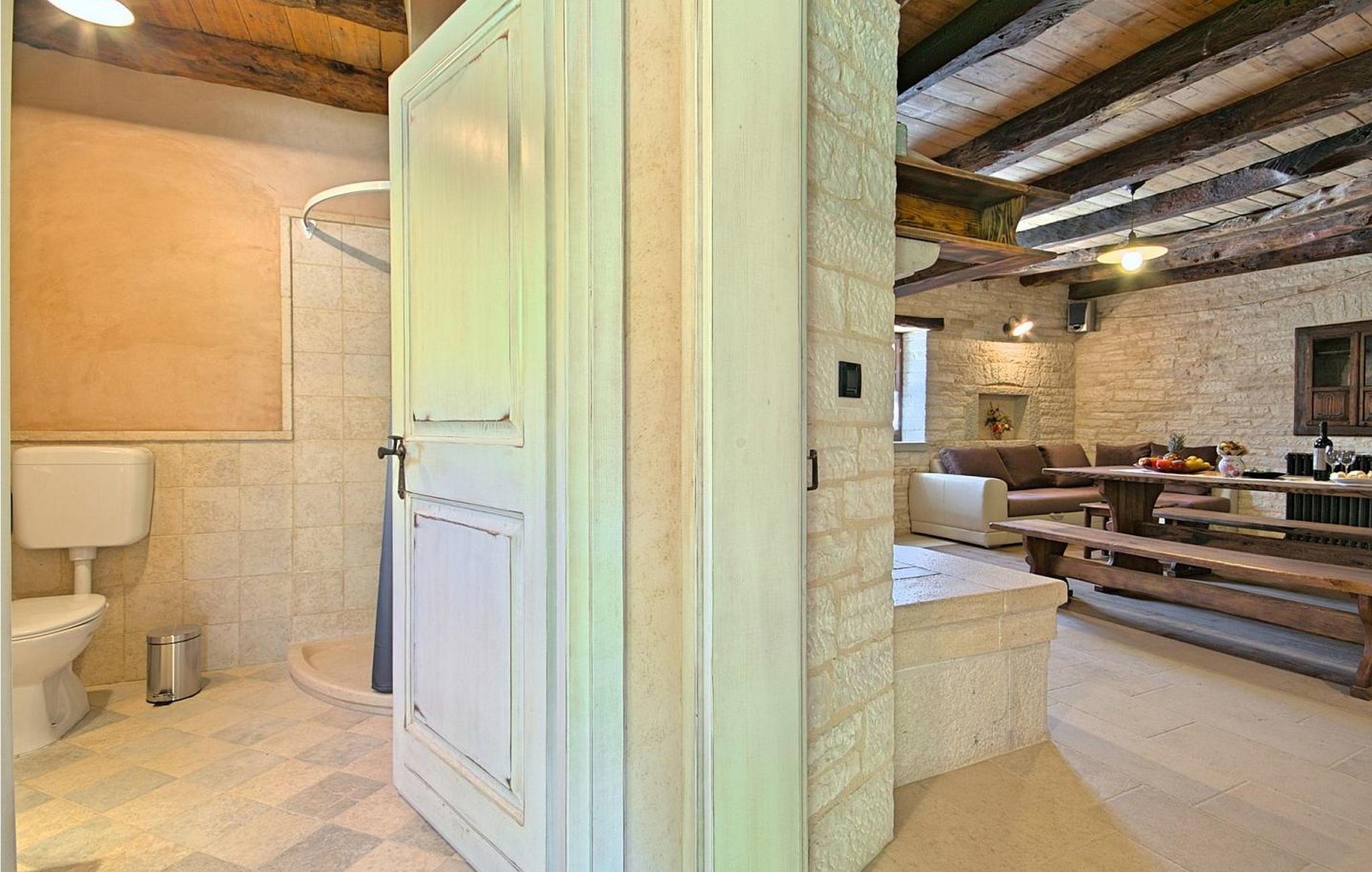 Villa Kovac er smukt møbleret stueetage, dobbelthus, beliggende i landsbyen Turcinovici nær Sv. Petar u Sumi i det centrale Istrien. Huset er smagfuldt indrettet med rustikke møbler og på grund af dens meget gode isolering er det behageligt at opholde sig i huset i sommervarmen. Det særlige ved huset er en meget stor overdækket terrasse på 40 kvm med udekøkken og loungehjørne beliggende ved siden af poolen og haven med udsigt til skoven. Den samme terrasse er placeret på bagsiden af huset, som kun er til rådighed for villa Kovacs gæster. Venlige ejere, der bor i den anden halvdel af dobbelthuset, har ingen visuel eller anden kontakt med denne del af huset. Udekøkkenet er fuldt udstyret og har en pejs til grillning, kogeplader, opvaskemaskine og alle andre køkkenfaciliteter. På loungeområdet til gæsternes rådighed forbliver også et stort tv. Huset er til 4-6 gæster med samlet boligareal på 85 kvm. Den består af en stue med aircondition med tekøkken, spisebord og sovesofa til to, to soveværelser med dobbeltsenge, et med eget bad/toilet og et separat bruser/toilet. Bemærk venligst, at denne ejendom ikke accepterer ungdomsgrupper eller polterabends. En ungdomsgruppe på denne ejendom er en gruppe bestående af personer på 26 år eller derunder. Book ikke denne ejendom, hvis du er en ungdomsgruppe eller et polterabend, da din reservation vil blive afvist efter booking, hvilket kan omfatte ved ankomst til ejendommen eller under dit ophold, og du vil ikke blive refunderet.