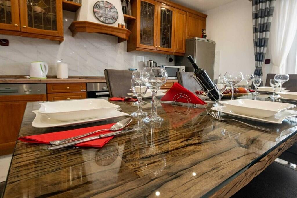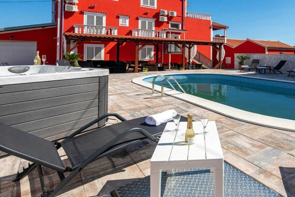 Diese schöne und geräumige Doppelhaushälfte befindet sich in dem kleinen Küstendorf Turanj. Das wunderschön eingerichtete Interieur erstreckt sich auf die erste und zweite Etage, die durch eine Innentreppe miteinander verbunden sind. Es bietet 5 klimatisierte Schlafzimmer, 3 Badezimmer, eine Toilette und je eine Küche sowie je ein Wohnzimmer auf jeder Etage. Es gibt viele Einrichtungen für Spaß und Entspannung. Für zusätzlichen Komfort gibt es einen beheizten Pool und einen Whirlpool auf der schönen Sonnenterrasse. Für die Kleinsten gibt es ein Kinderbecken von 9 m2, aber auch zusätzliche Kindereinrichtungen. Es gibt auch 5 Fahrräder im Angebot und der Ort selbst hat gut gepflegte Radwege.