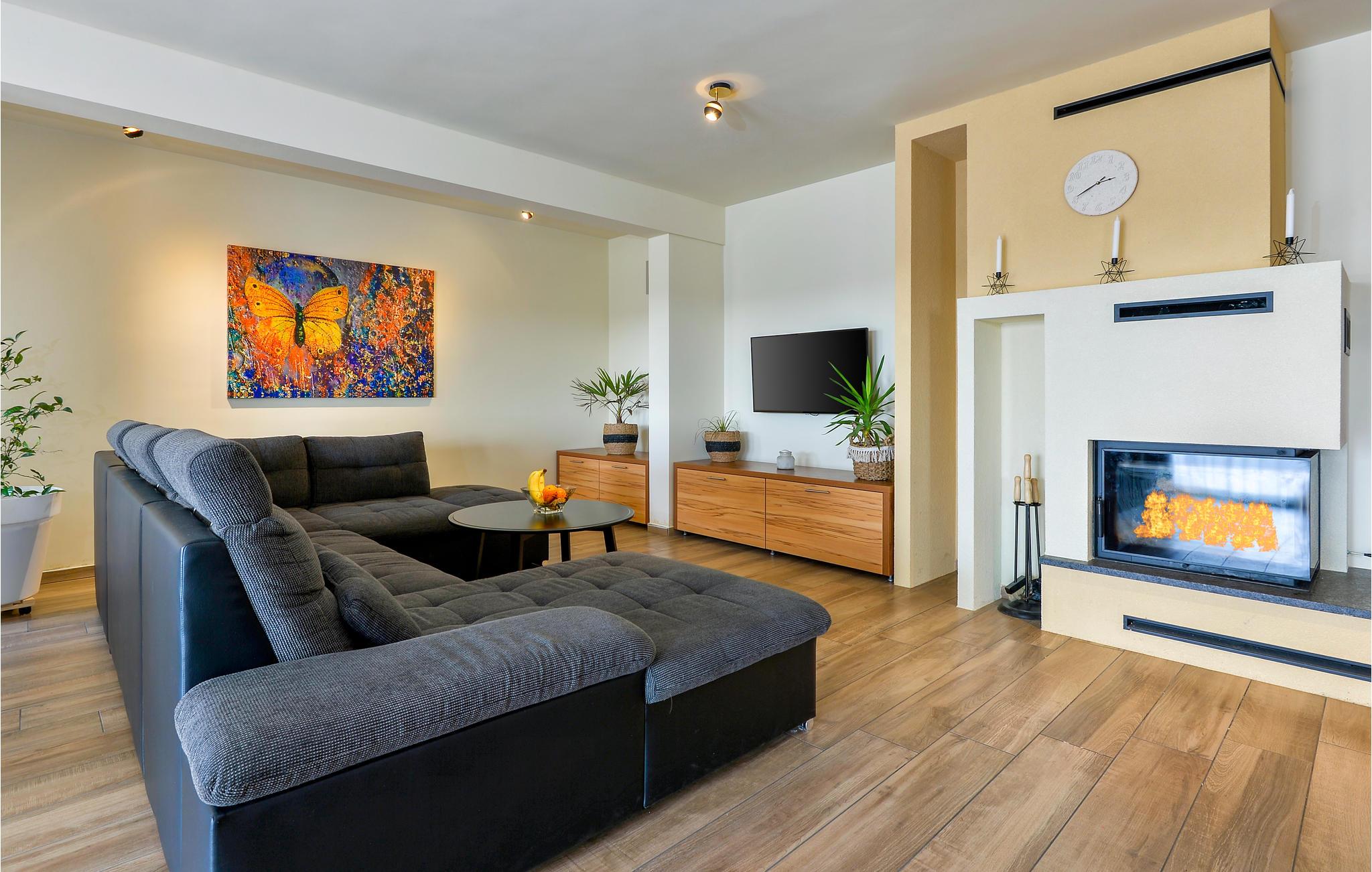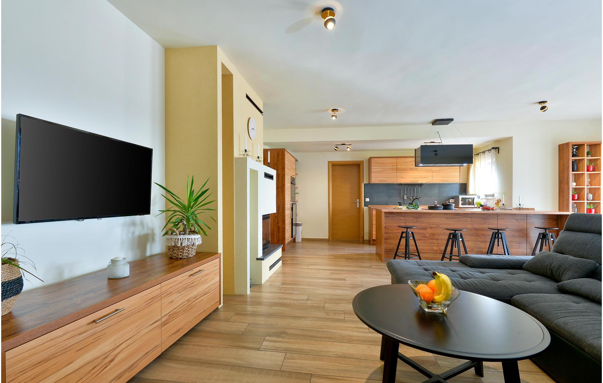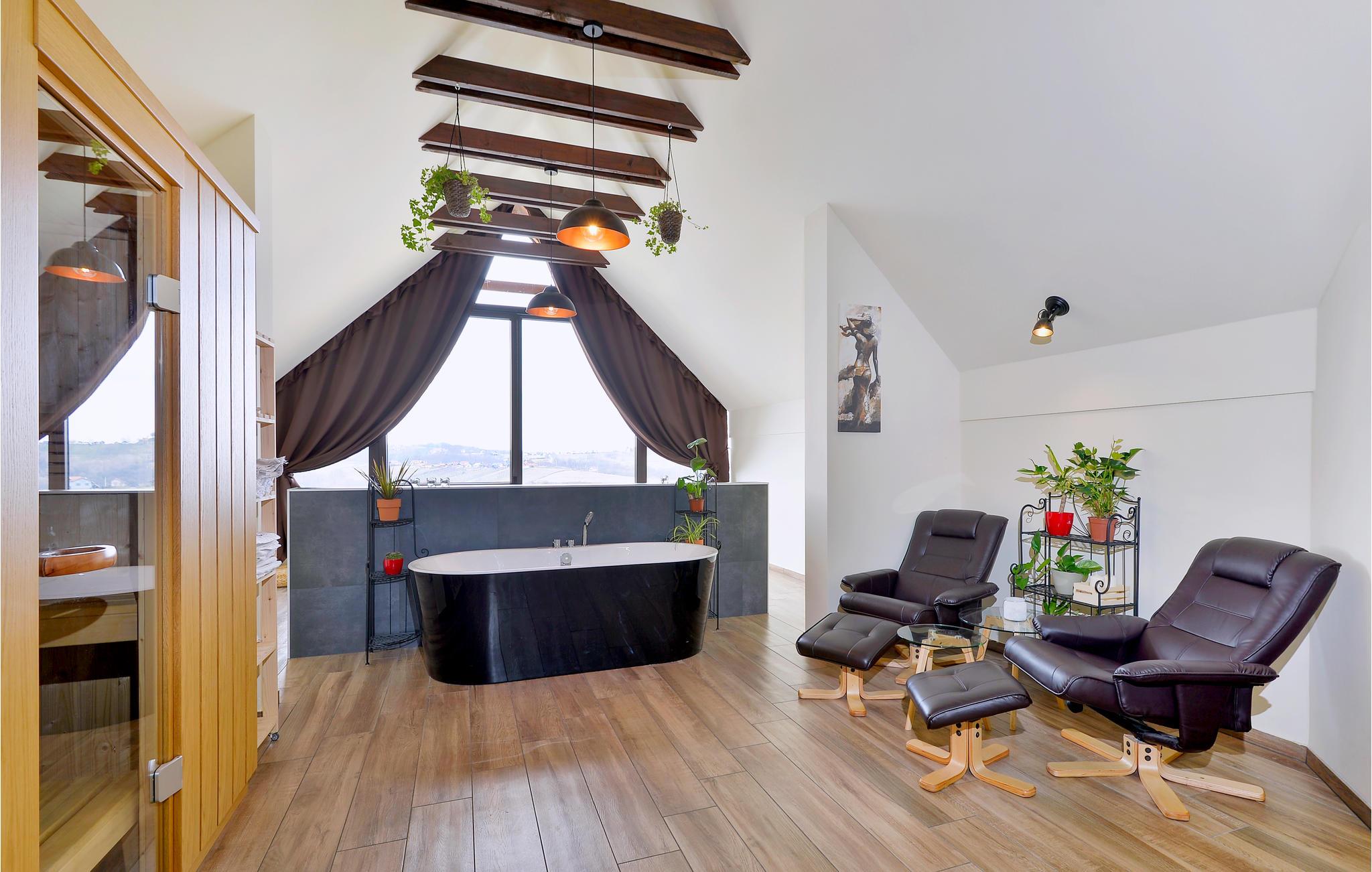 I nærheden af Sveri Martin na Muri's termalbade ligger dette feriehus. Det er smagfuldt indrettet og indeholder alt til en dejlig ferie. Huset er i 2 etager: Stueplan med åbent køkken, opholdsstue og spiseplads samt et toilet. Førstesalen har 2 soveværelser samt et badeværelse. I det ene soveværelse findes en sauna og et hydromassage badekar, der byder på afslapning for både krop og sjæl. Nyd at lave mad og spise udendørs ved sommerkøkkenet. Foran huset ligger den opvarmede swimmingpool med tilhørende solterrasse og liggestole.