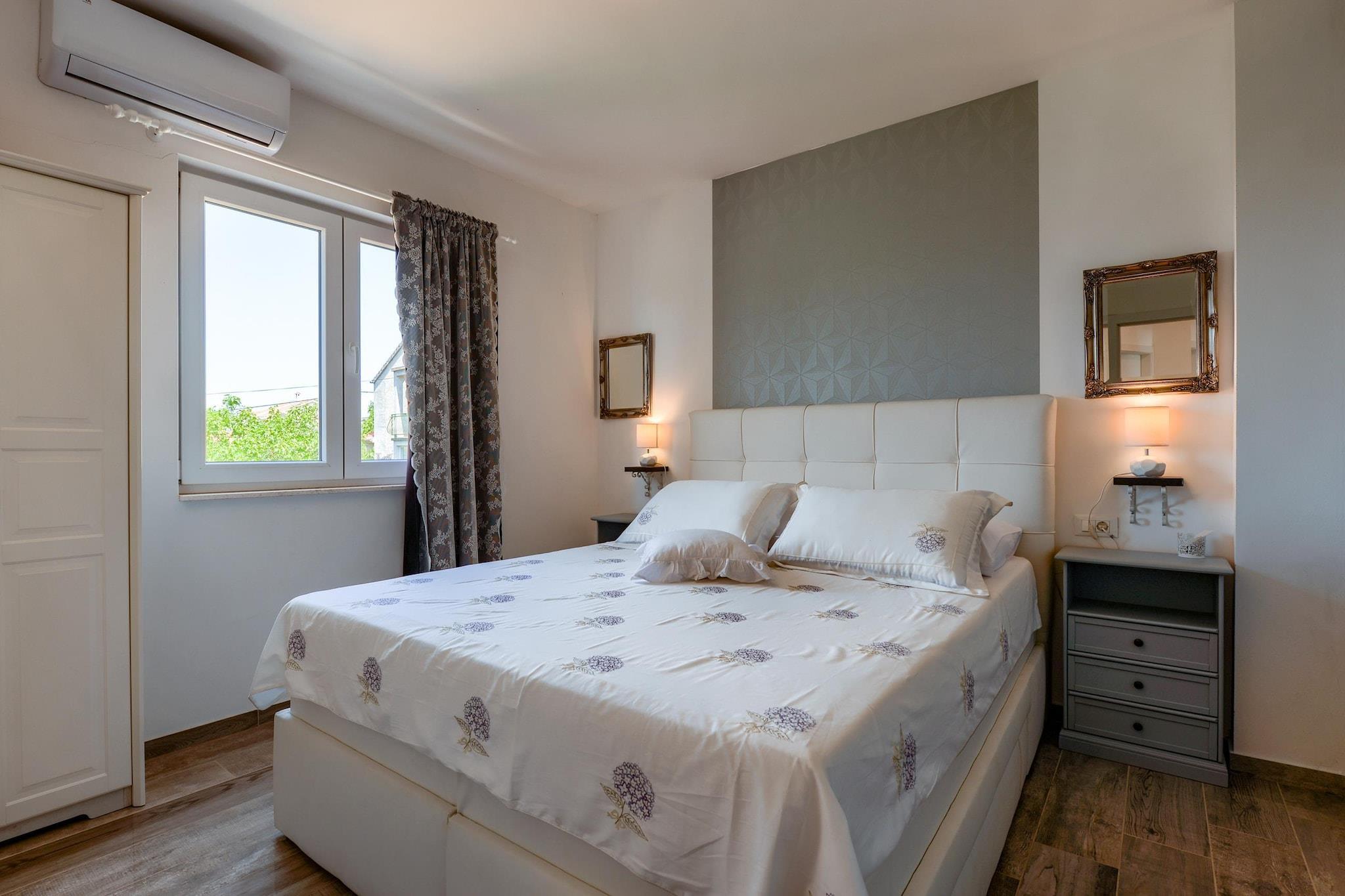 Denne villa til 12 gæster ligger kun 250 meter fra havet og tilbyder en luksuriøs ferie i Sveti Filip i Jakov med gratis WiFi og moderne bekvemmeligheder. Villaen ligger 300 meter fra byens centrum og 3 km fra Biograd, hvilket sikrer nem adgang til lokale attraktioner. Med restauranter og dagligvarer kun 50 meter væk er bekvemmeligheden lige ved døren. Indenfor har villaen rummelige opholds- og spisestuer med fladskærms-digital-tv'er, to fuldt udstyrede køkkener og seks elegante soveværelser, hver med aircondition og private balkoner eller terrasser. Gæsterne kan slappe af i boblebadet på tagterrassen, nyde udendørs spisning med grillen eller tage en forfriskende dukkert i den private opvarmede swimmingpool. Yderligere faciliteter inkluderer en solariumbruser, indhegnet, oplyst have og privat parkering, hvilket sikrer et behageligt ophold. I nærheden kan du udforske Park prirode Vransko jezero, en fantastisk naturpark perfekt til udendørs eventyr, eller besøge Fun Park Biograd, en spændende forlystelsespark for alle aldre2. Bistro Andrija tilbyder frisk fisk og skaldyr, mens Konoba Kojo serverer autentiske middelhavsretter4. Uanset om du søger eventyr eller afslapning, er denne villa det perfekte tilflugtssted.